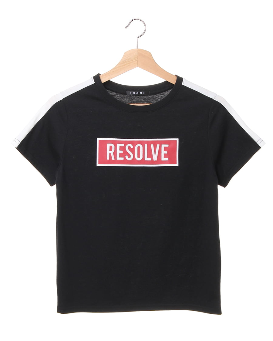 • INGNI(イング) 袖ラインBOXロゴTシャツ クロ