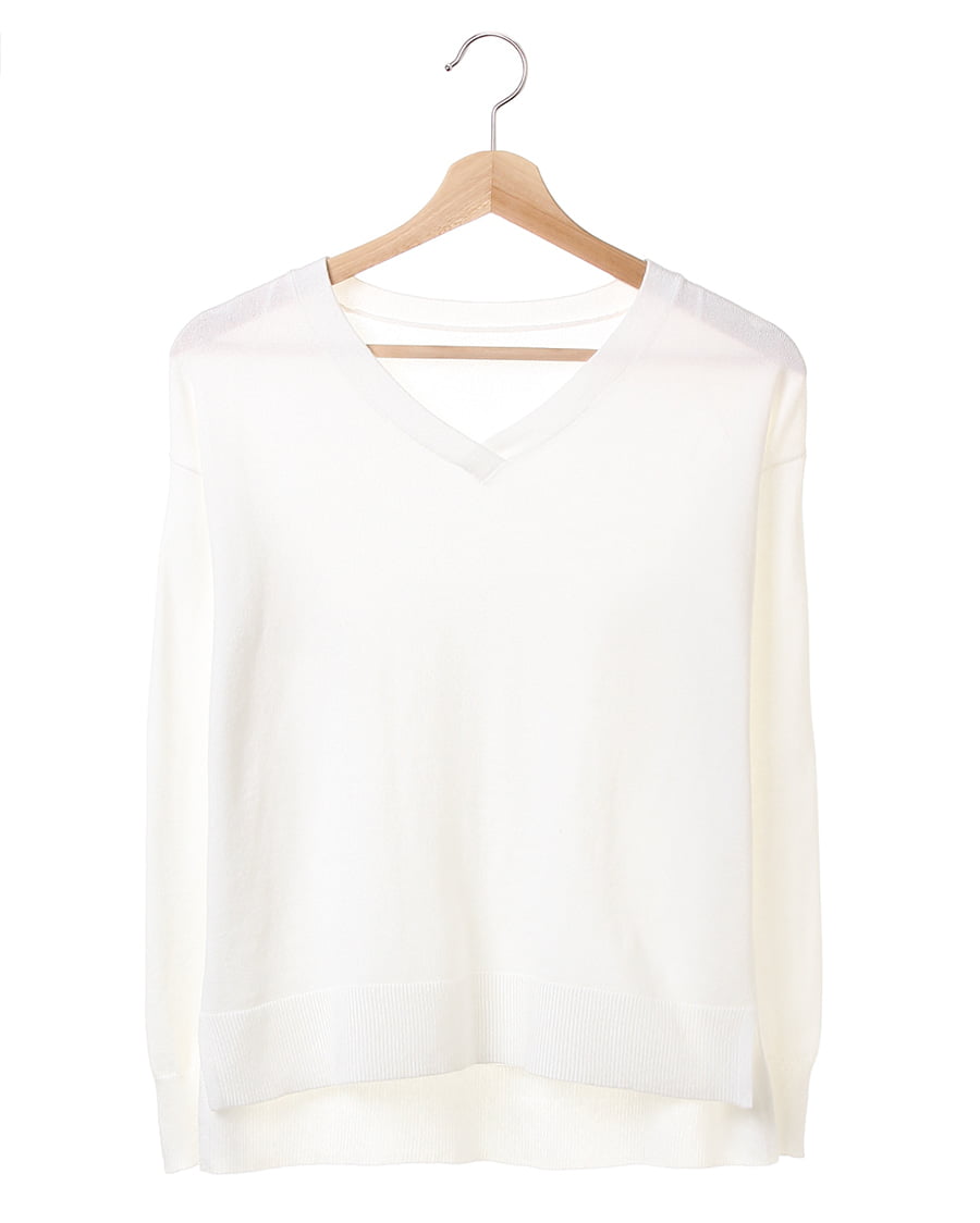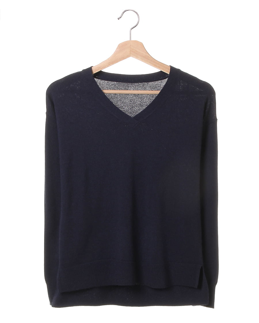 首元をすっきりみせるVネックや、サイドスリットがトレンドライクなニット。ほどよいユルさが女性らしい華奢見せもアピールできる、優秀アイテム。短めに設定された丈が、どんなアイテムともバランス良くマッチする1枚です。サイドにスリットを入れることでレイヤードのボリュームも軽減し、すっきりと着られます。スタイルアップ効果も期待できる、デザインです。