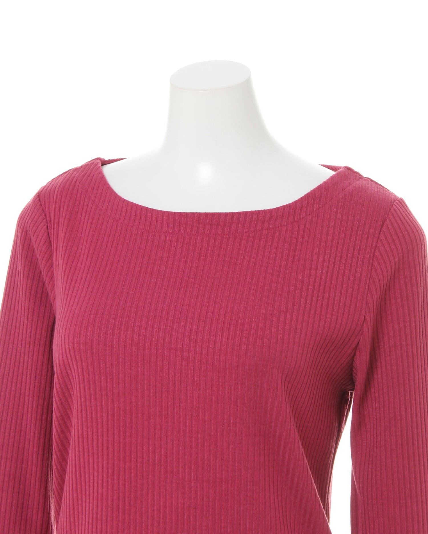 すっきりシンプルなリブトップスはワードローブの定番アイテム。細めのリブはしなやかにボディに沿い、上半身をコンパクトに見せてくれます。伸縮性のある素材で肌なじみも抜群。ボートネックがデコルテラインをきれいに見せてくれます。程よい厚みの生地で、ジャケットやブルゾンのインにも◎。どんなスタイルにも相性良く合わせられるので、何枚も欲しくなるアイテムです。