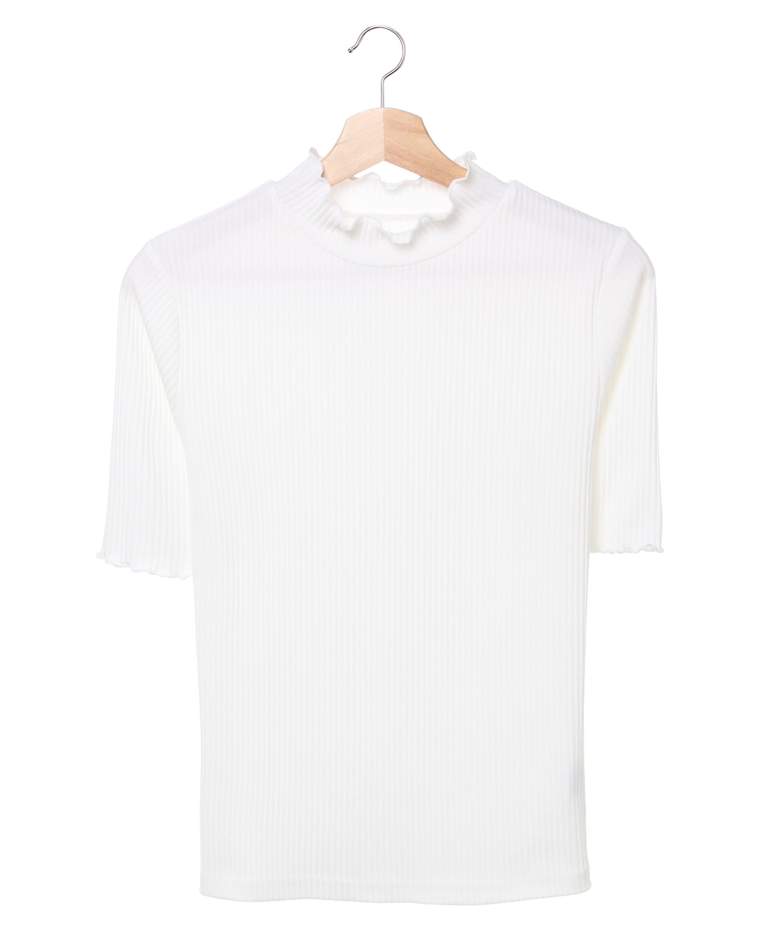 ボディラインに程よくフィットして上半身をコンパクトに見せてくれるリブトップスです。首元と袖口のメロウがトレンド感のある着こなしを叶えます。プチハイネックや長めの袖丈は、どんなボトムスにもバランス良く合わせられる万能アイテム。程よくハリがある生地を使用してるので、オフィスカジュアルにもぴったり。1枚ではもちろん、インナーとしても使えるのでシーズン長く重宝します。
