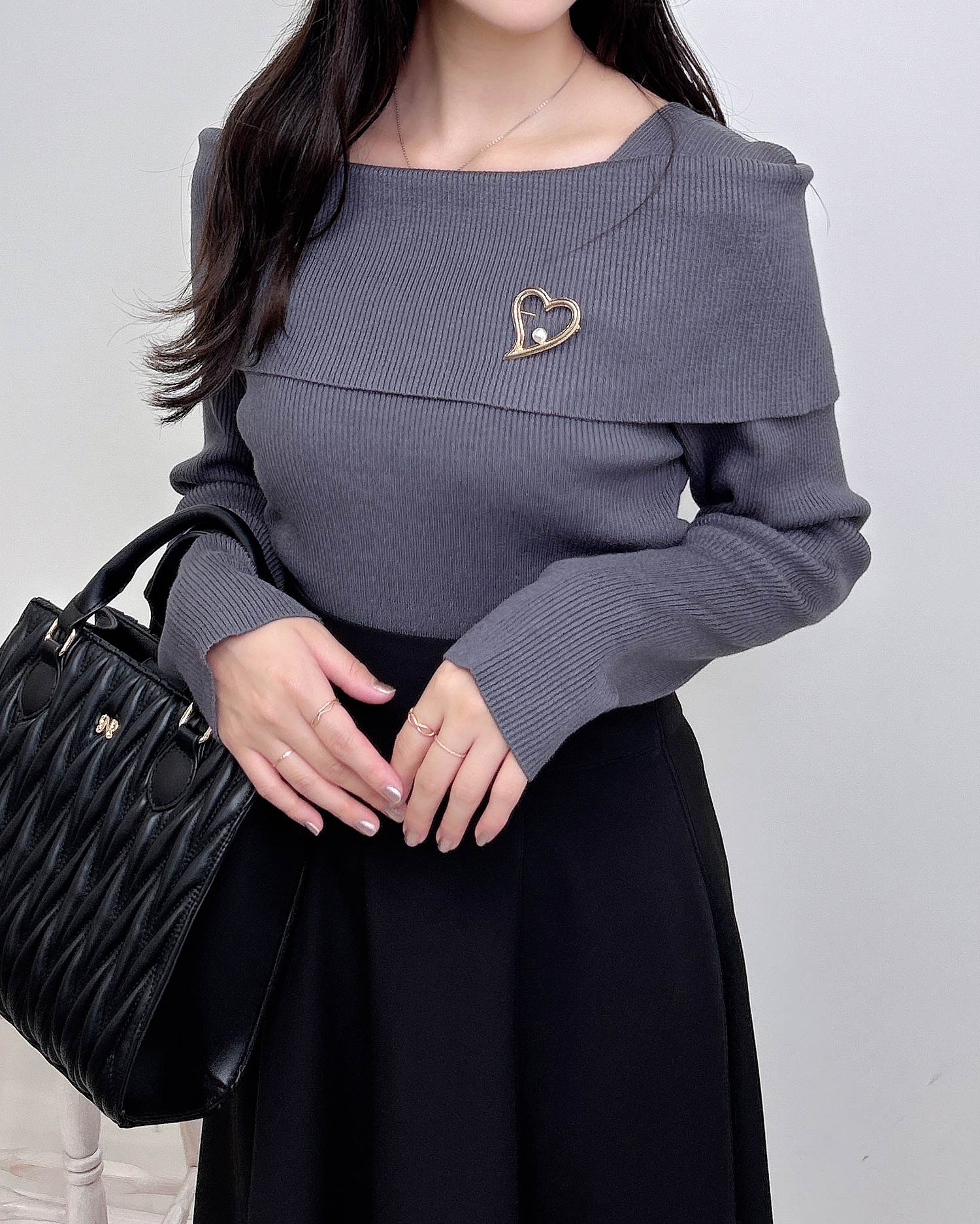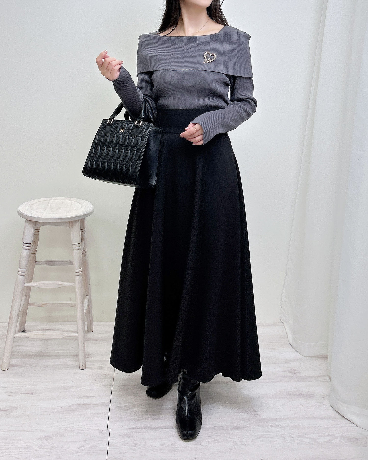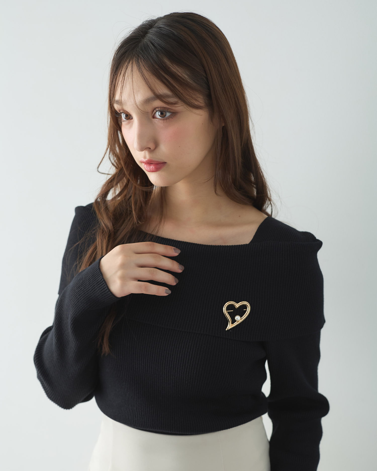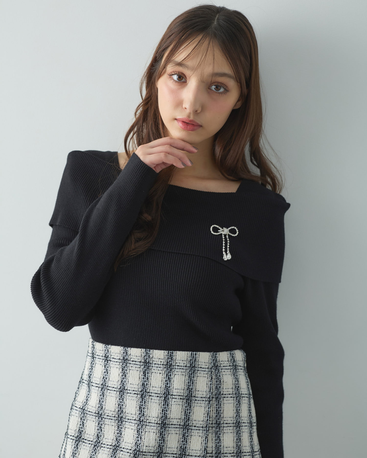 【オフショルデザインで美しいシルエットを叶えるフェミニンニット】
