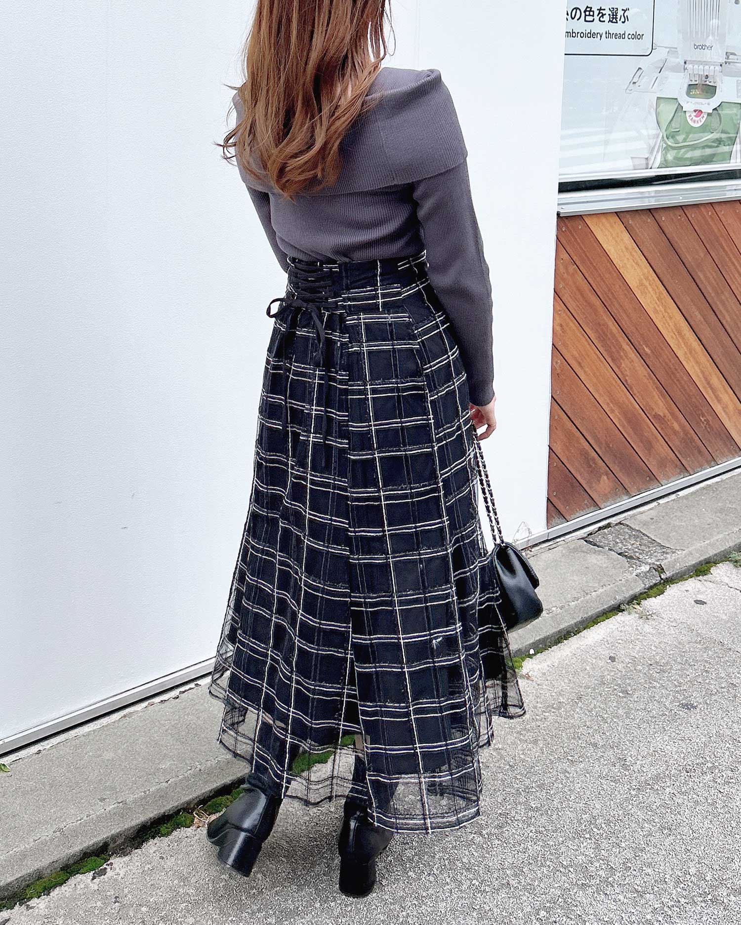 コンパクトなシルエットなのでボリューム感のあるフレアスカートとも相性抜群です。