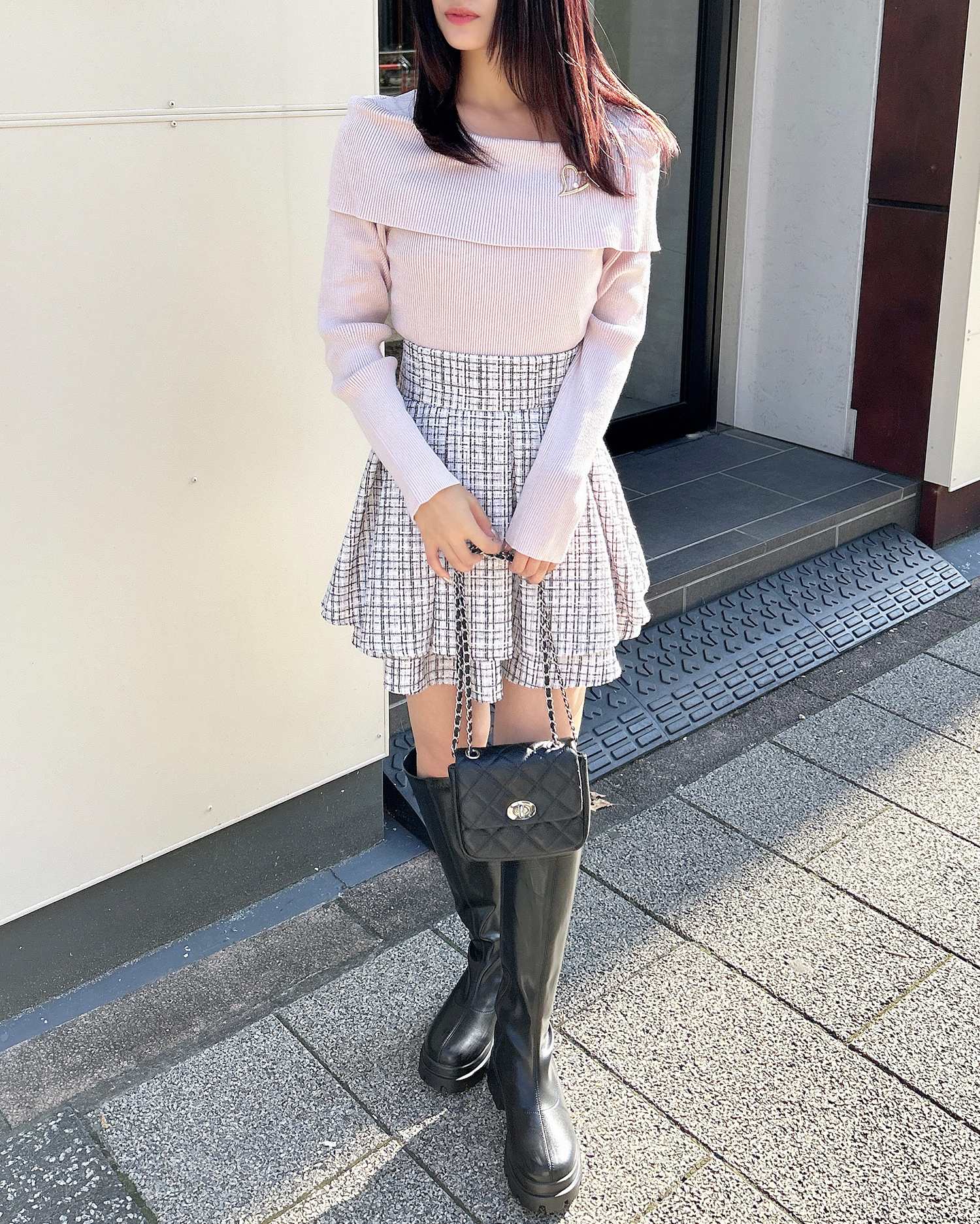 タイトなスカートやミニボトムを合わせ全身を上品な印象のシルエットに。