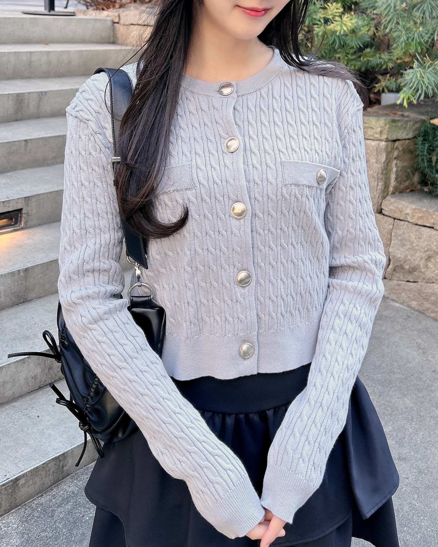 【いつもより華やかに装いたい時にぴったりな、ケーブルニットのカーディガン】