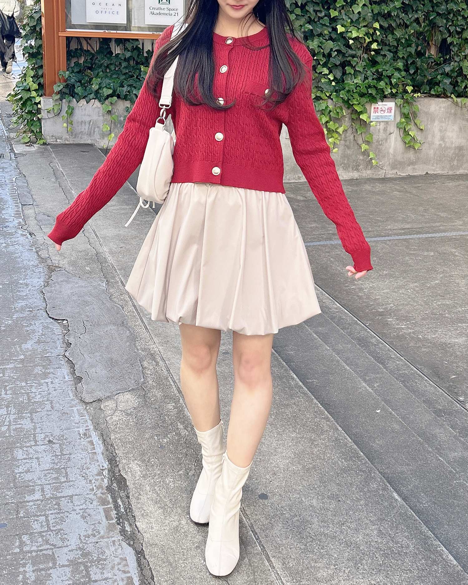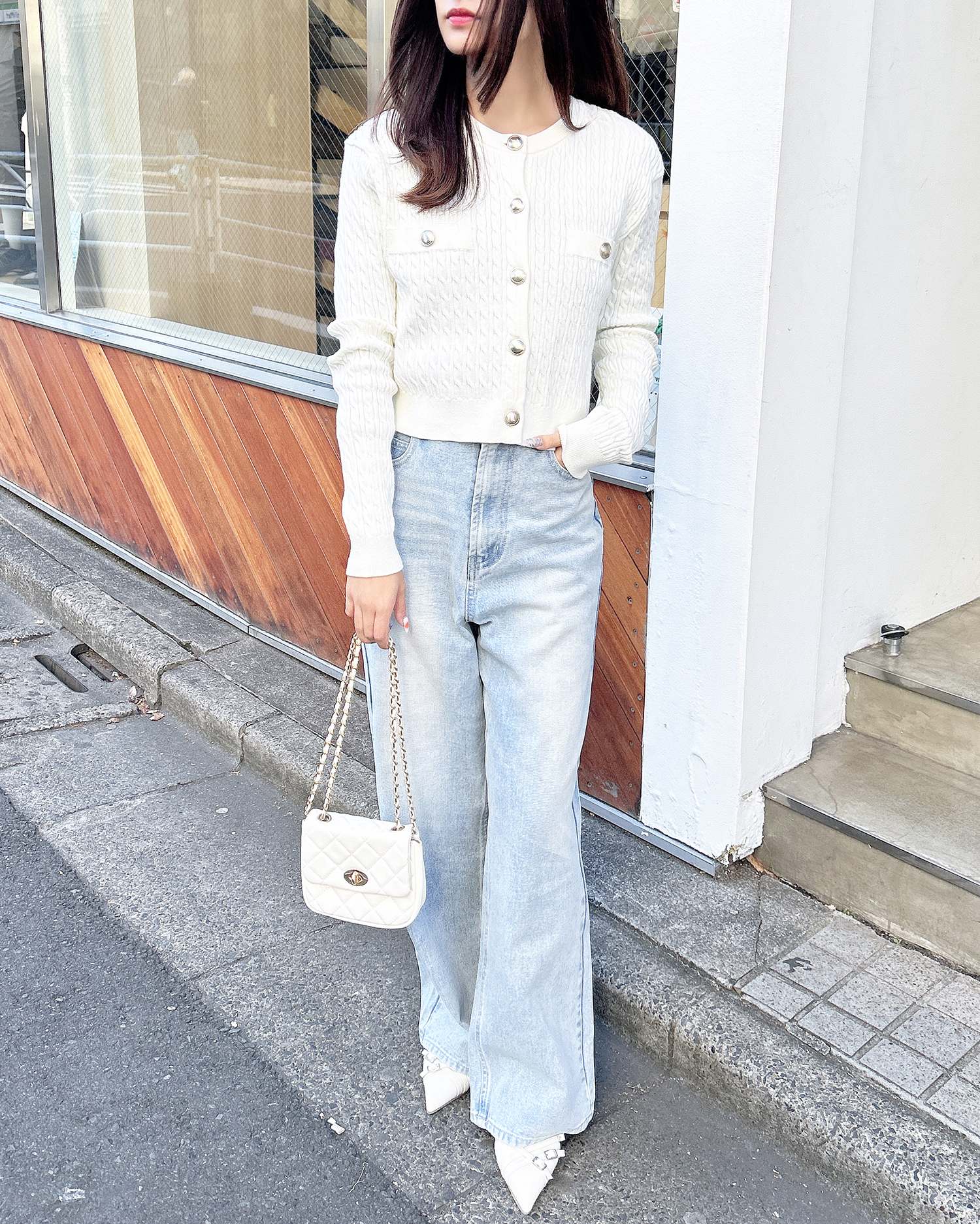 韓国風ガーリーコーデも上品に決まります。