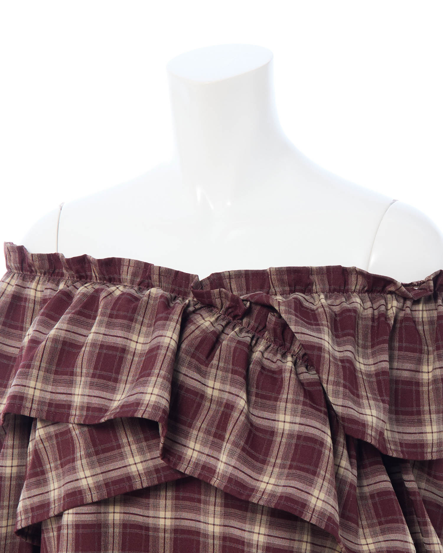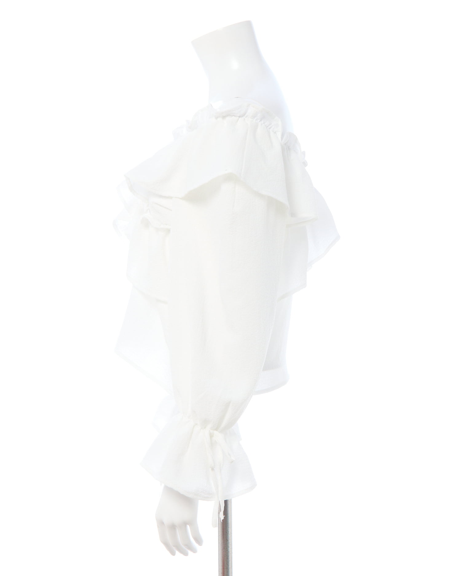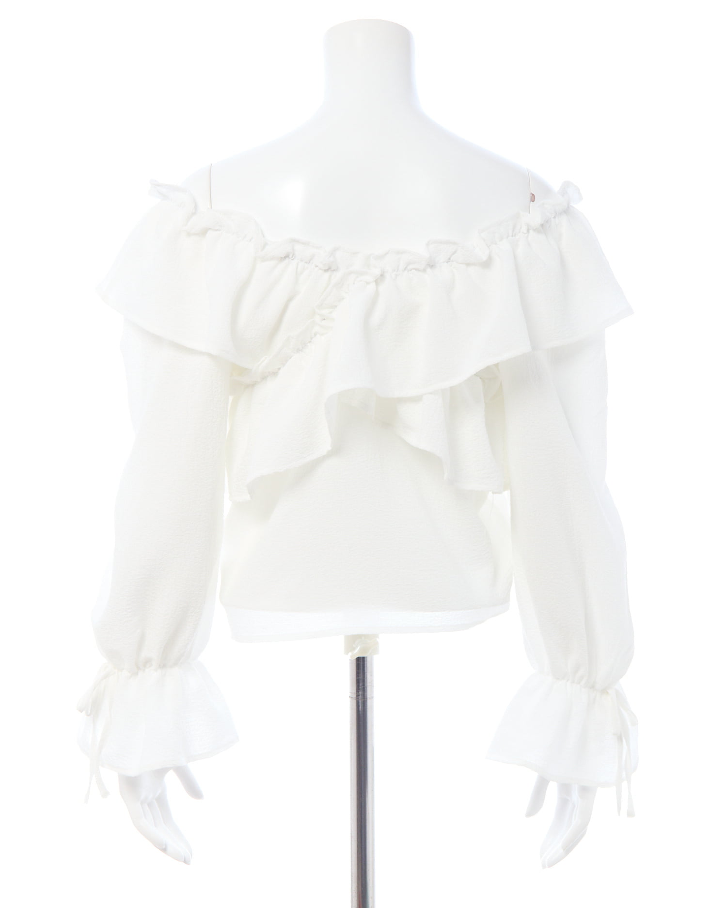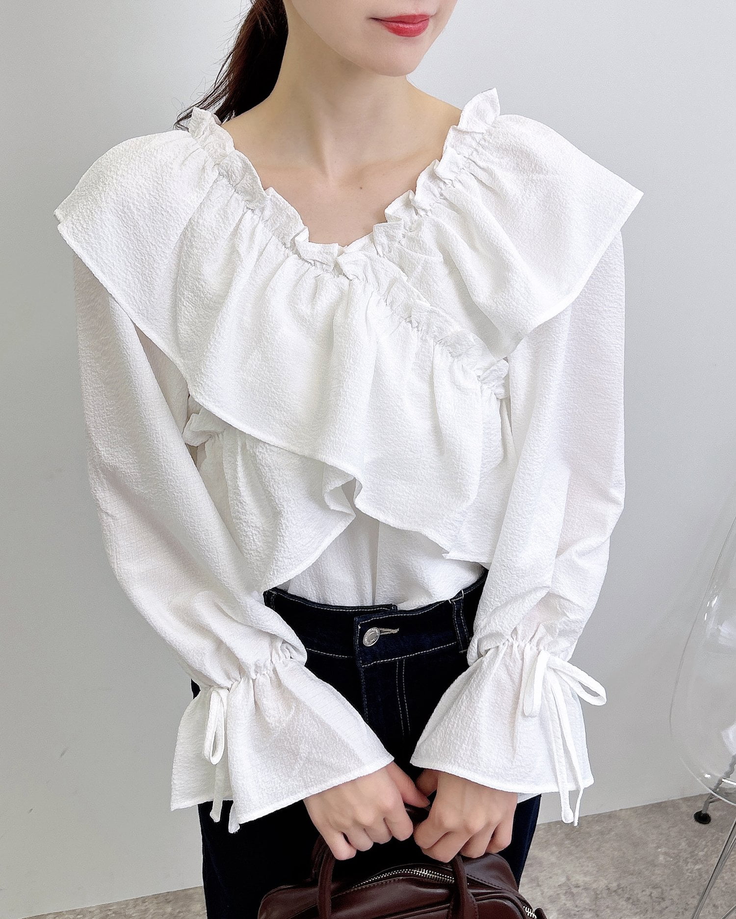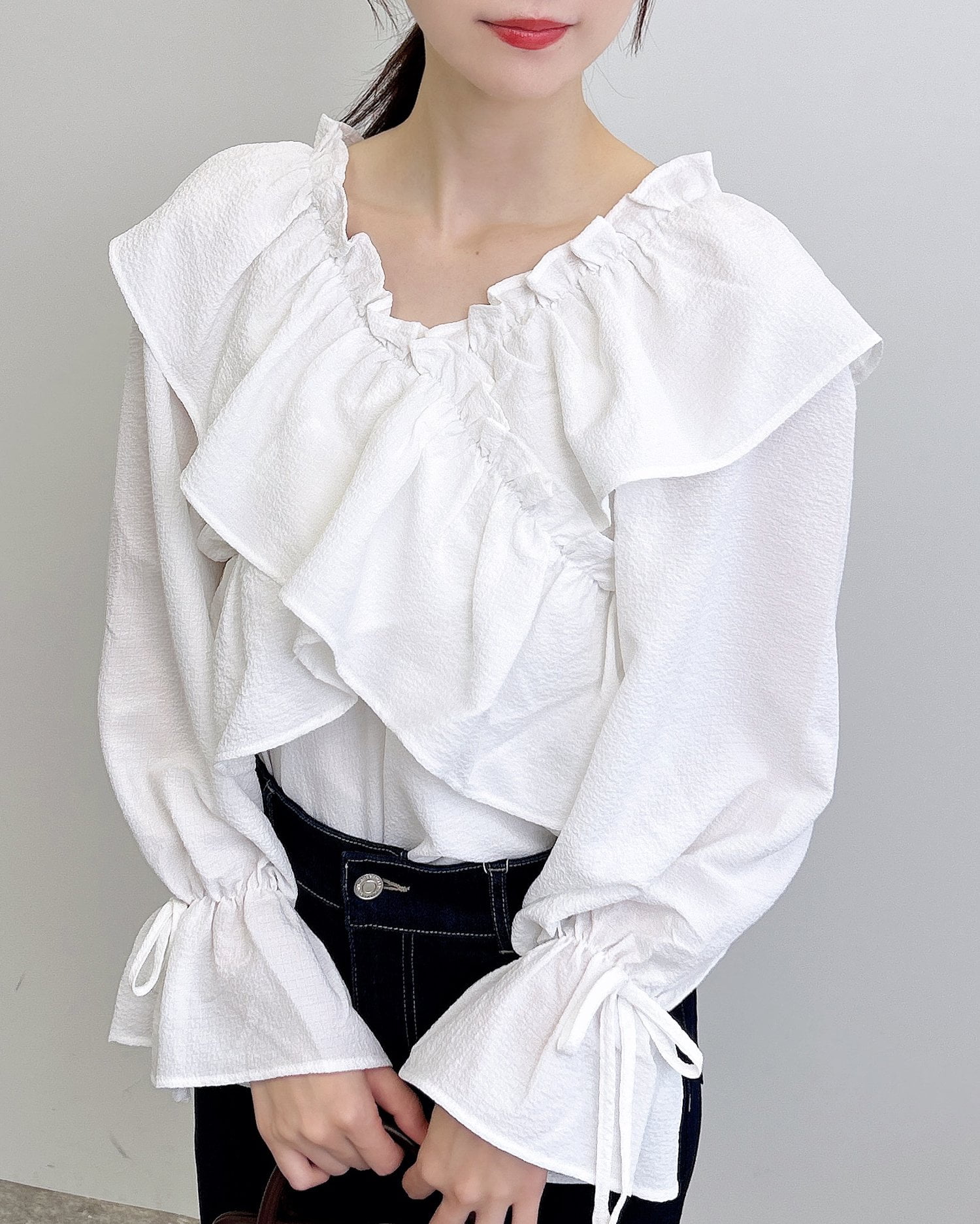 たっぷりフリルをクロスさせることで胸元にボリュームをプラス。