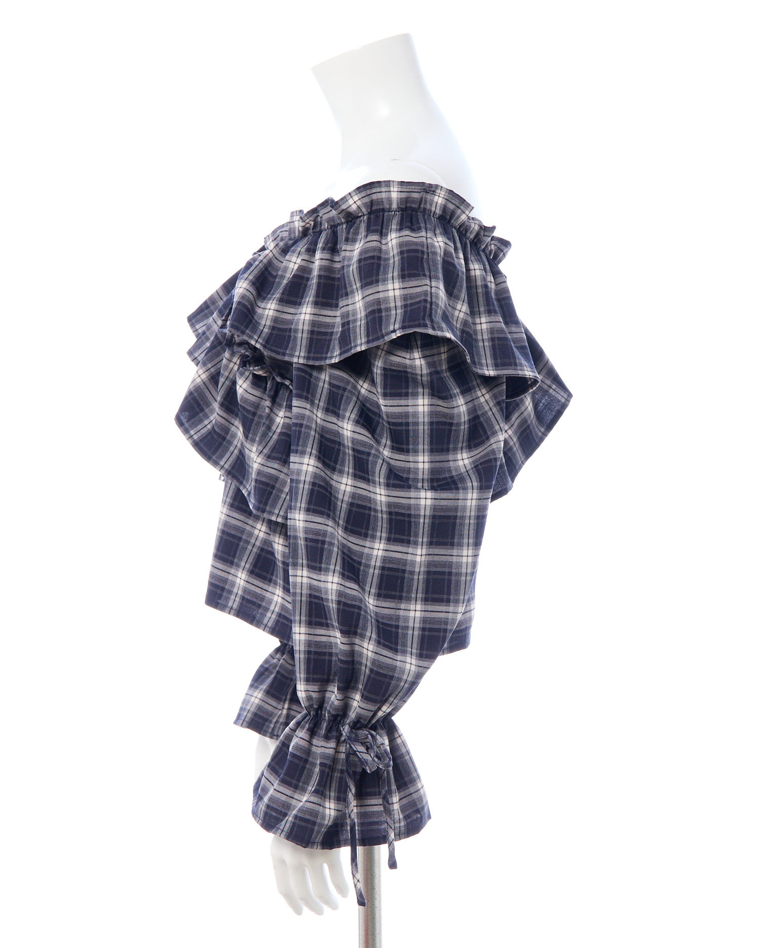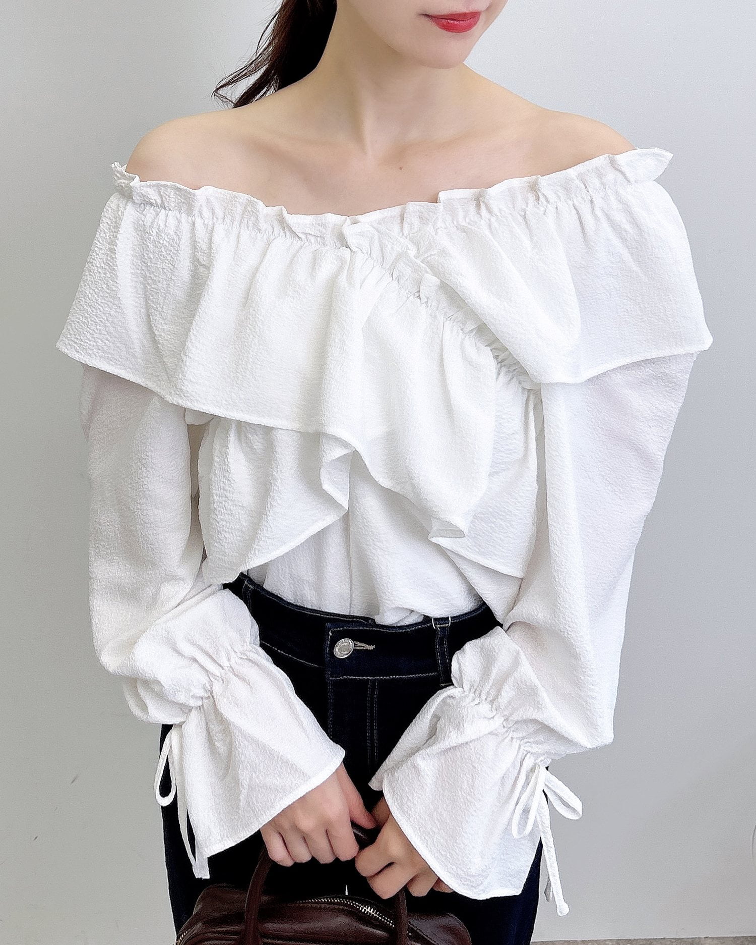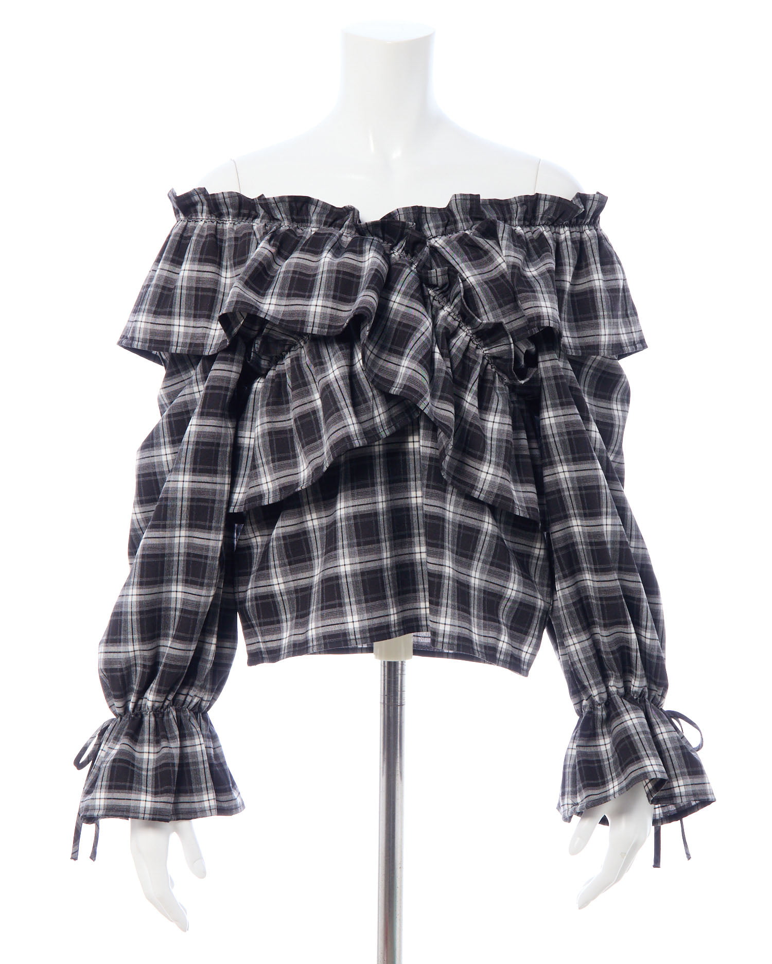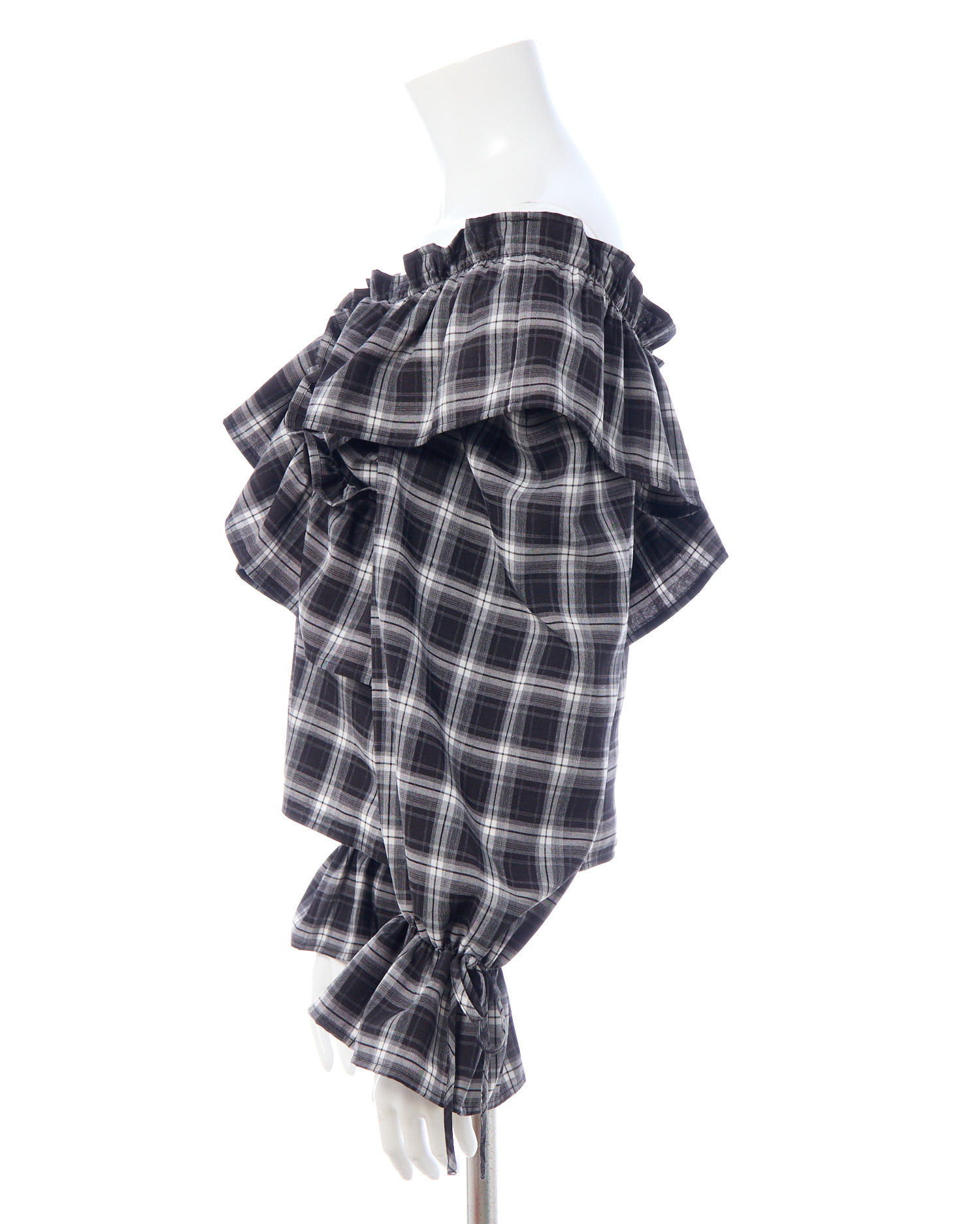 たっぷりフリルをクロスさせることで胸元にボリュームをプラス。