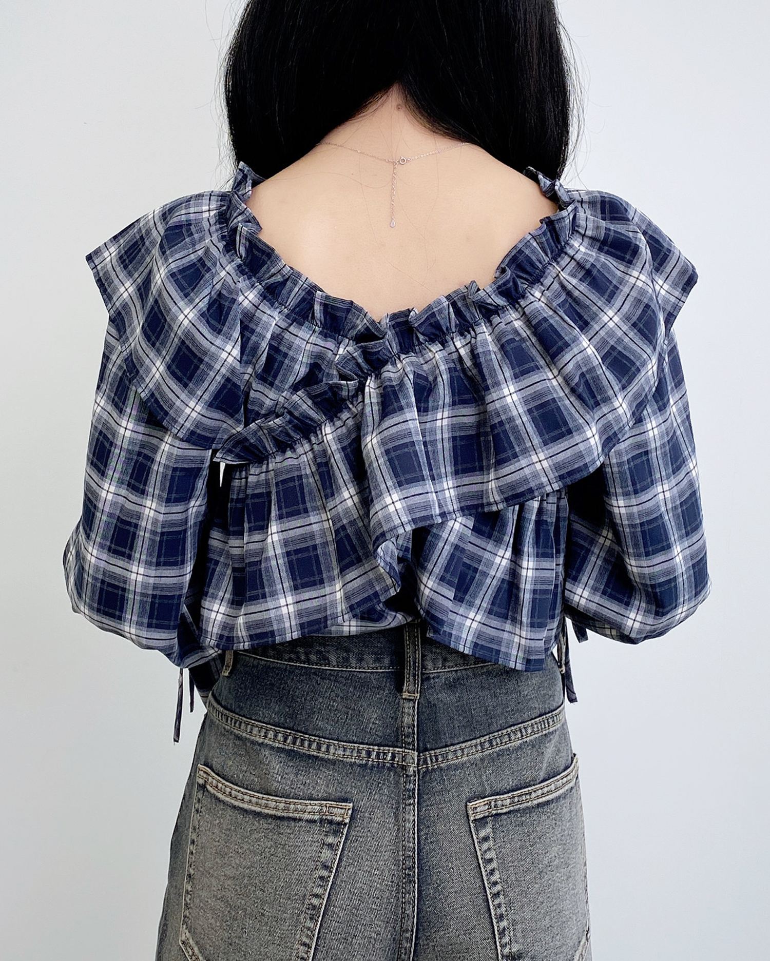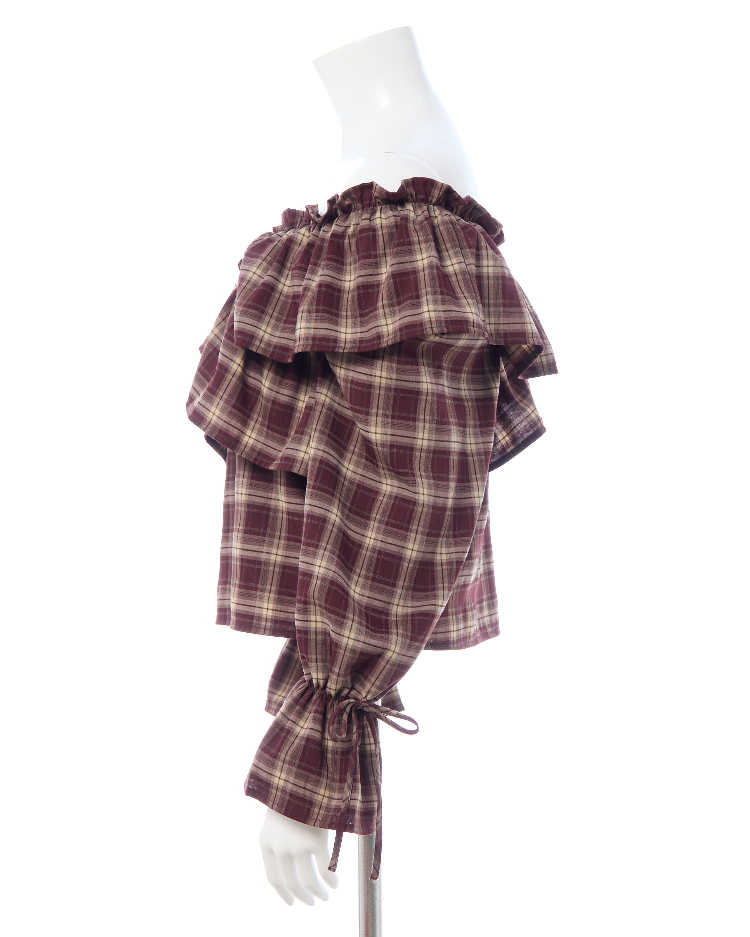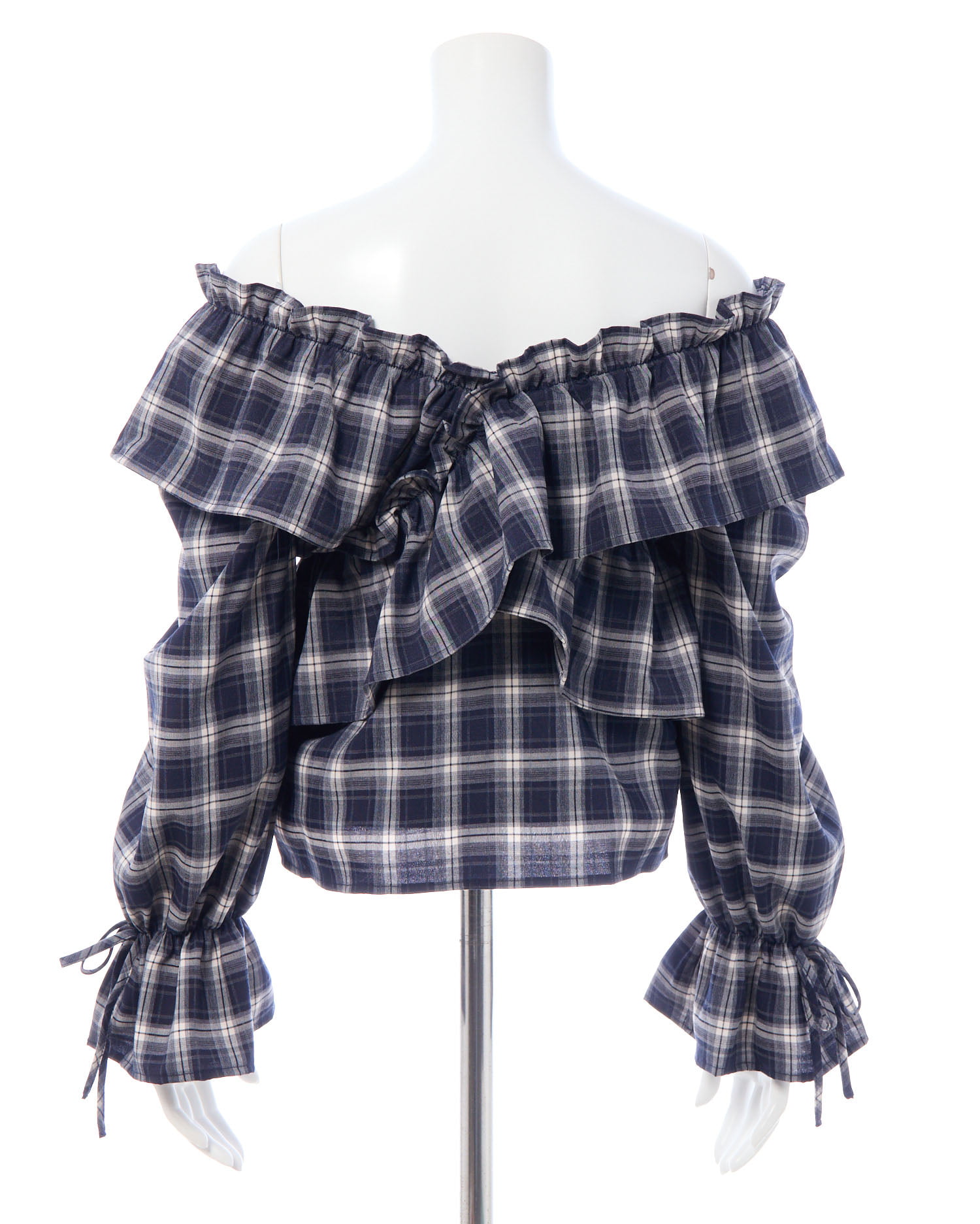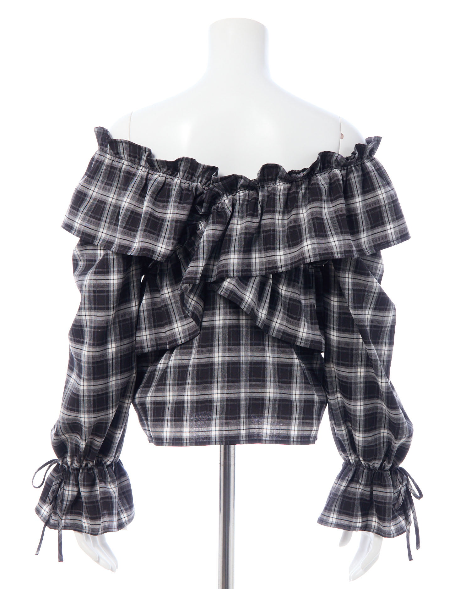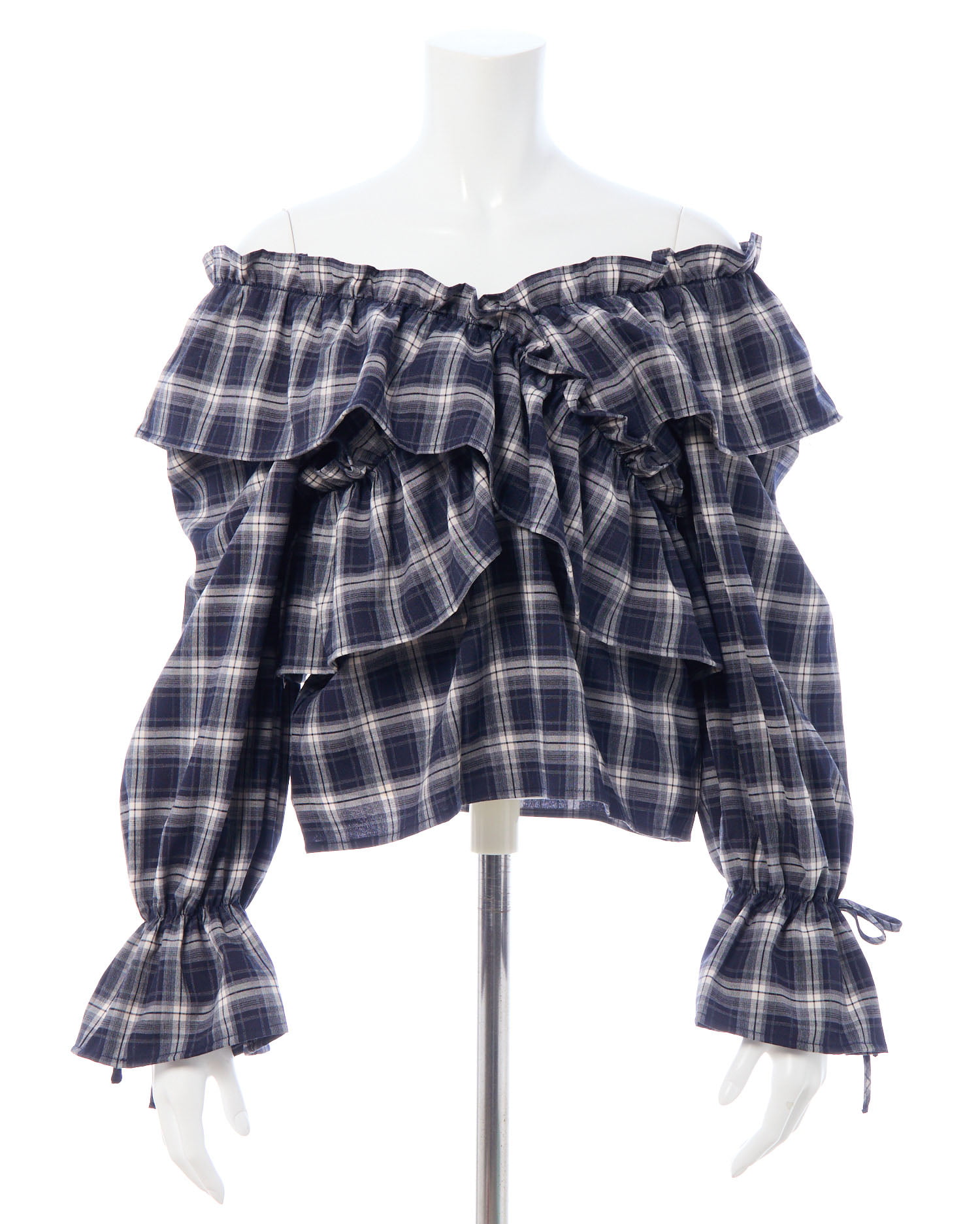たっぷりフリルをクロスさせることで胸元にボリュームをプラス。