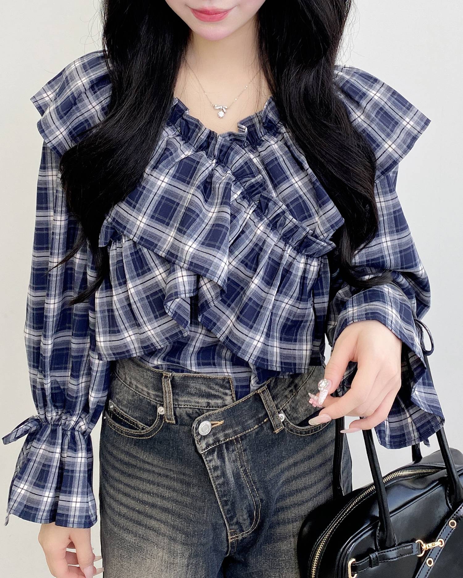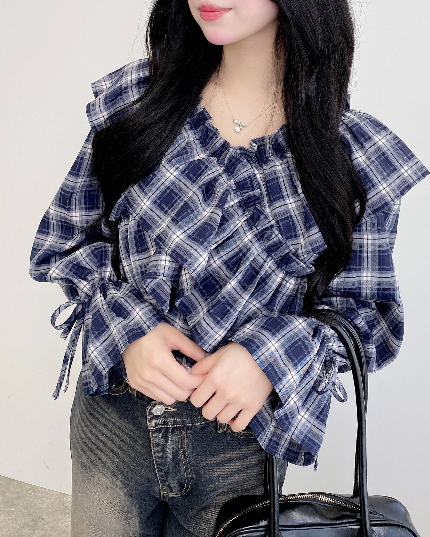 袖口にはリボンをあしらってアクセントに。