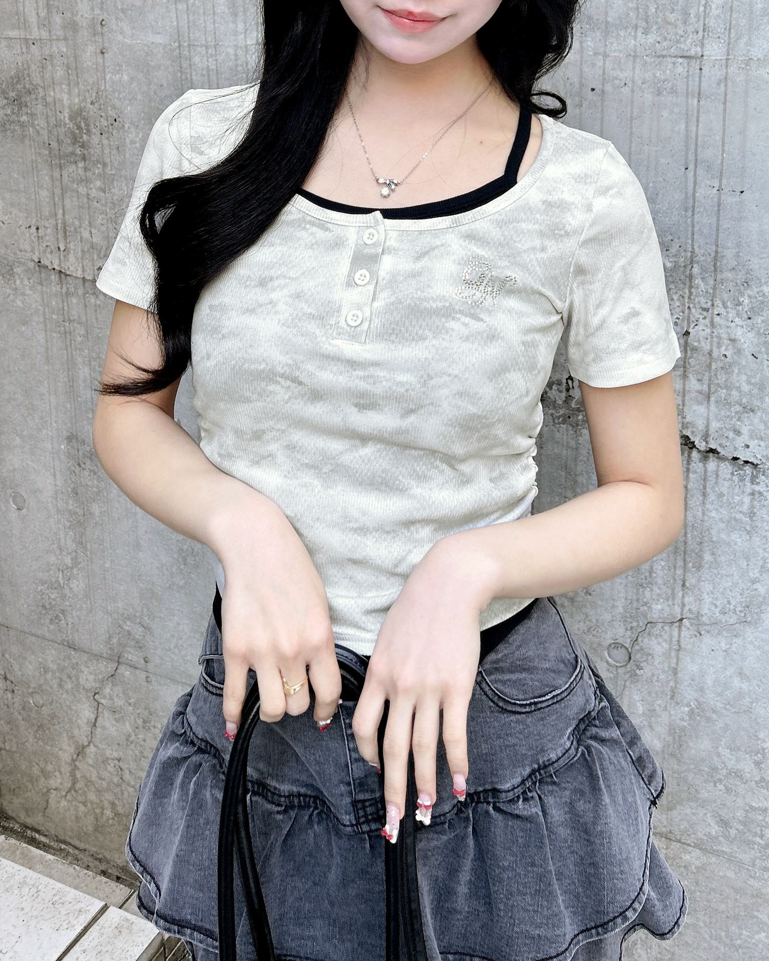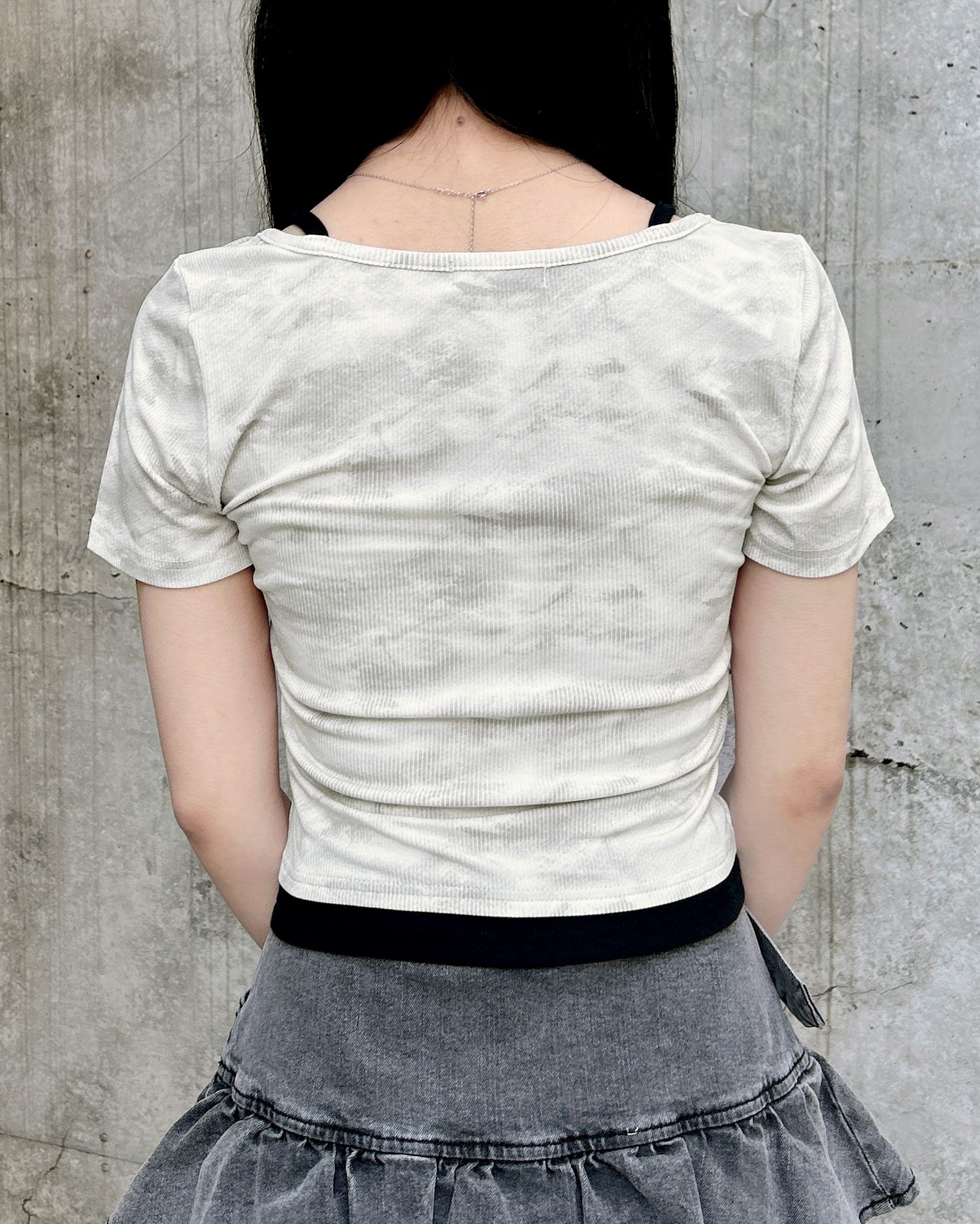 キャミソールにTシャツを重ねたかのようなドッキングデザインが◎