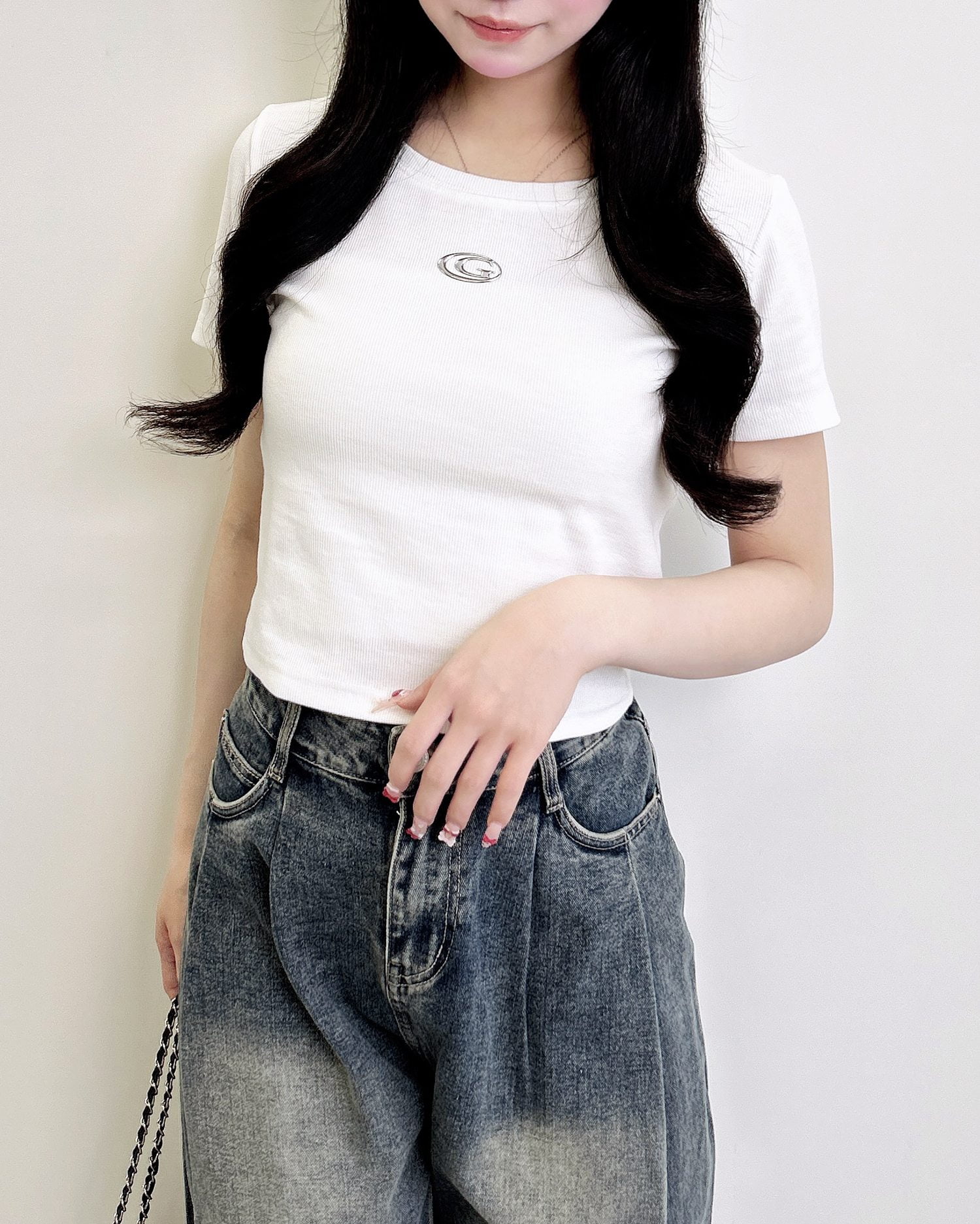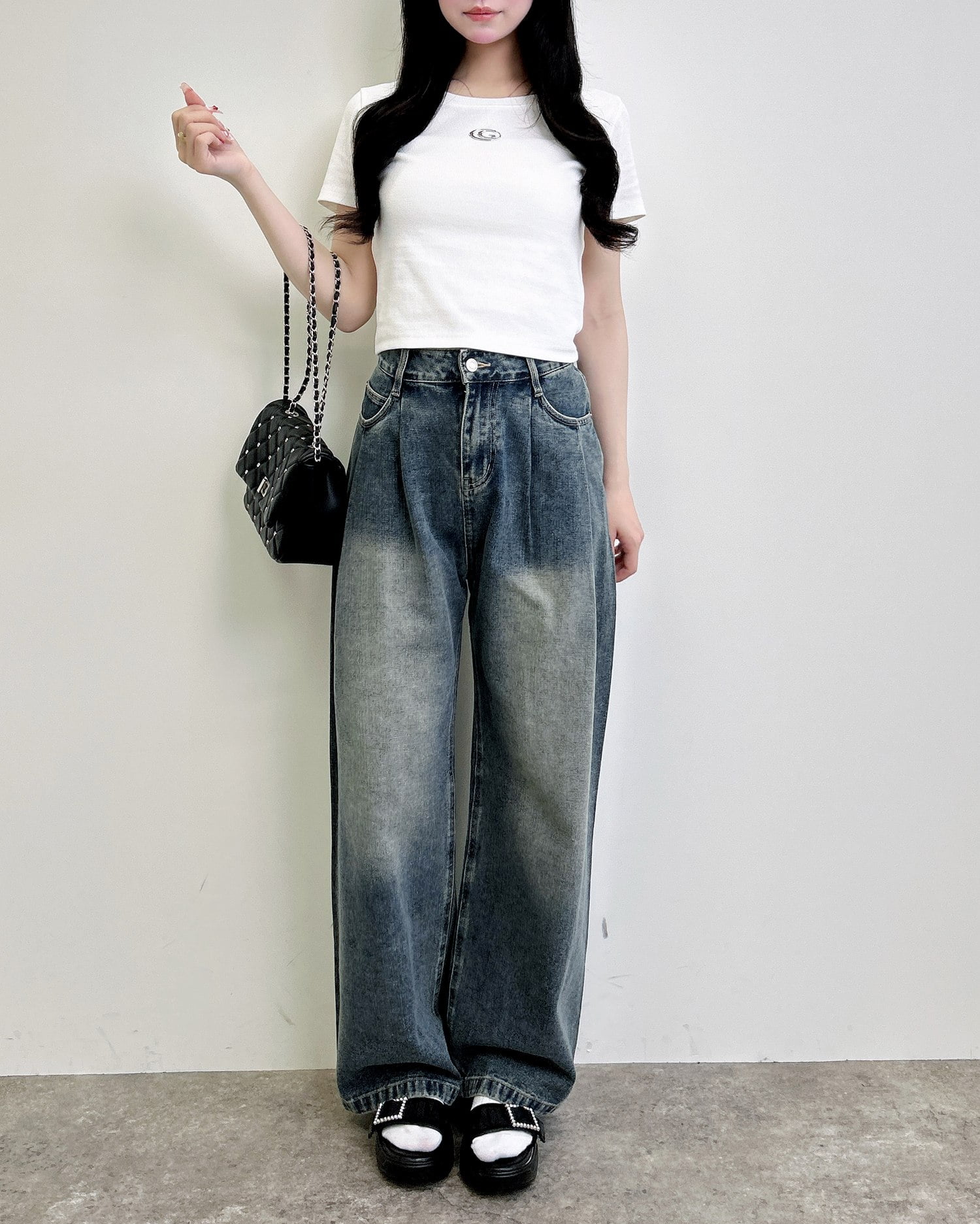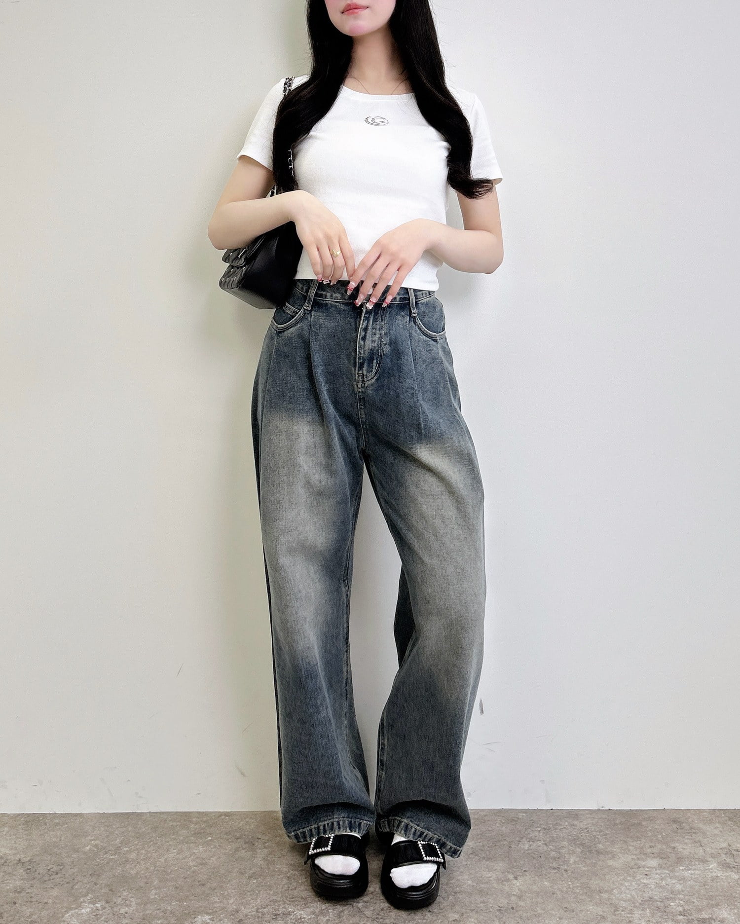 ワイドデニムなどトレンドのボリュームボトムを合わせた着こなしもおすすめです。