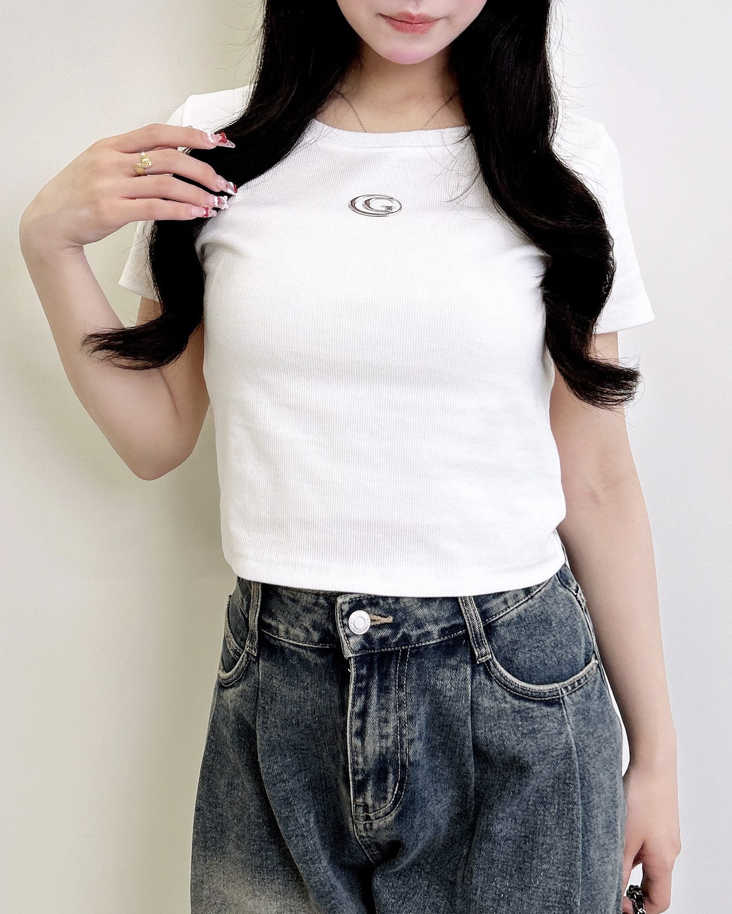 • INGNI(イング) メタルロゴリブTシャツ オフホワイト