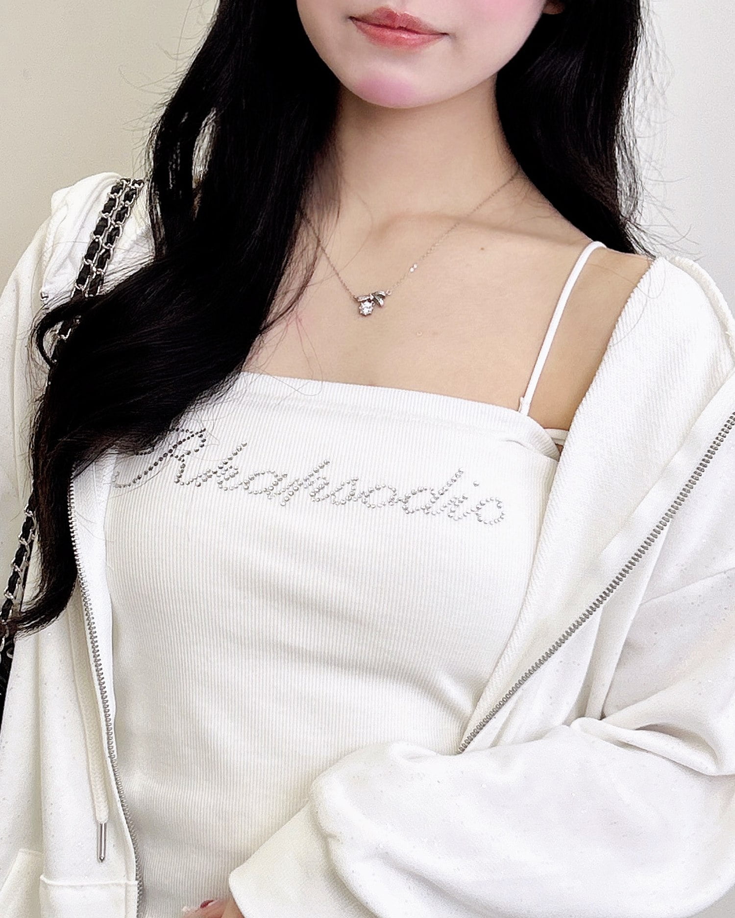 シンプルなワンカラーに映えるキラキラのラインストーンロゴが魅力。