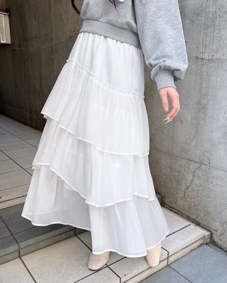 【軽やかな質感が上品なシアーティアードスカート】