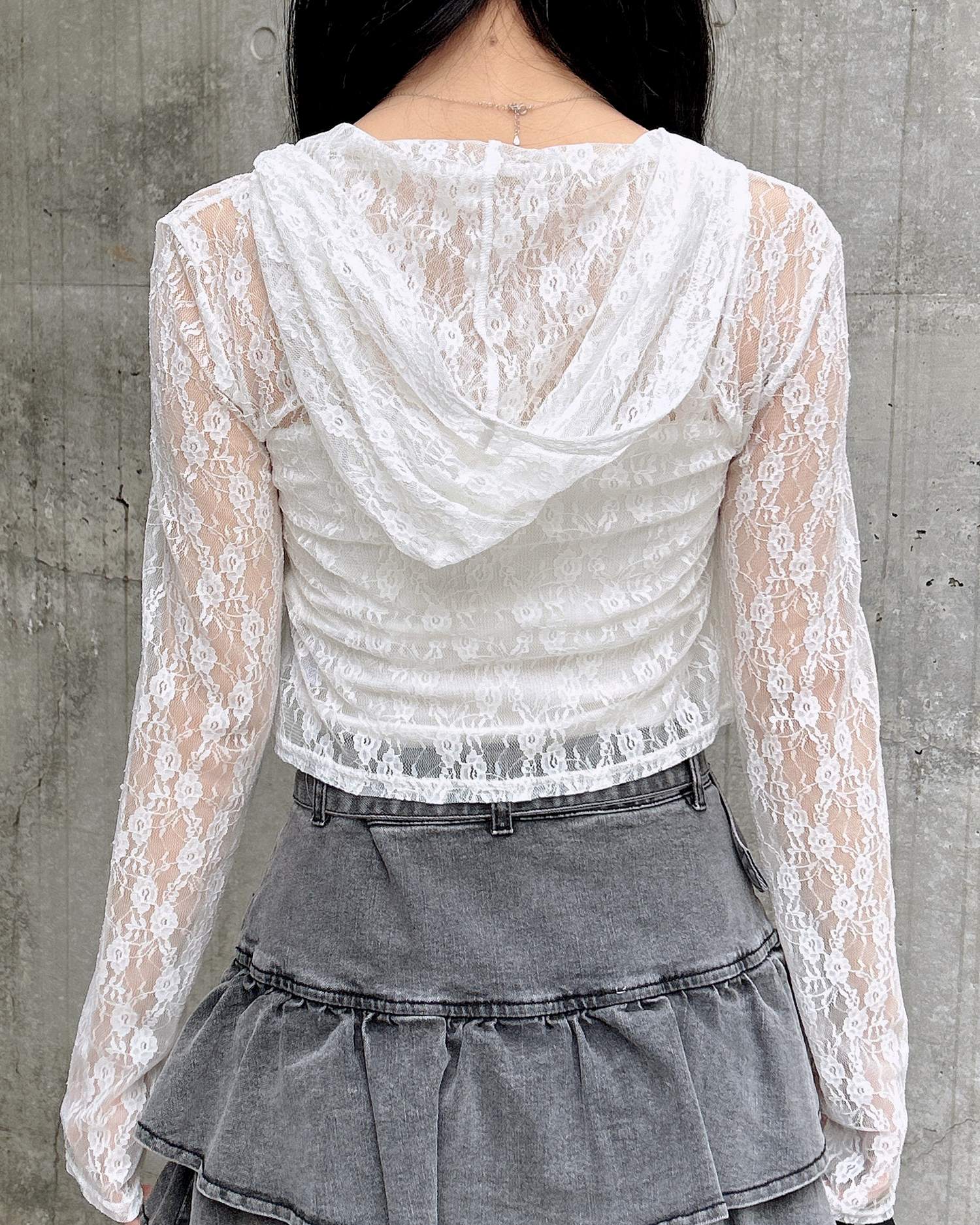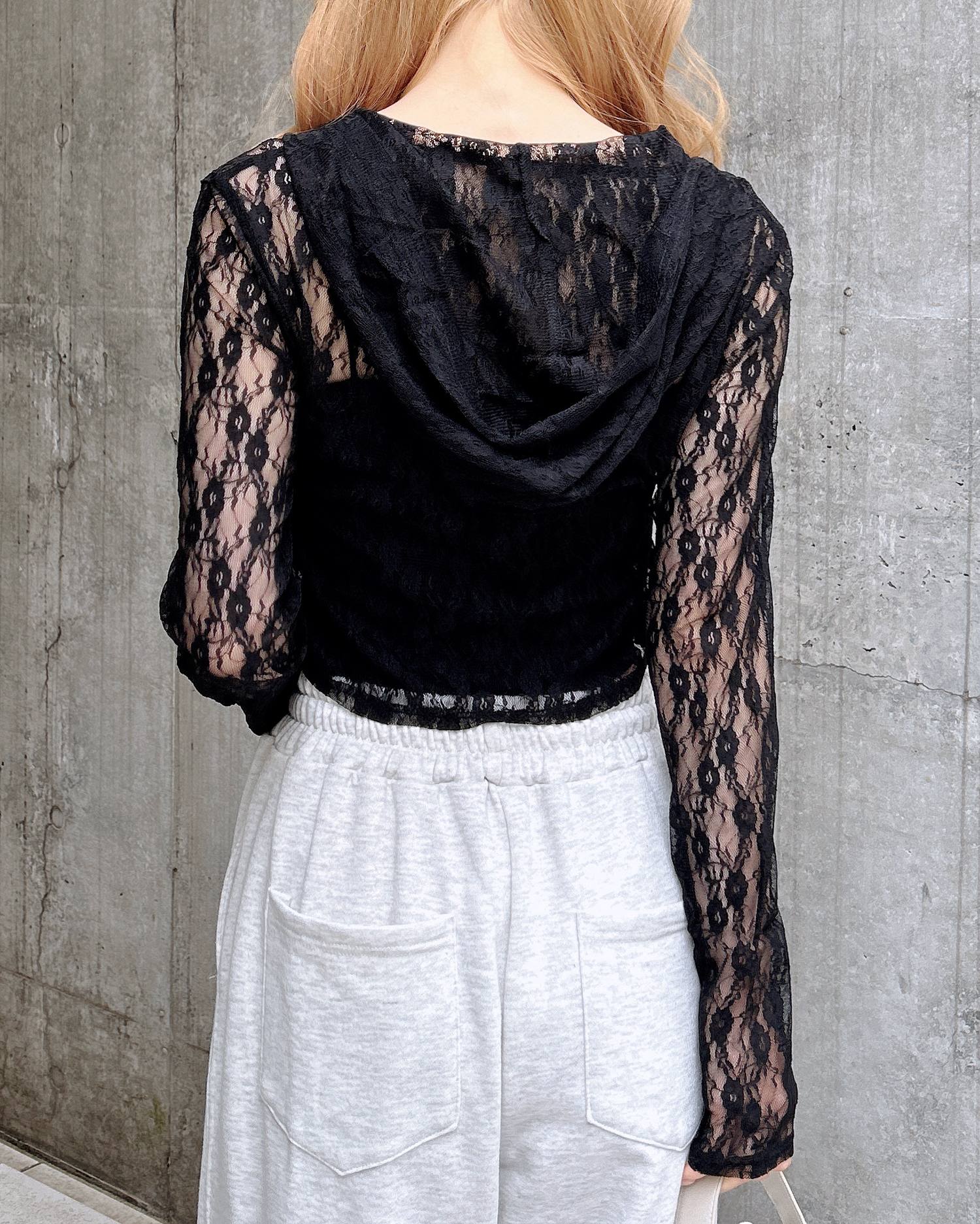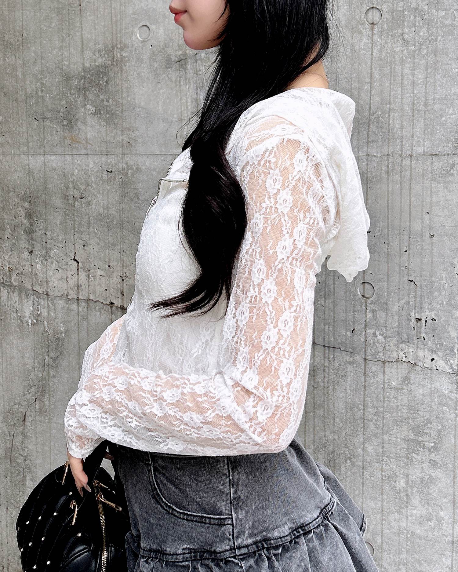 【カジュアルすぎない風合いで洗練された印象のシアーレースパーカー】
