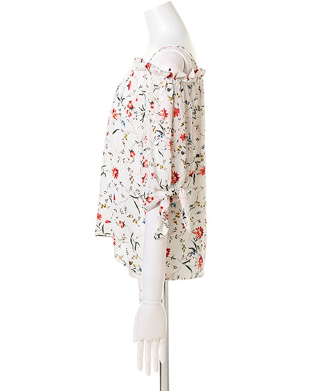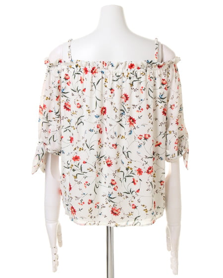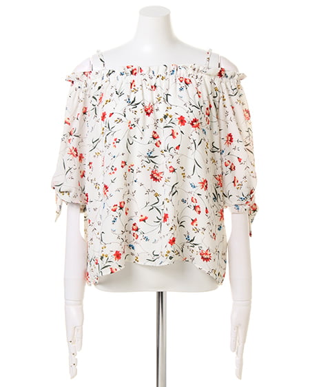 【1171-132776 花柄袖リボンオフショル/TOPS】