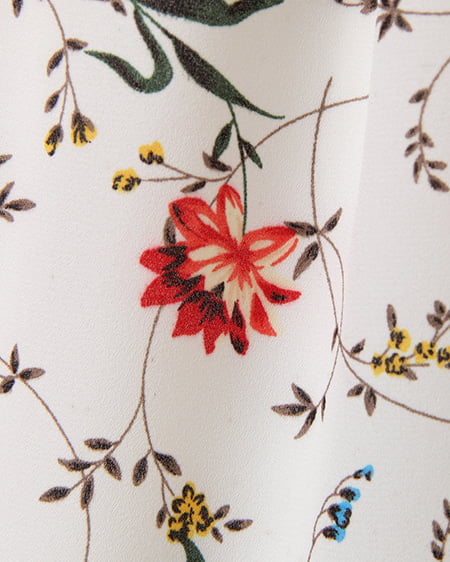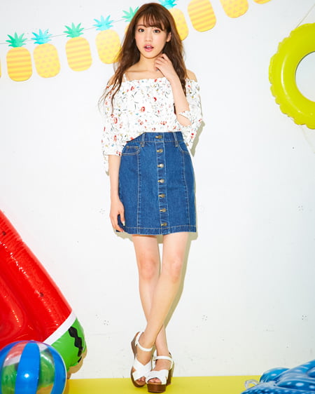 花柄袖リボンオフショルTOPSと前ボタン台形スカートのSET☆
