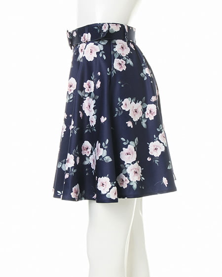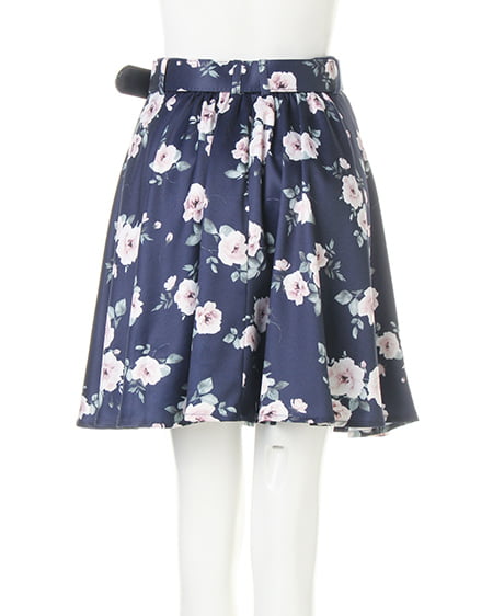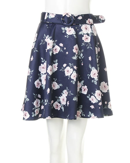 【1174-342219 共ベルト付花柄フレア/スカート/B】