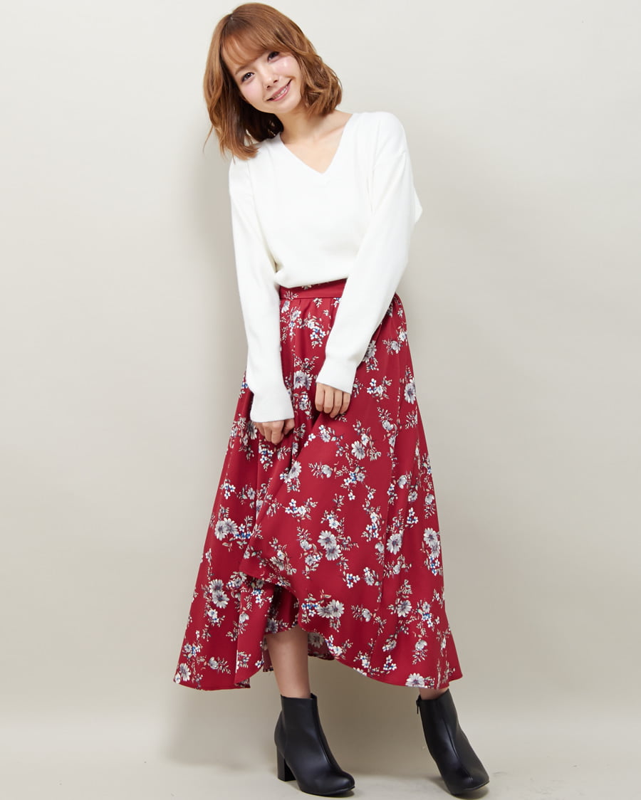 【1174-342200 花柄イレヘム/スカート】