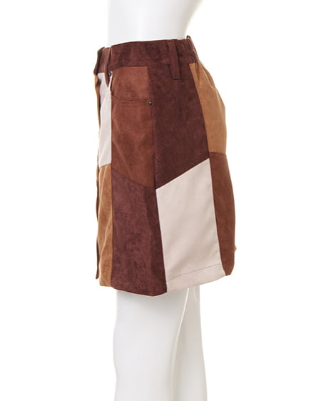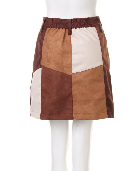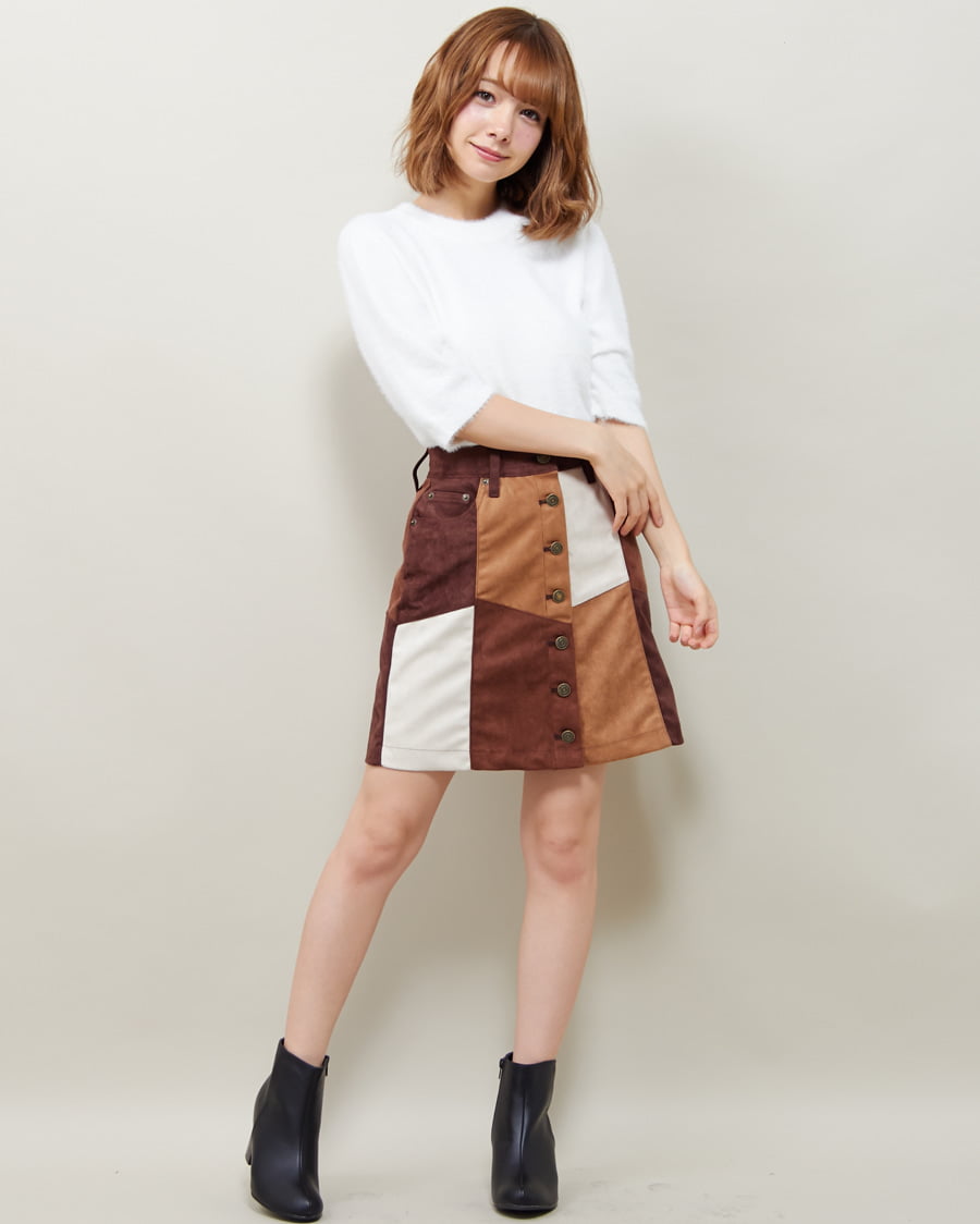 6174-842725 フェザー5分袖ニット+パッチワークスカート/SET