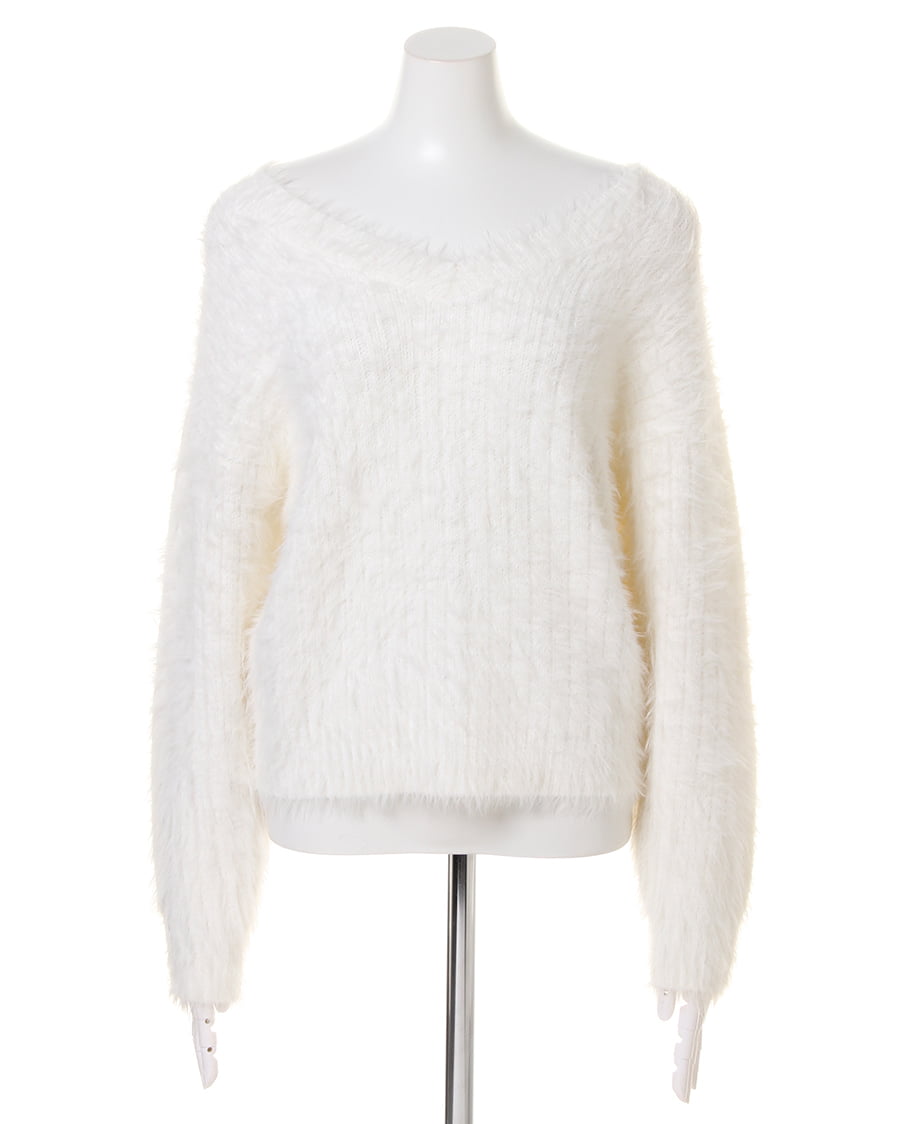【1174-942068 フェザーヤーンリブ2WAY Vネックニット】