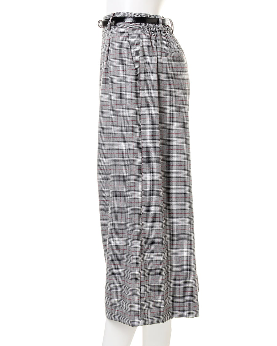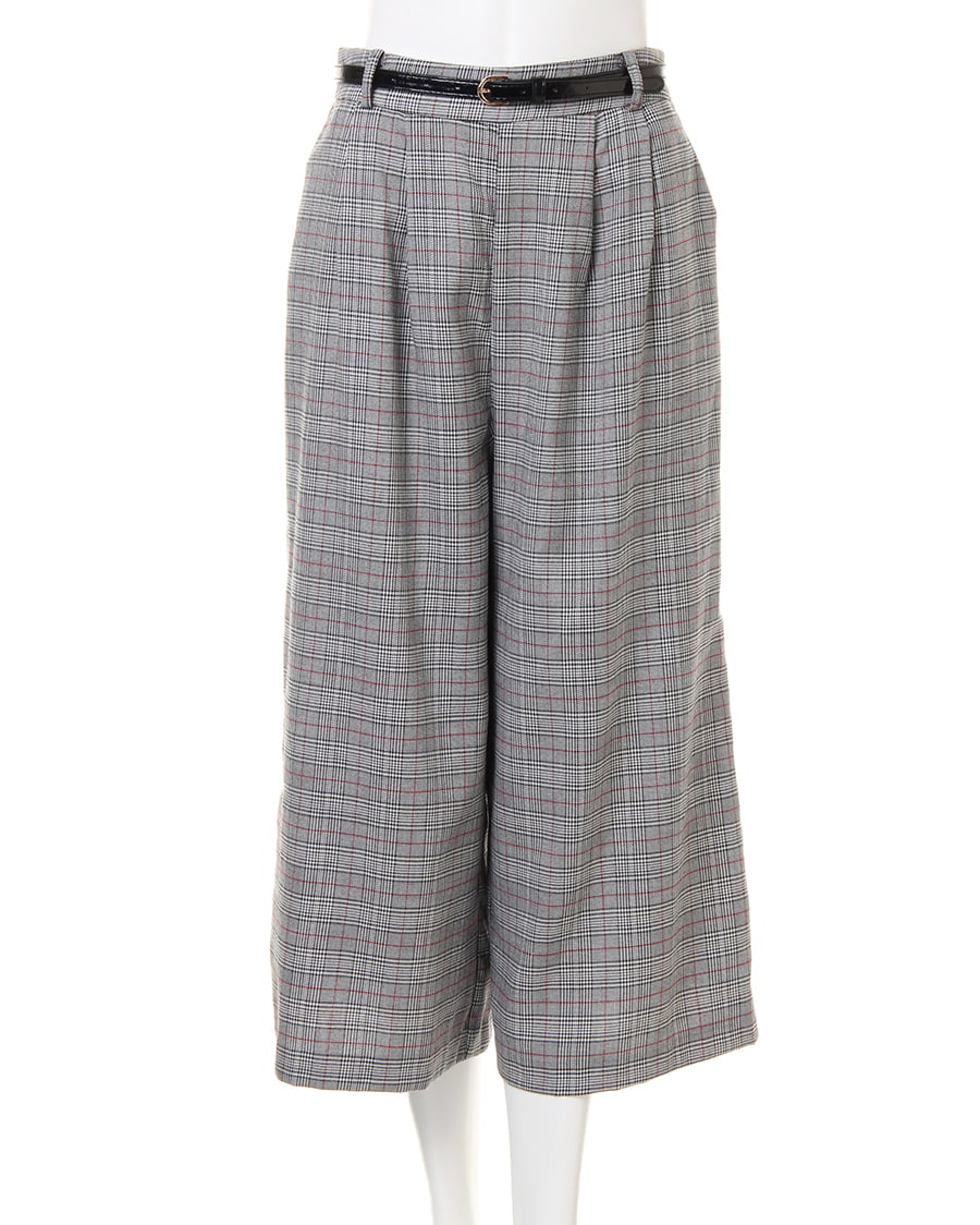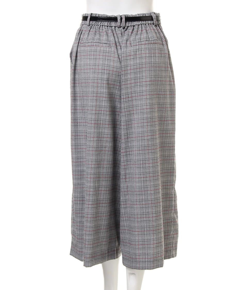 【1174-342130 ベルト付グレンチェック柄ガウチョ/パンツ】