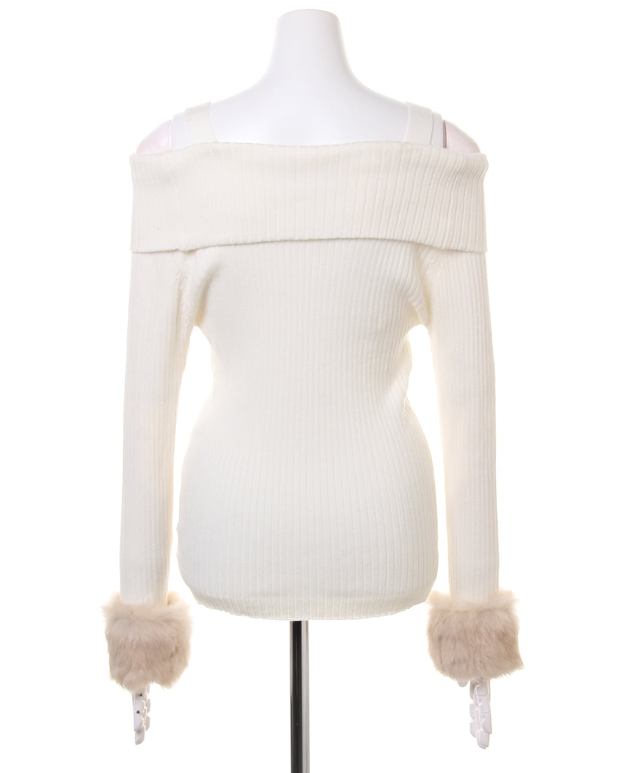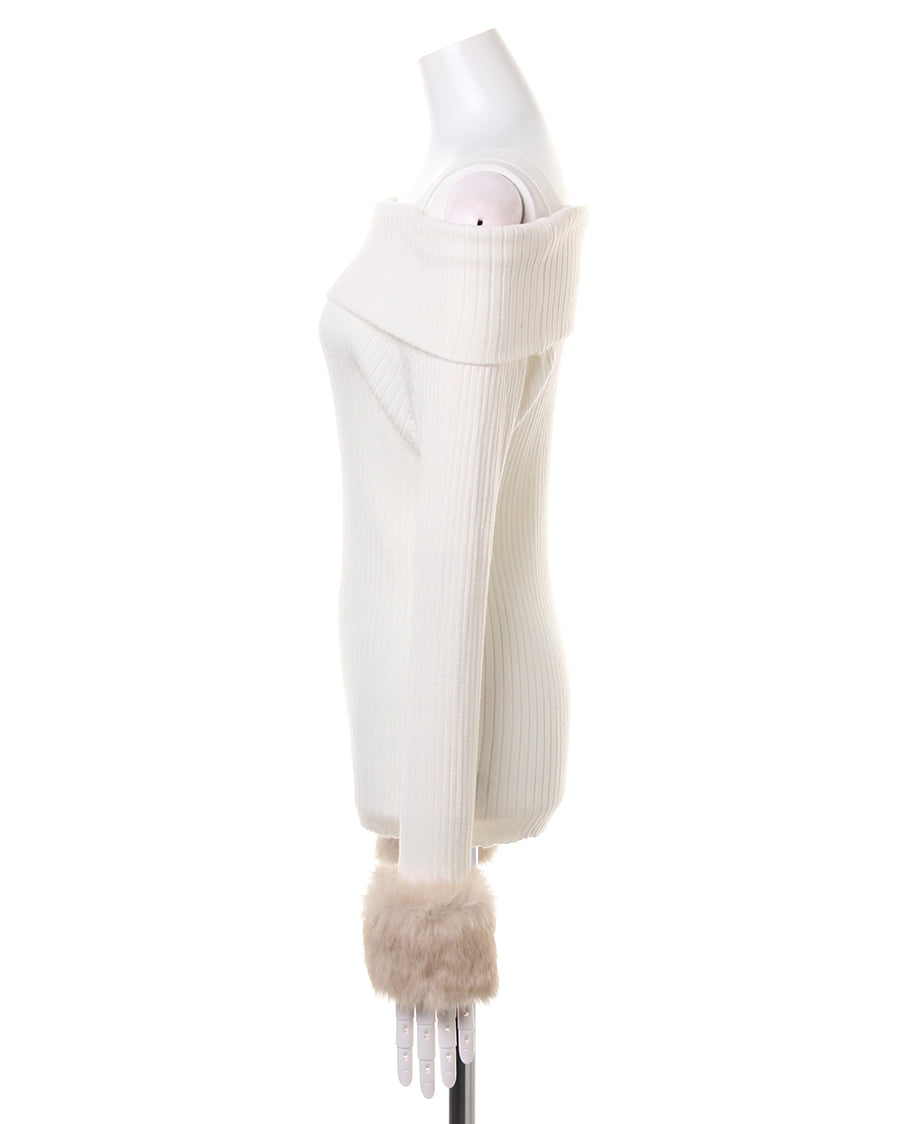 【1174-942442 袖ファーオフショルリブニット】