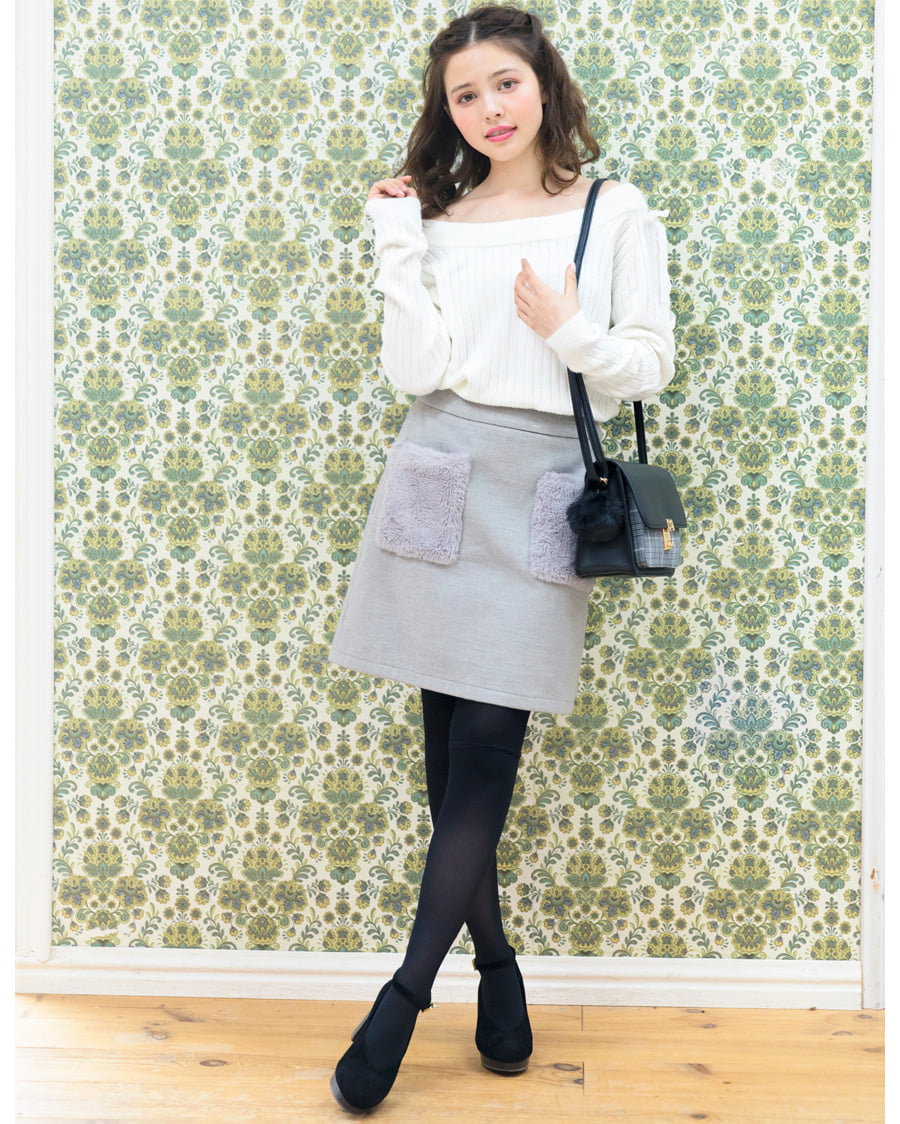 ショルダーレースUPニットとファーポケ付フェイクウール台形スカートのSET☆