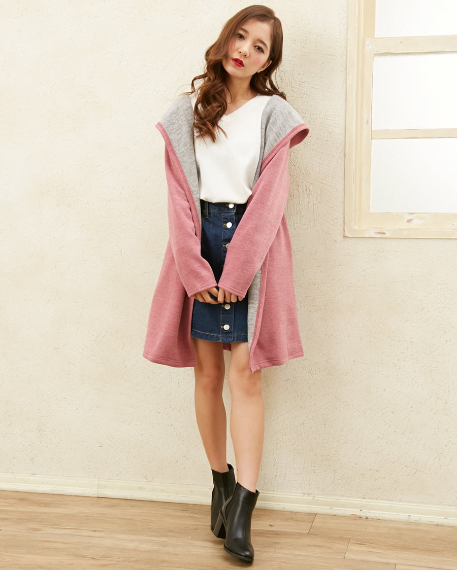 天竺サイドスリットVネックとミル起毛フードコーディガンのSET☆