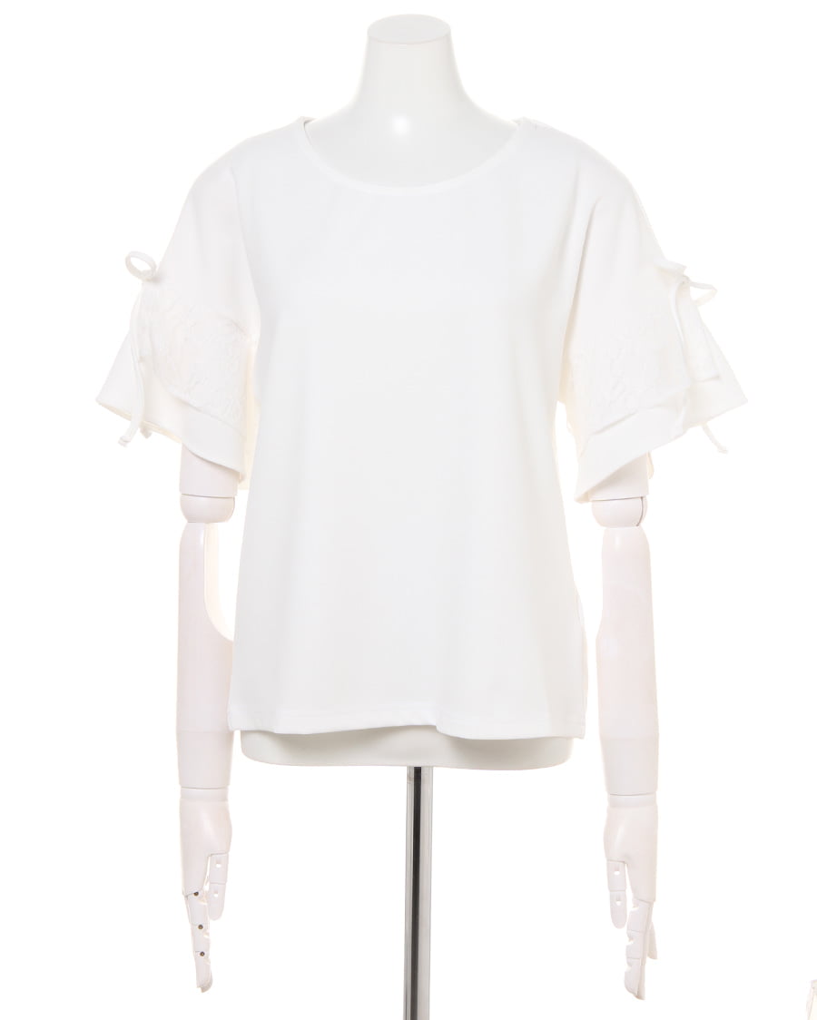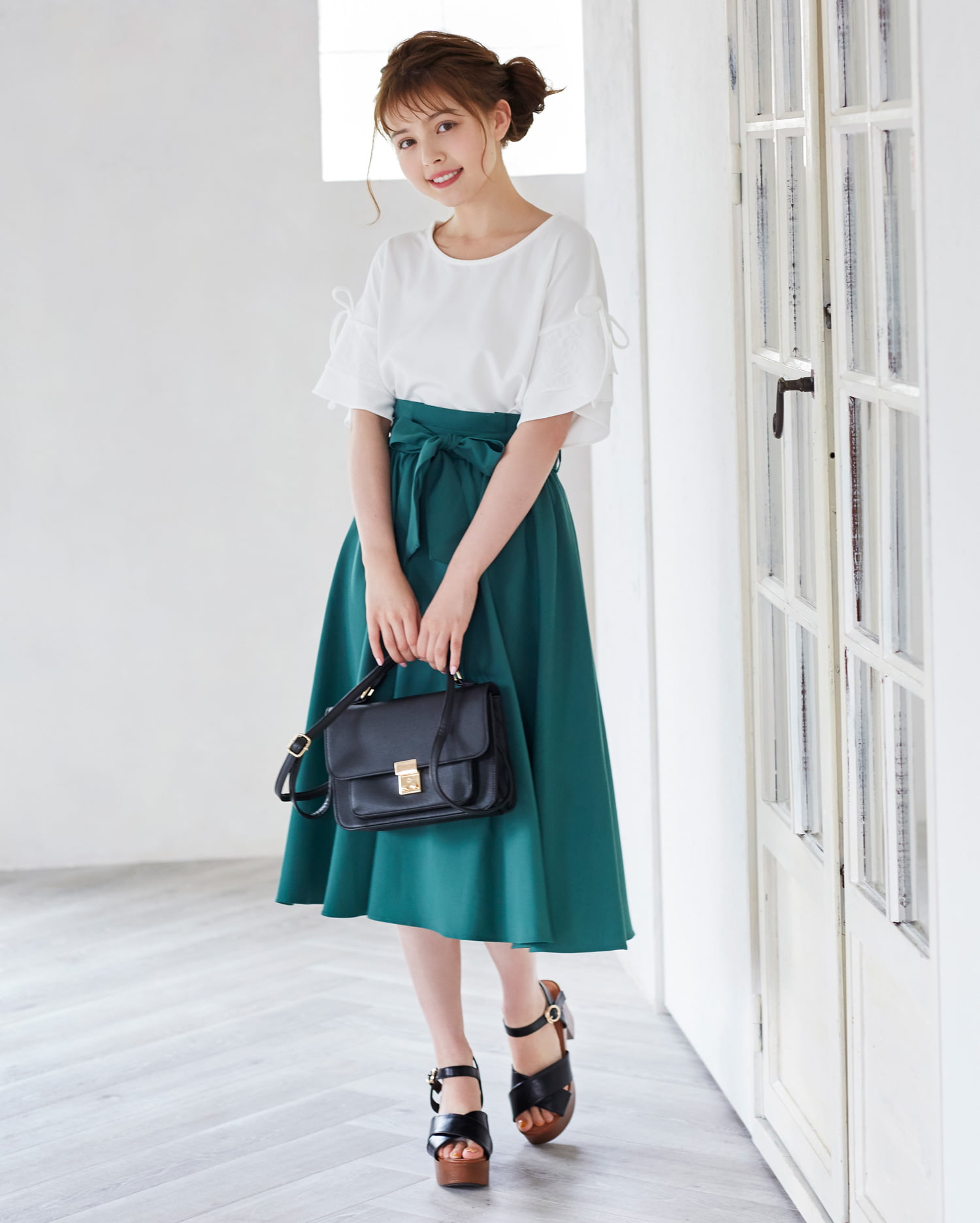 レース&リボン・2枚袖/トップスとサッシュベルト付/ミディスカートのSET☆