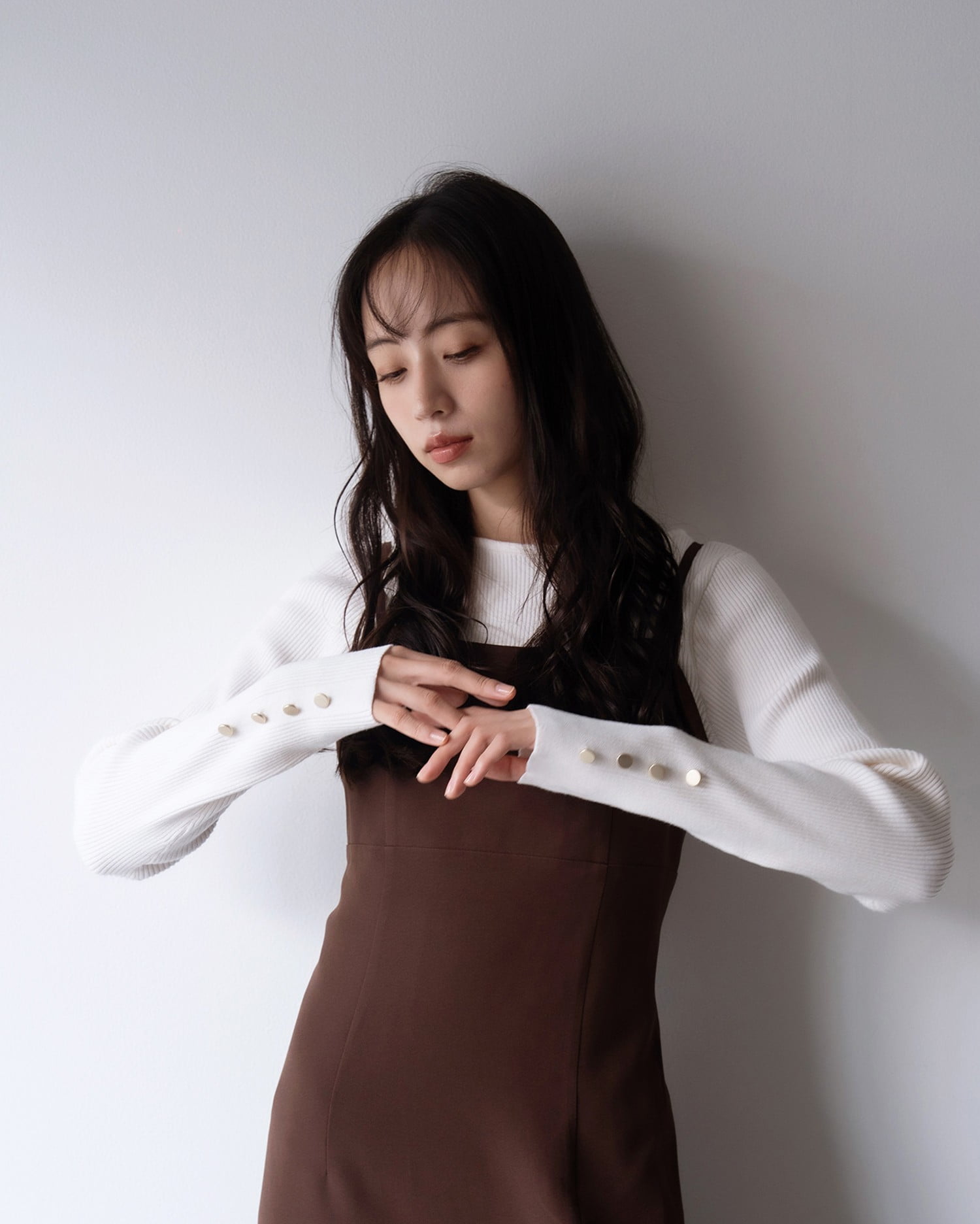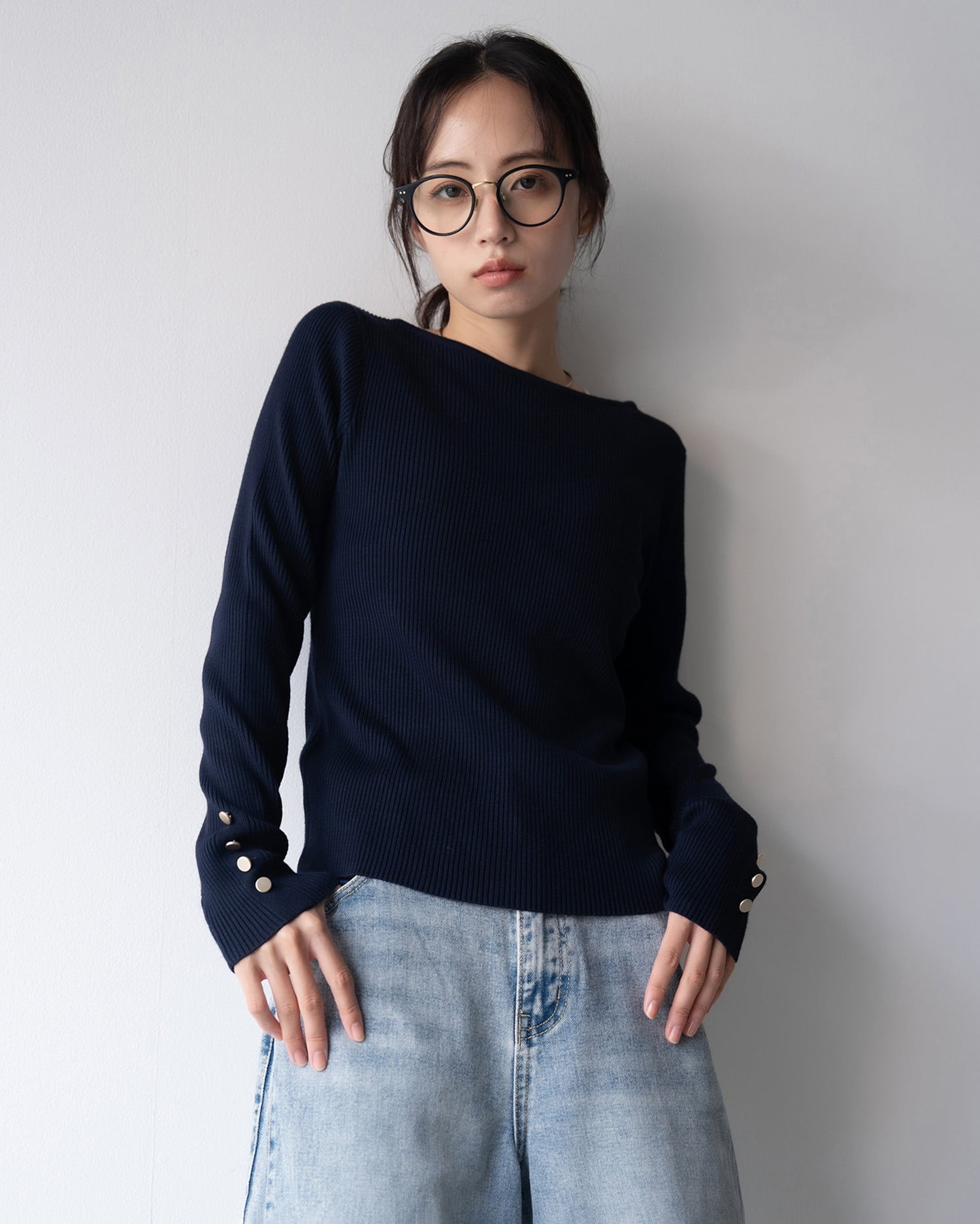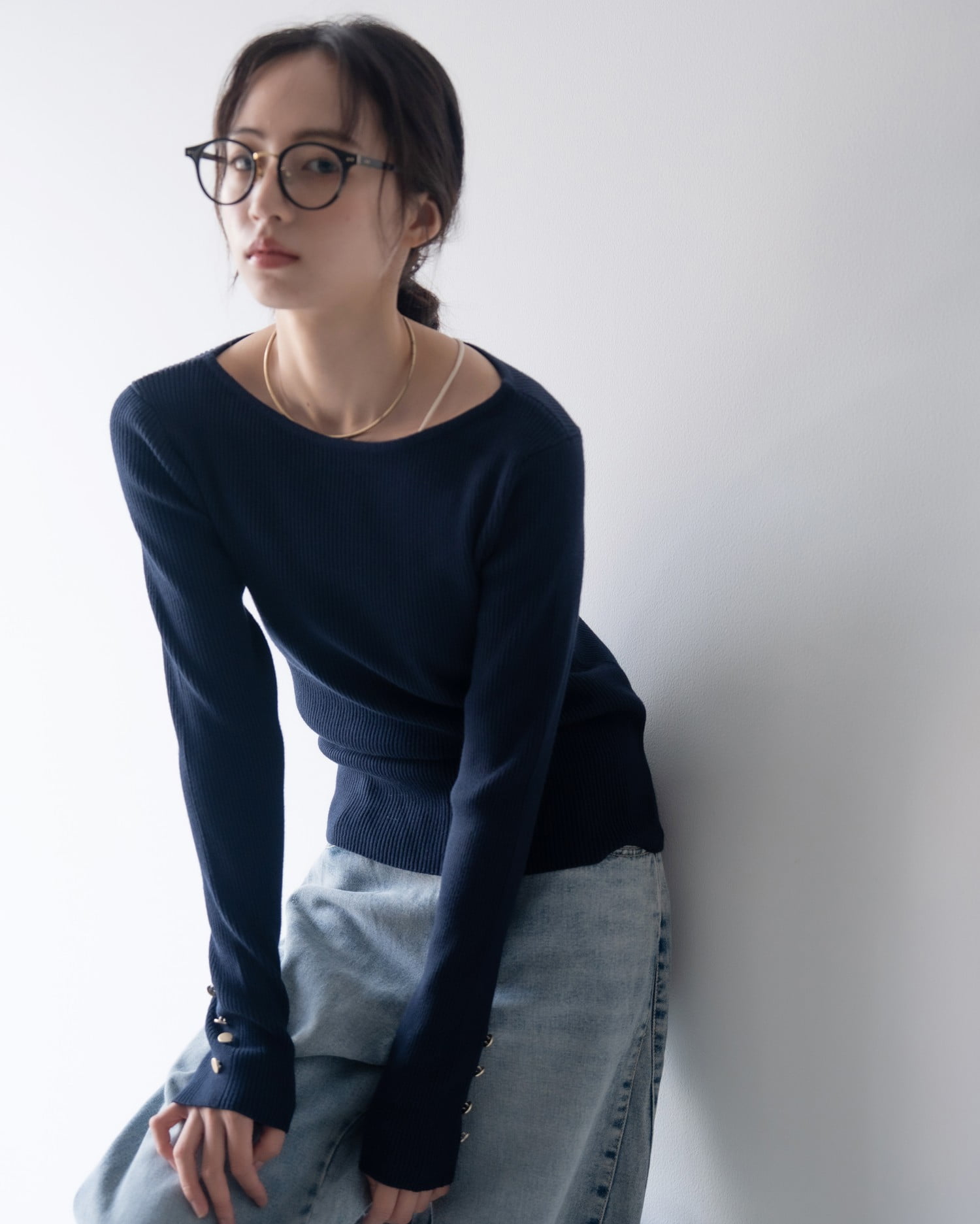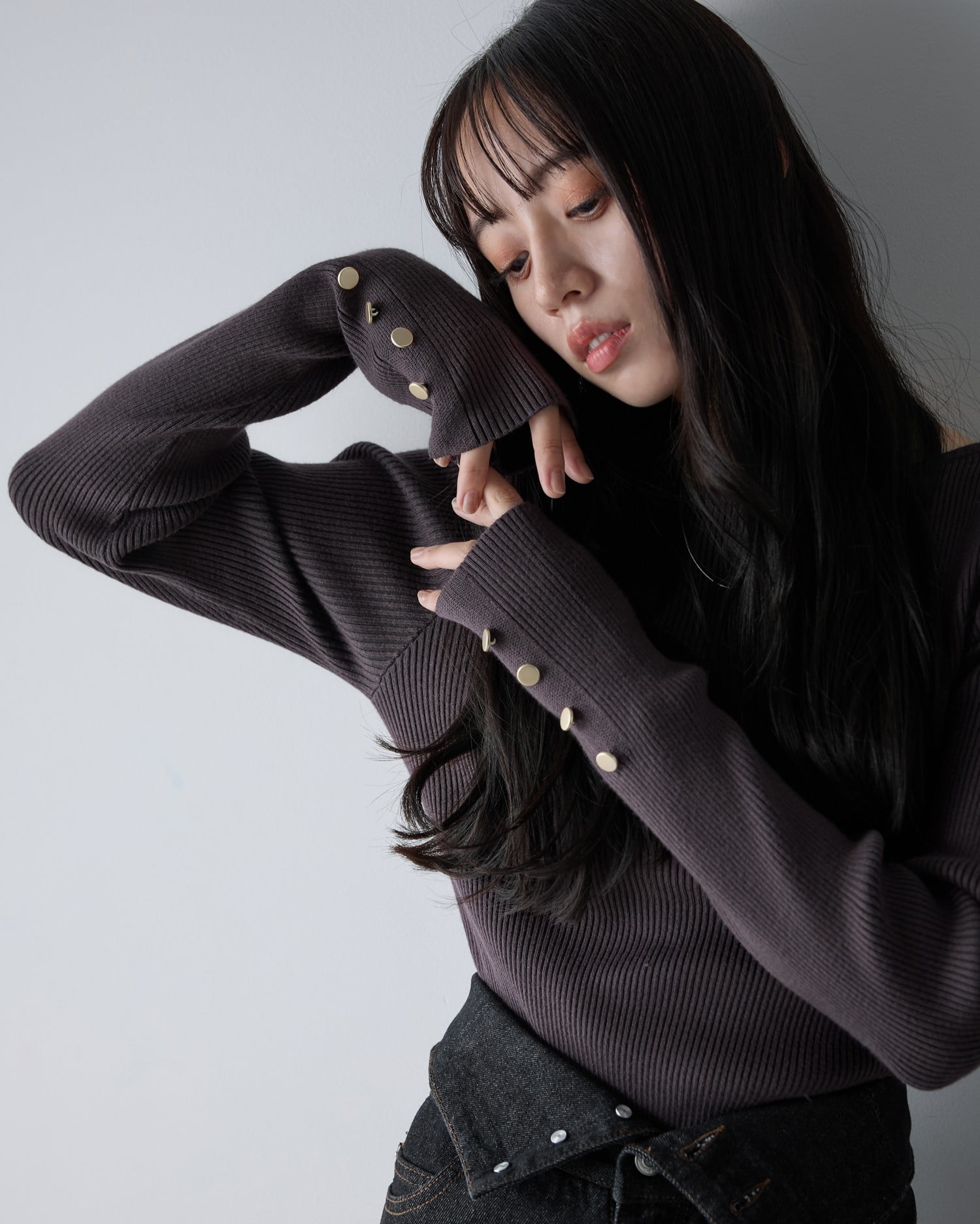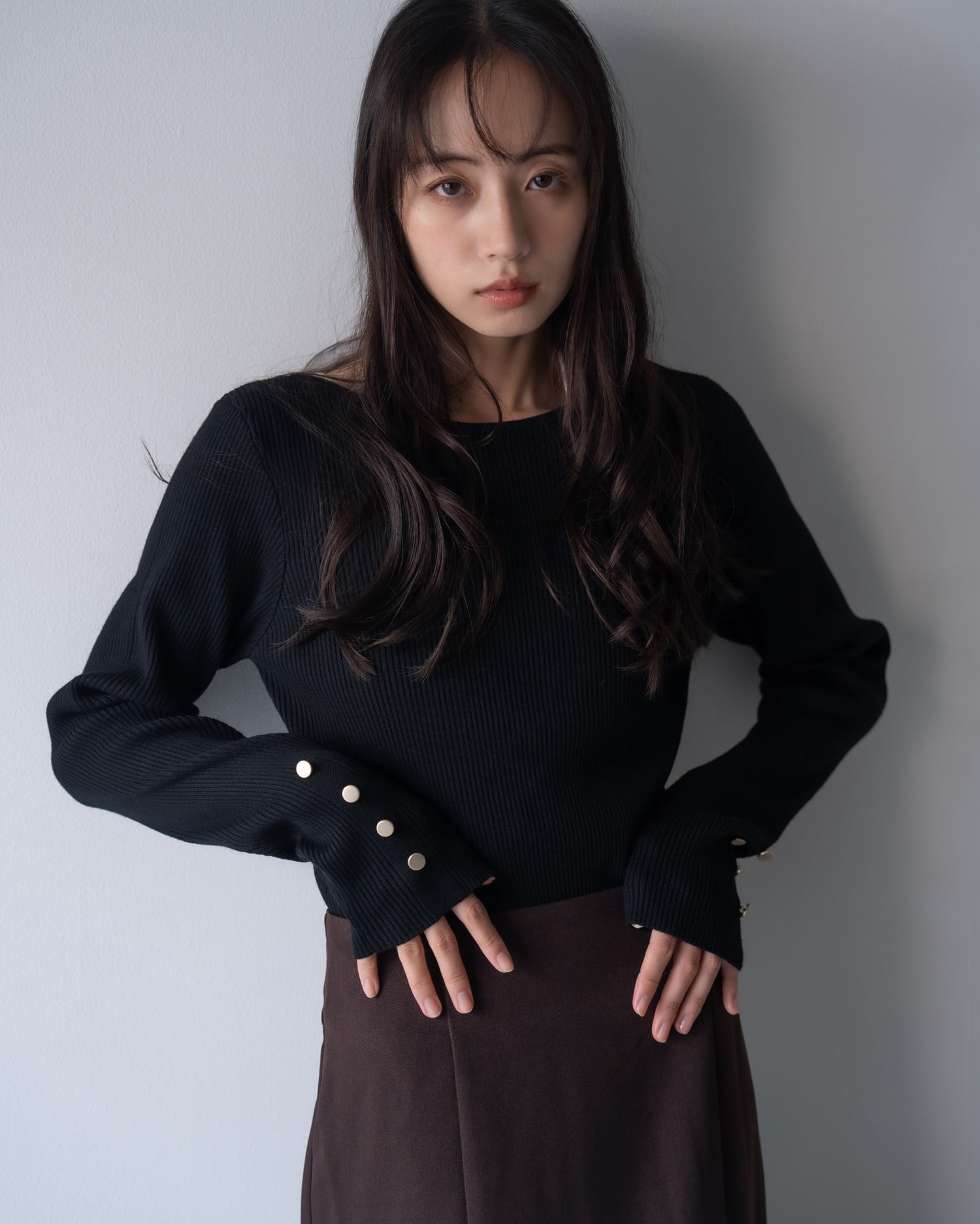 袖口にあしらったゴールドのボタンがリュクスなアクセントに。