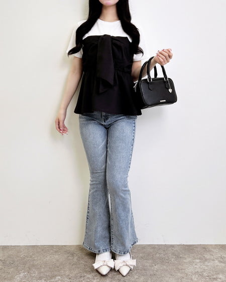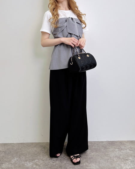 • INGNI(イング) リボンドッキングトップス オフホワイト/クロ