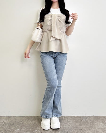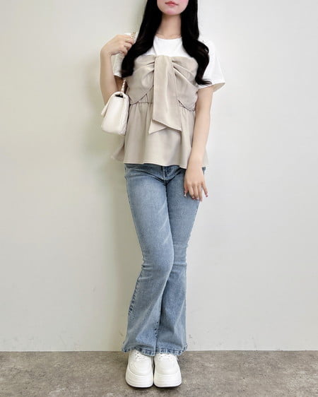 • INGNI(イング) リボンドッキングトップス オフホワイト/ベージュ