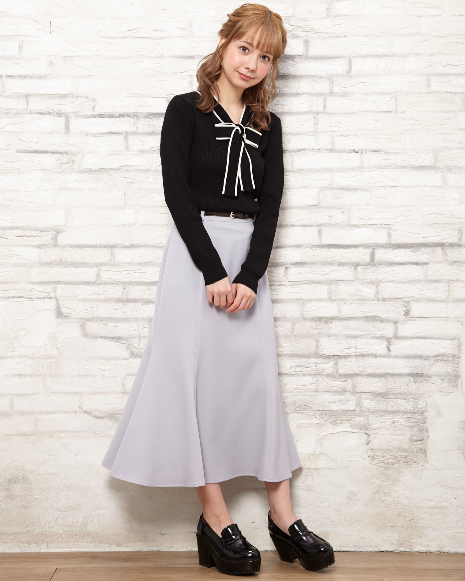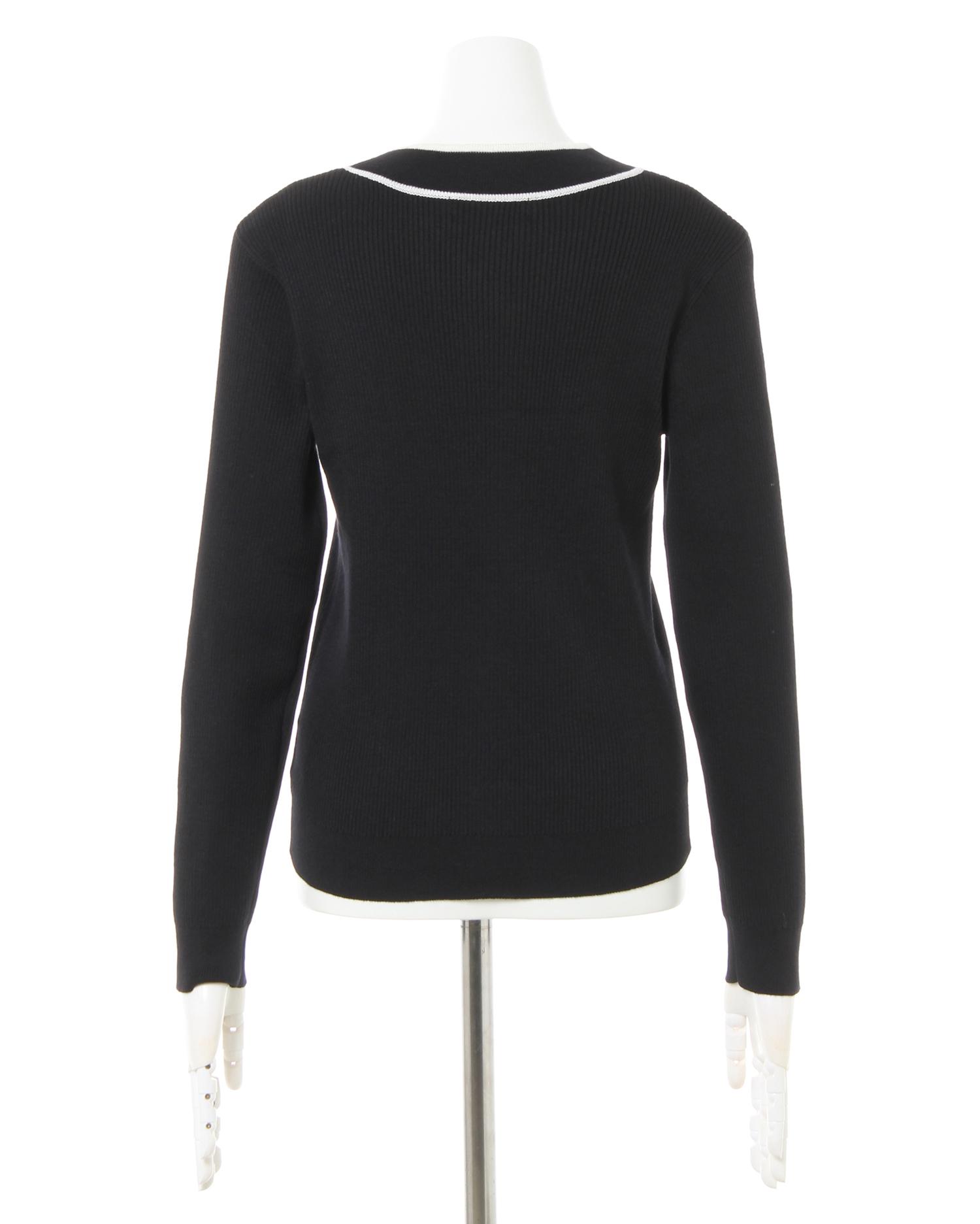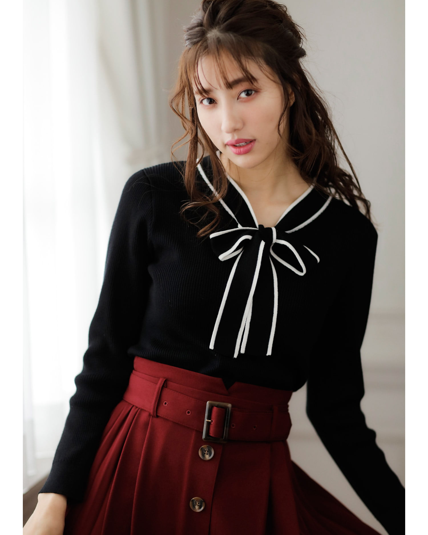 ボウタイデザインが魅力なしっとりソフトな肌触りで着心地も快適なニット。ボディラインに程よくフィットしてくれる細リブが上品な印象をプラスします。上半身をコンパクトにすっきり見せてくれるので華奢見せ効果も絶大。ボウタイできちんと感もあるのでオフィススタイルにもオススメです。コーディネイトにメリハリをつけるライン使いにも注目。