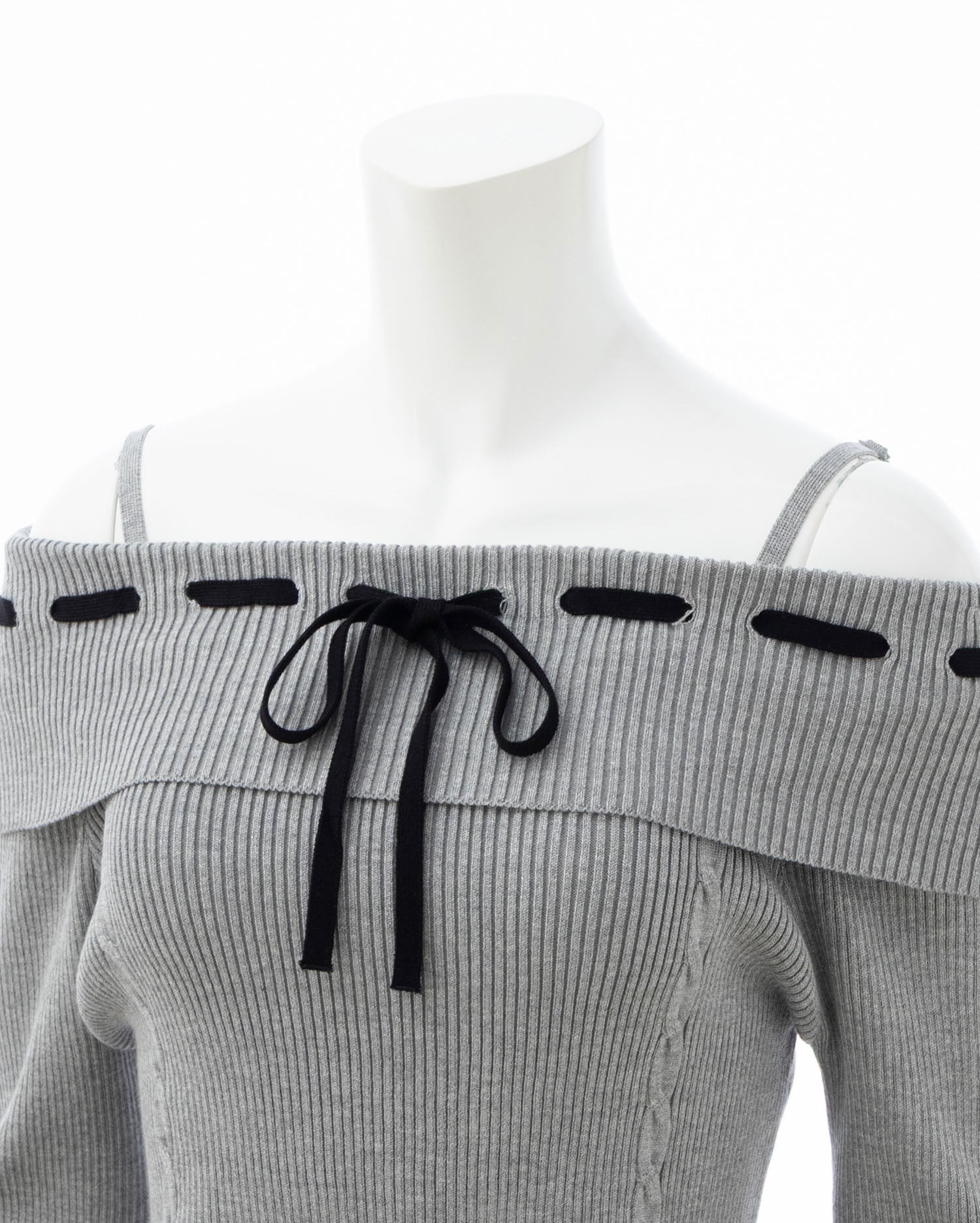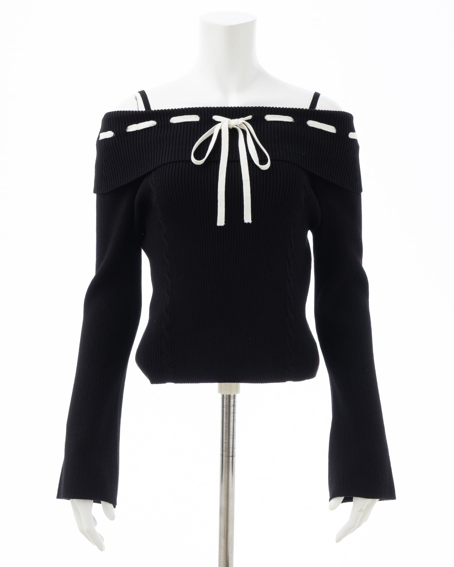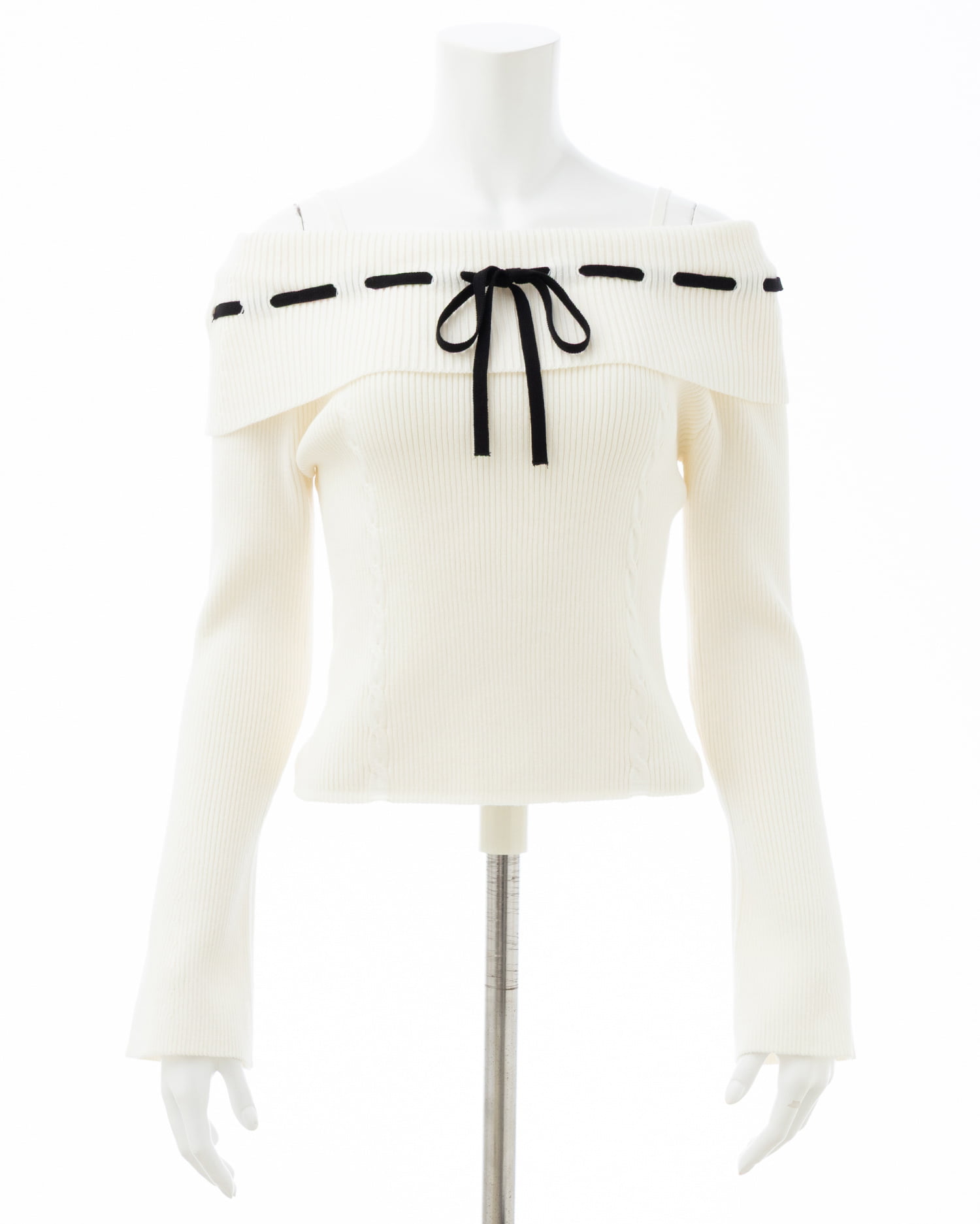 【フロントのリボンデザインがかわいい♡オフショルニット】
