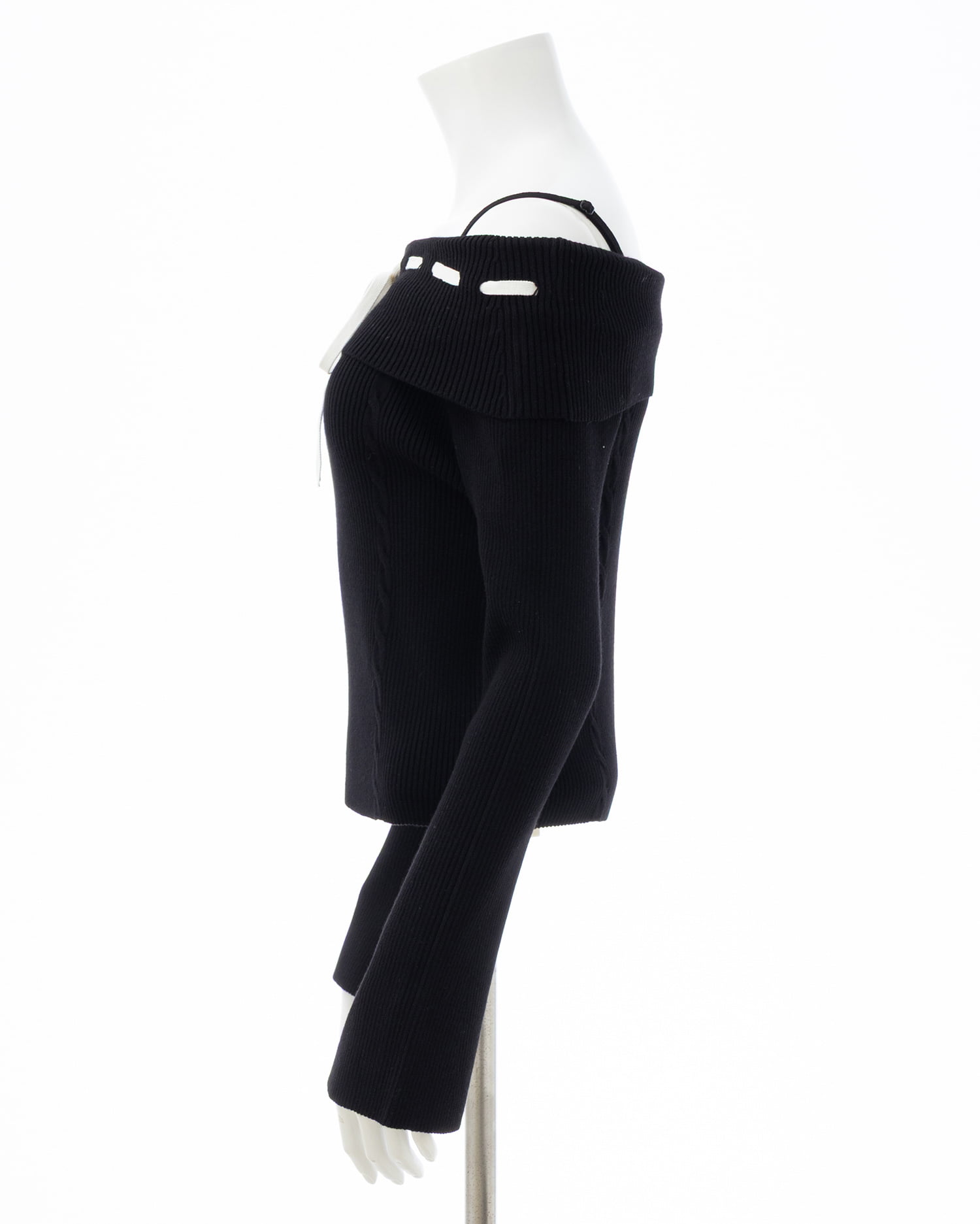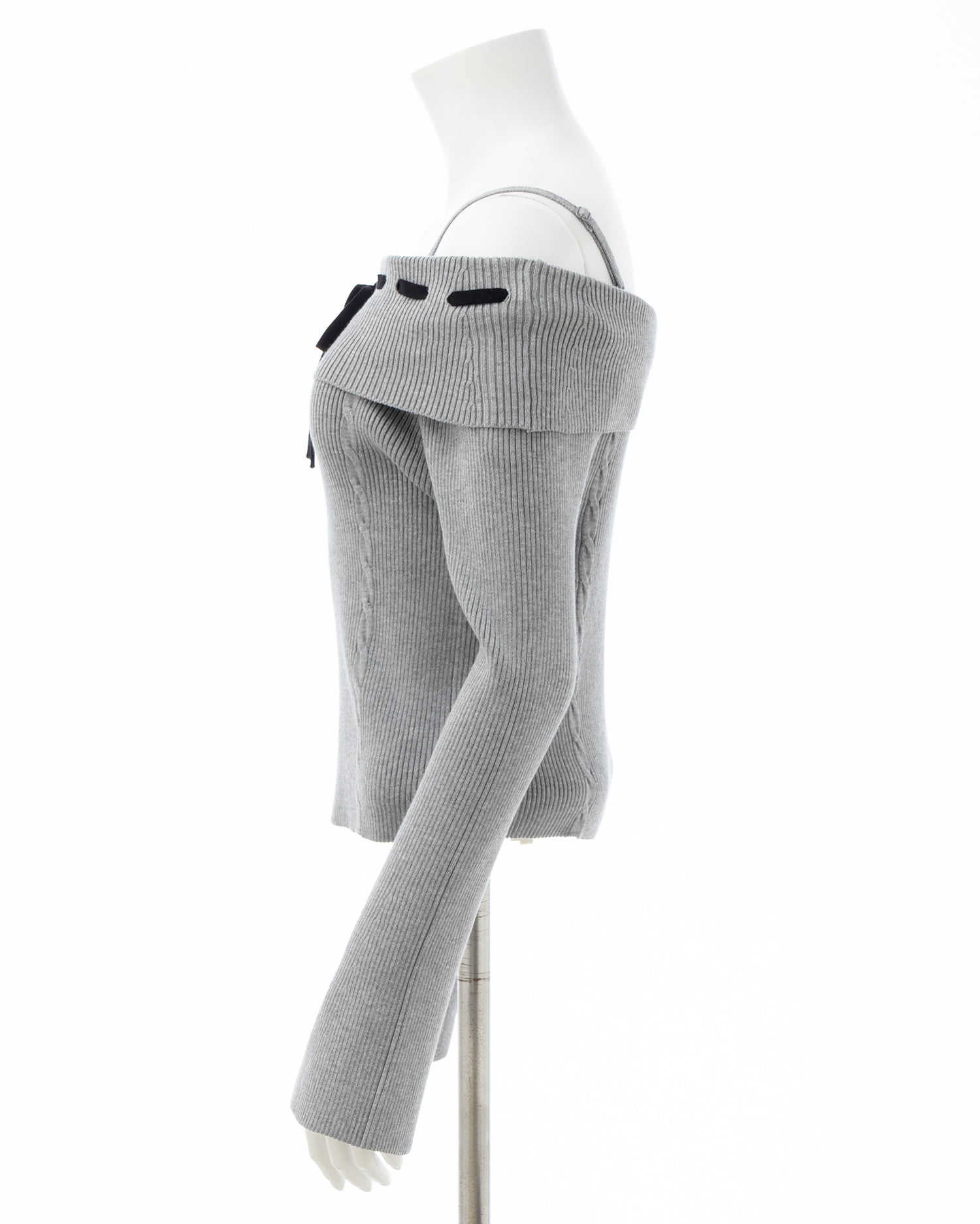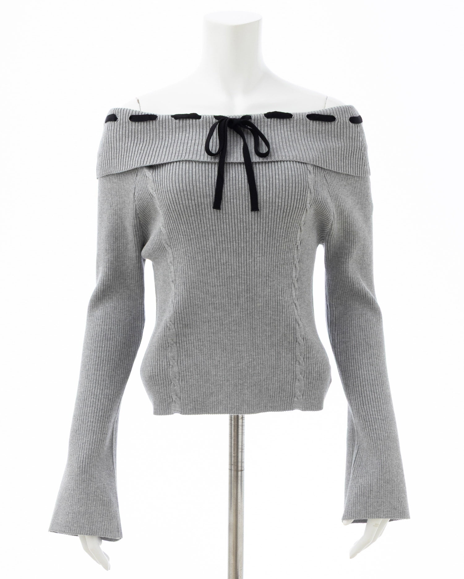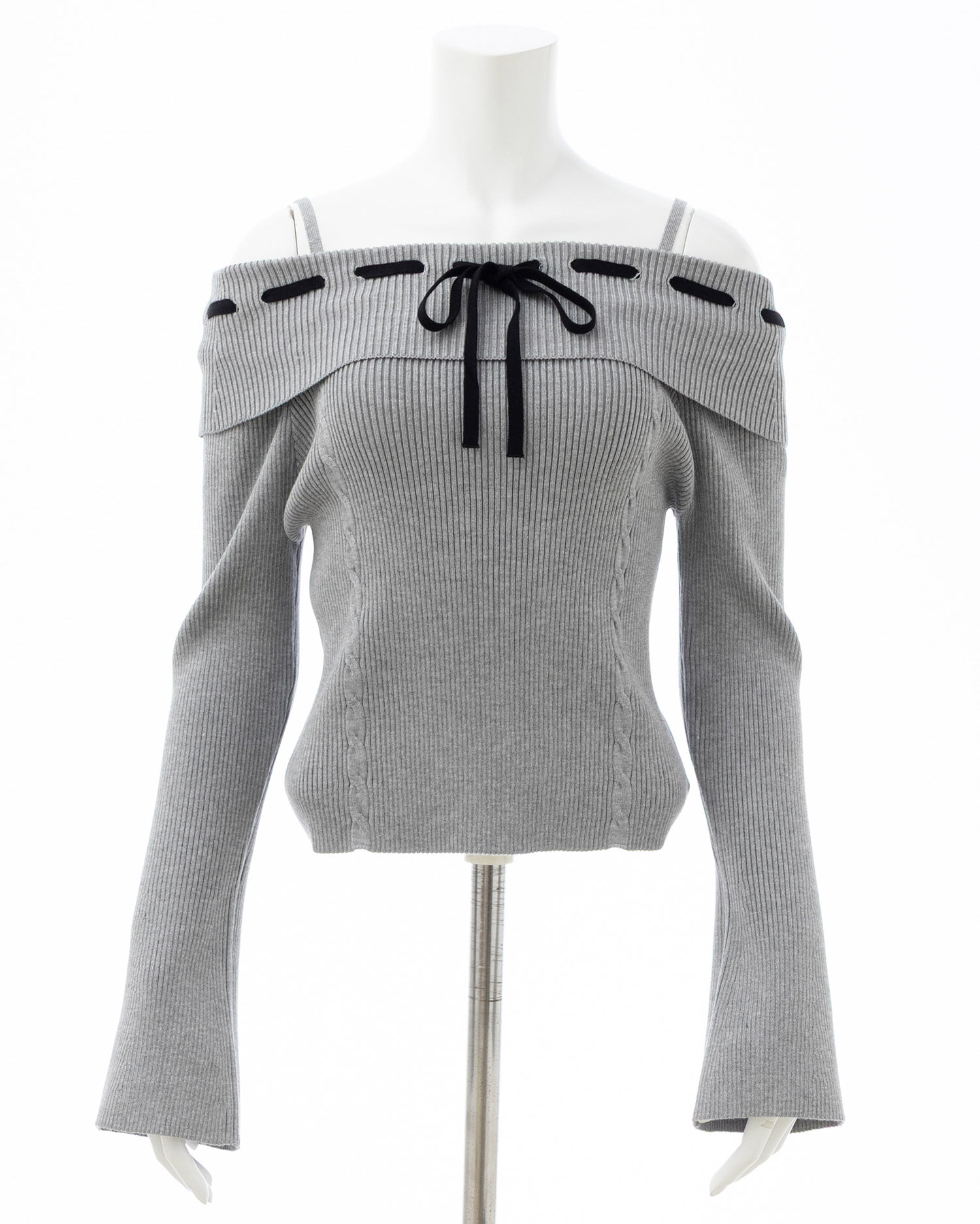 【フロントのリボンデザインがかわいい♡オフショルニット】
