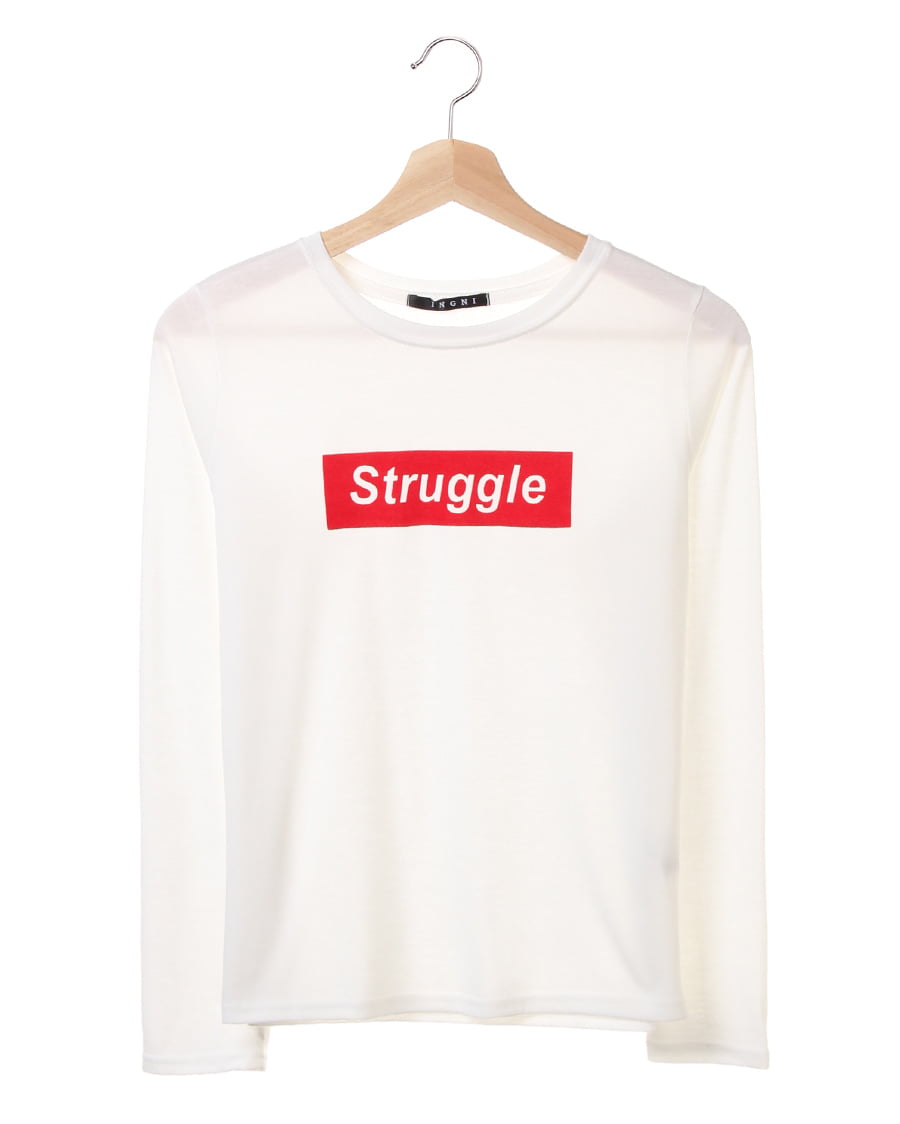 • INGNI(イング) BOXロゴ長袖/Tシャツ オフホワイト/アカ