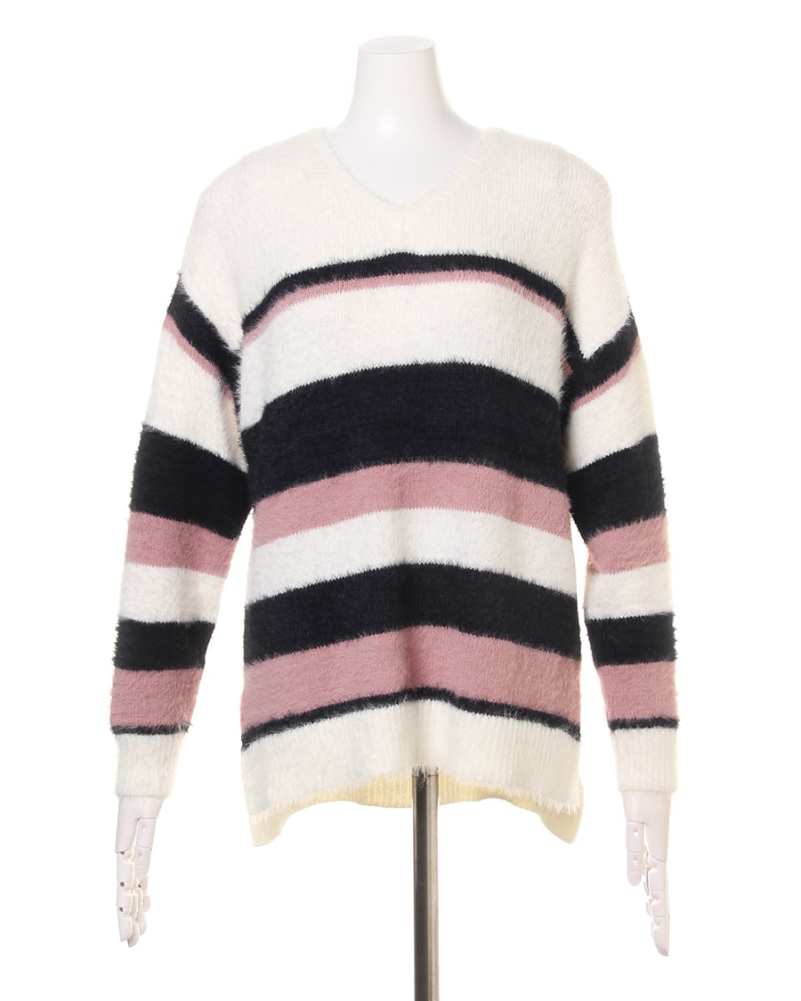 【1174-942019 フェザーマルチボーダーニットプルオーバー】