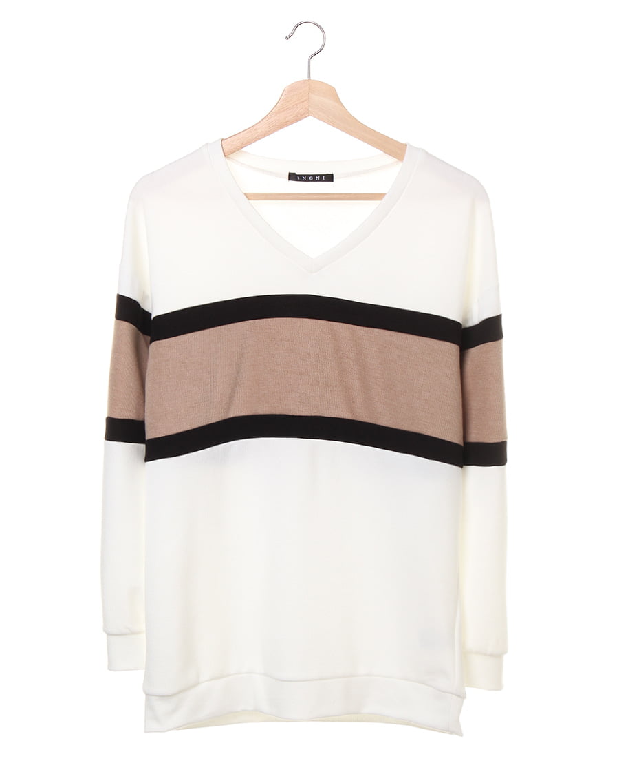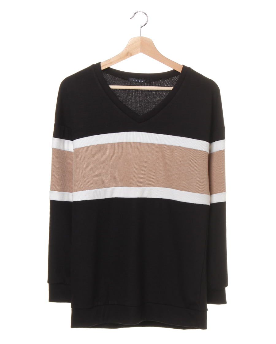 深めに開いたVネックのチュニックはデコルテラインをきれいにメイク。太めのバイカラーがシンプルなデザインにアクセントを与えます。サカリバ素材のダブルフェイス生地で、すっきりとした見た目と厚手ながらごわつきを感じさせない快適な着心地を実現。ドロップショルダーでしなやかなシルエットを演出、長めの丈感が気になる腰周りなどのパーツを自然とカバーしてくれる効果も期待できる優秀アイテムです◎。
