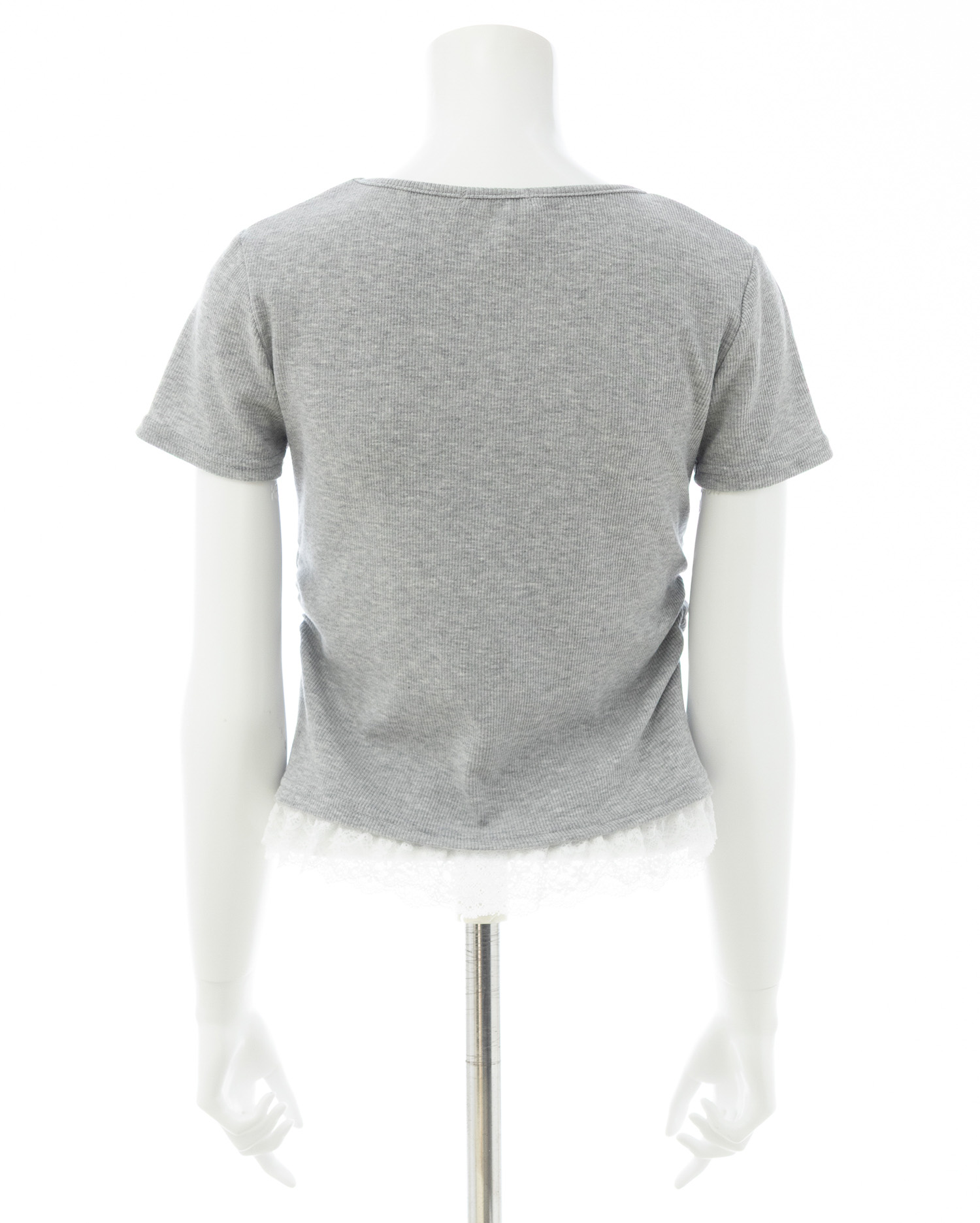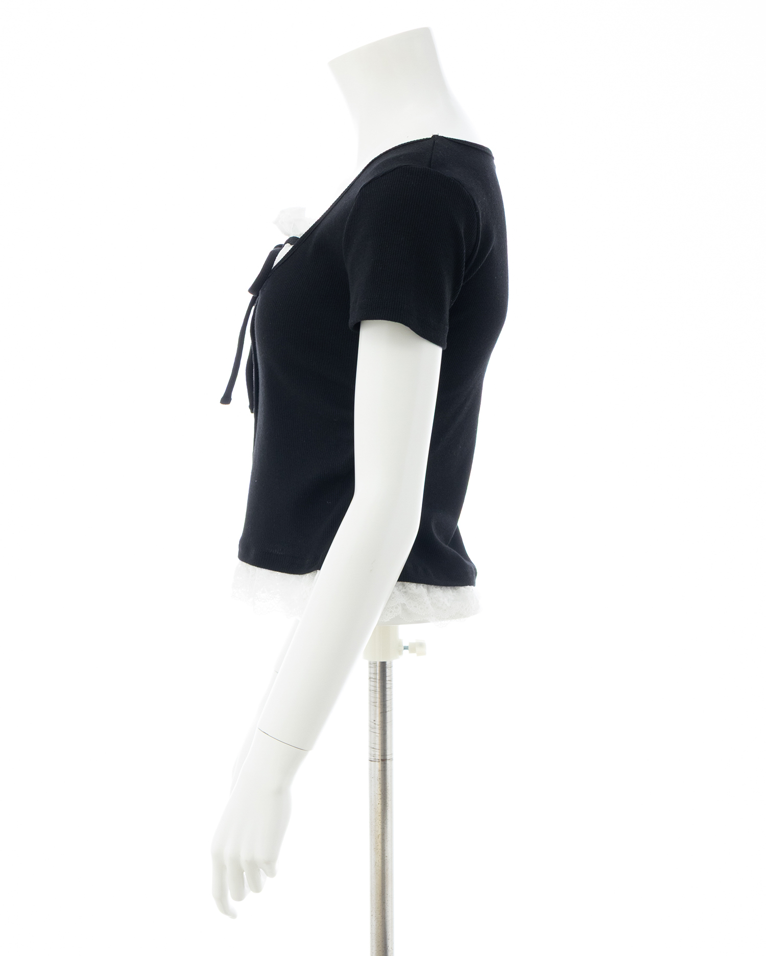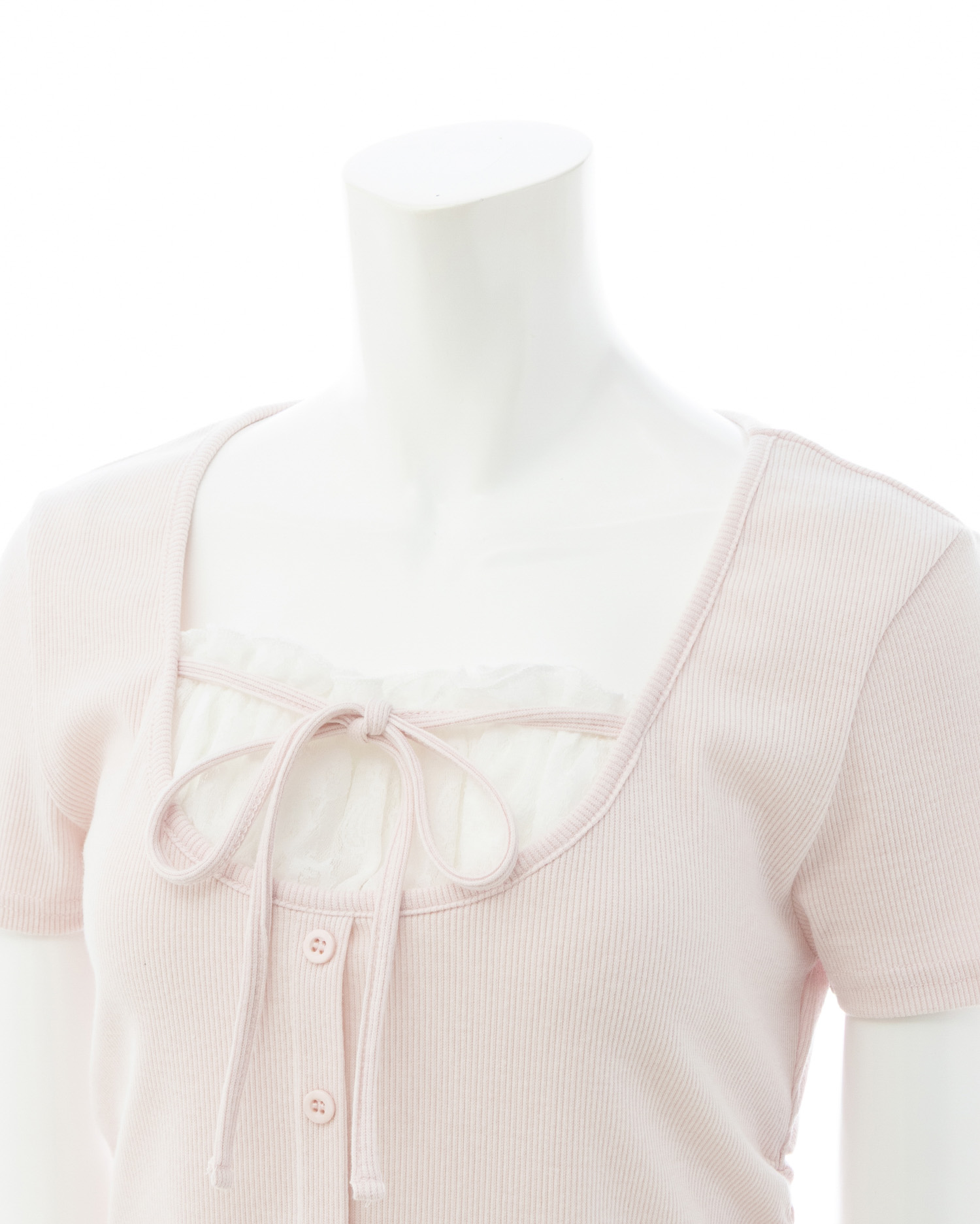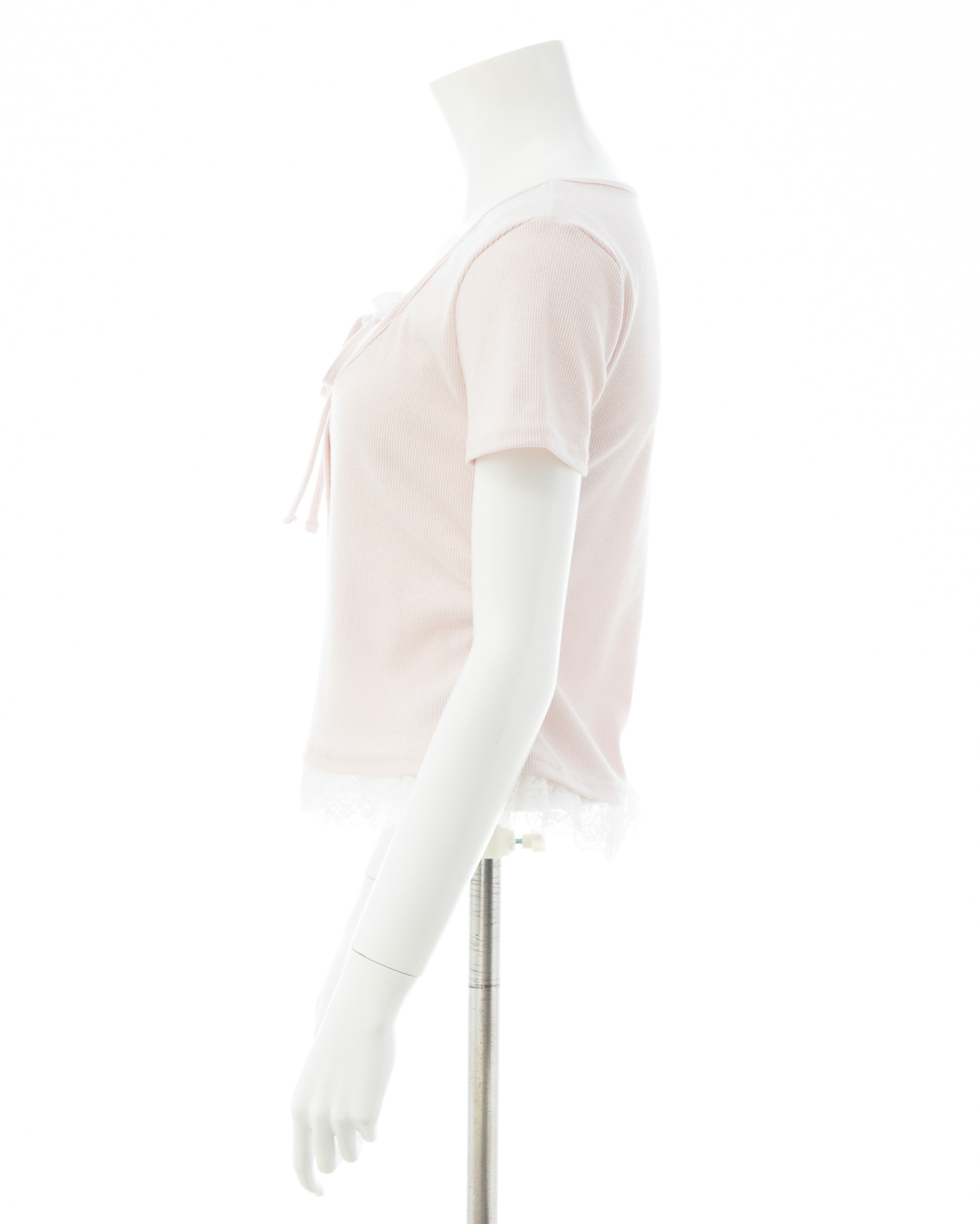 【1261-100120 レースレイヤード風リボン付き長袖リブトップス】