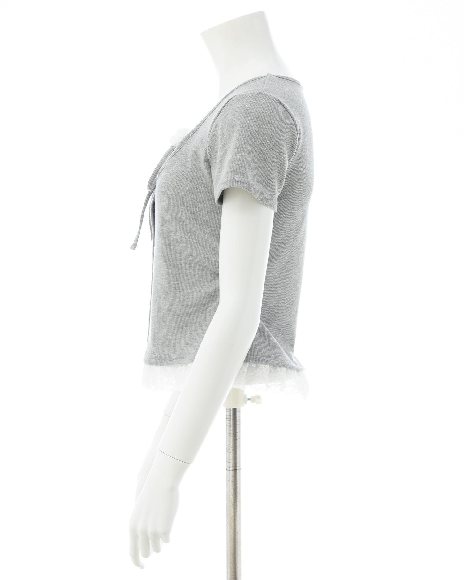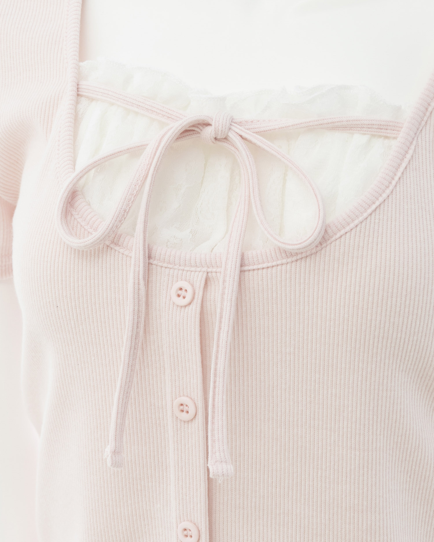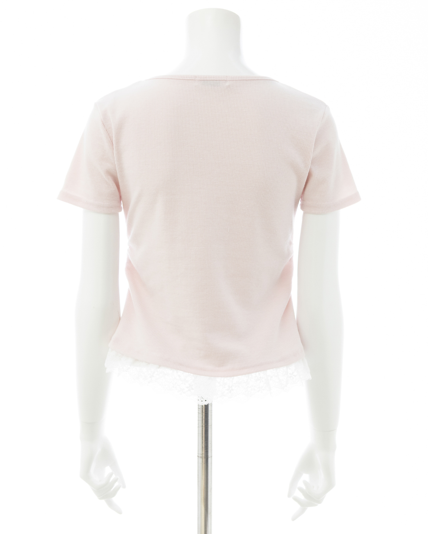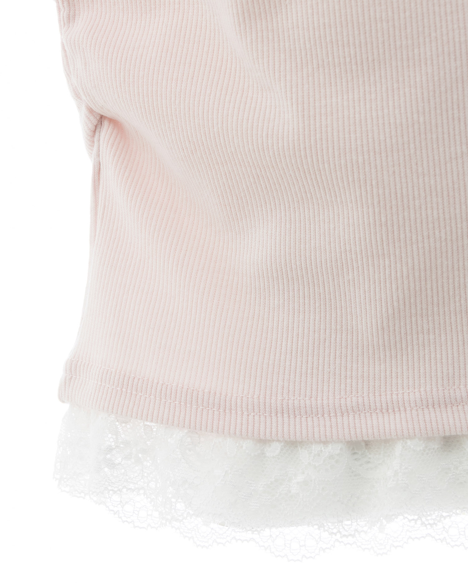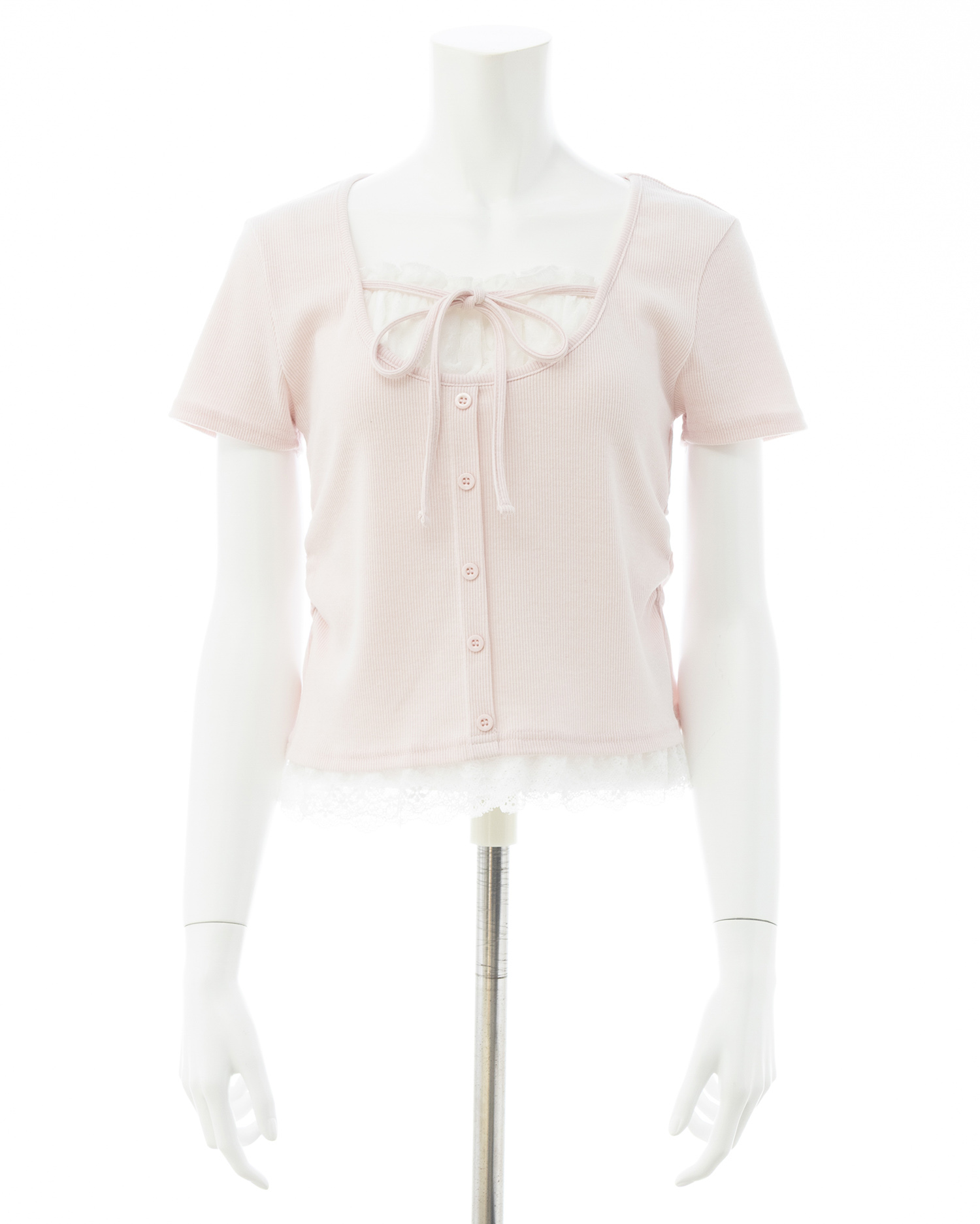 【1261-100120 レースレイヤード風リボン付き長袖リブトップス】