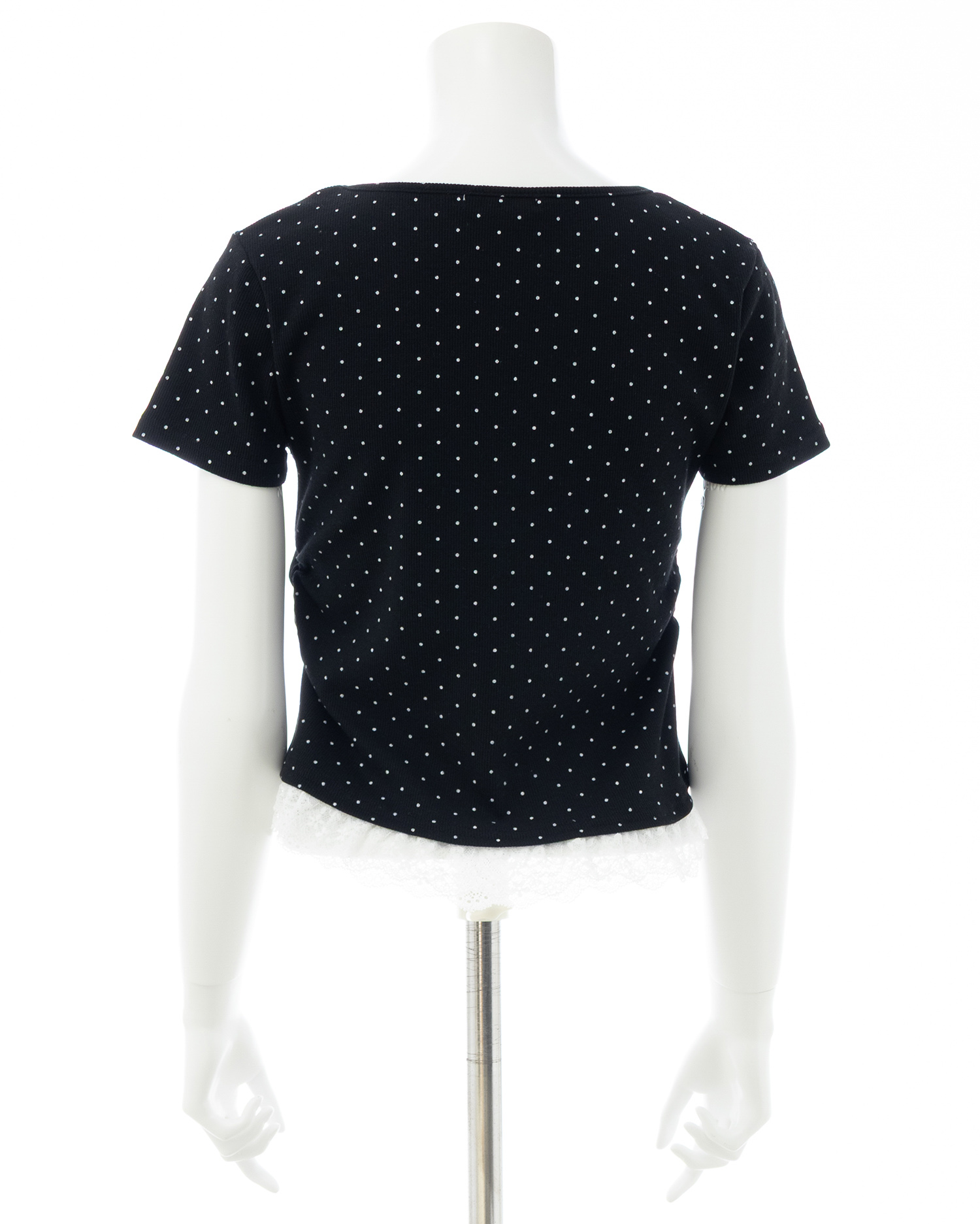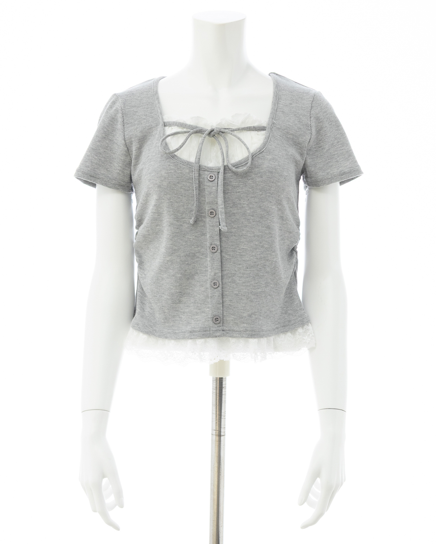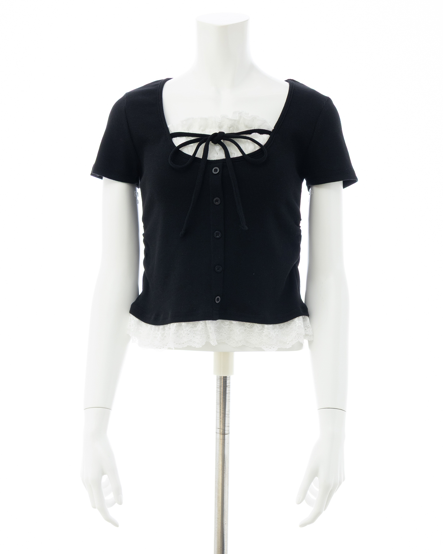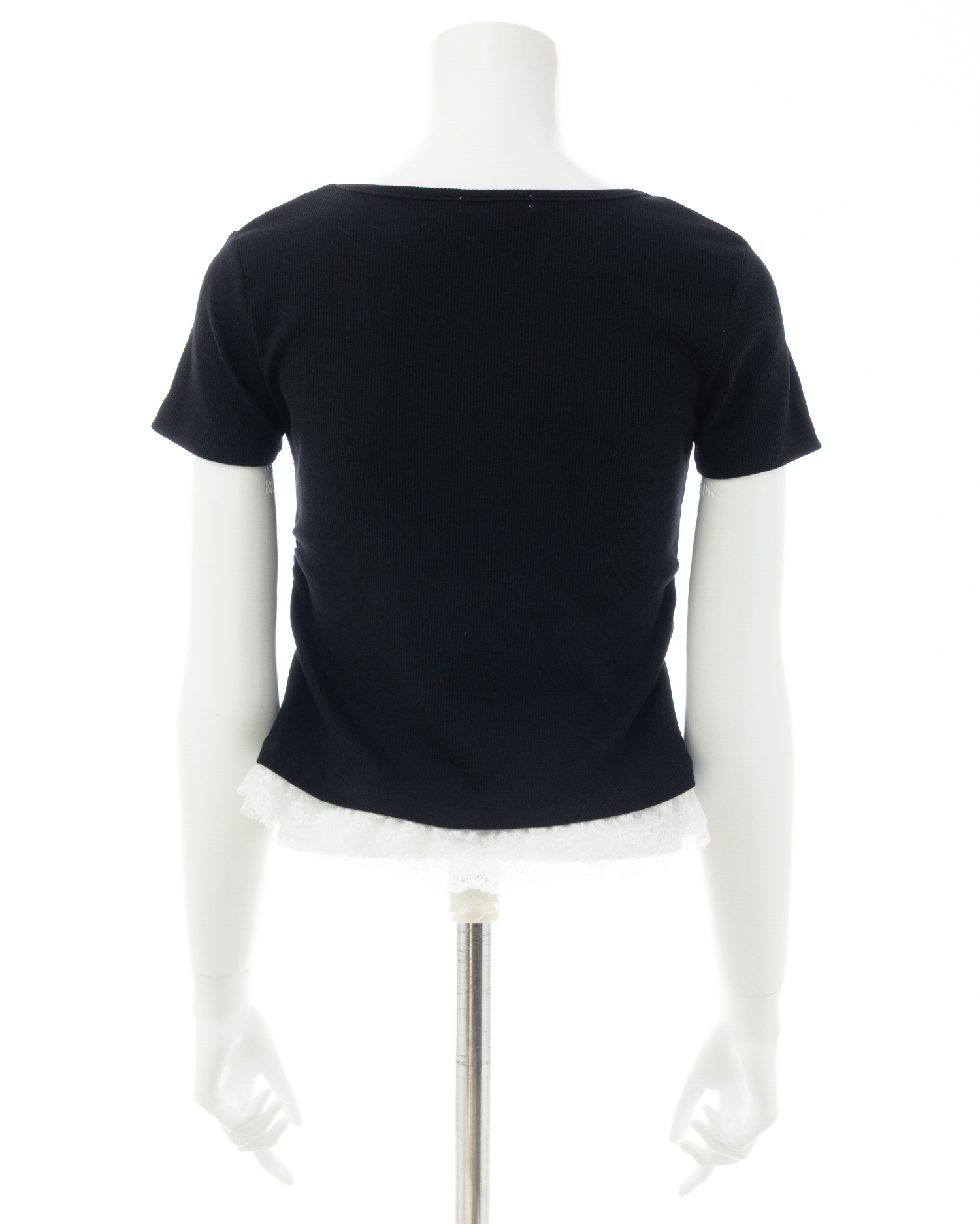 【1261-100120 レースレイヤード風リボン付き長袖リブトップス】