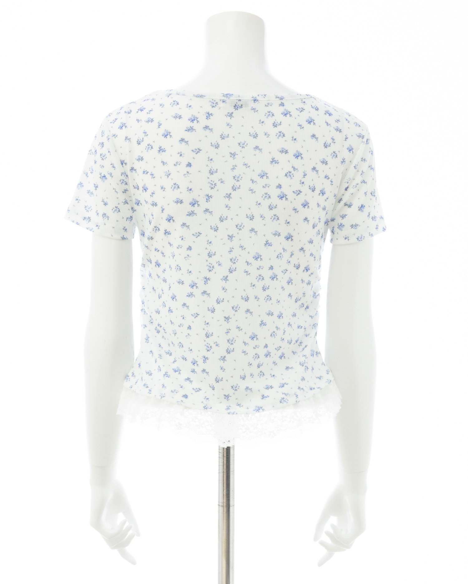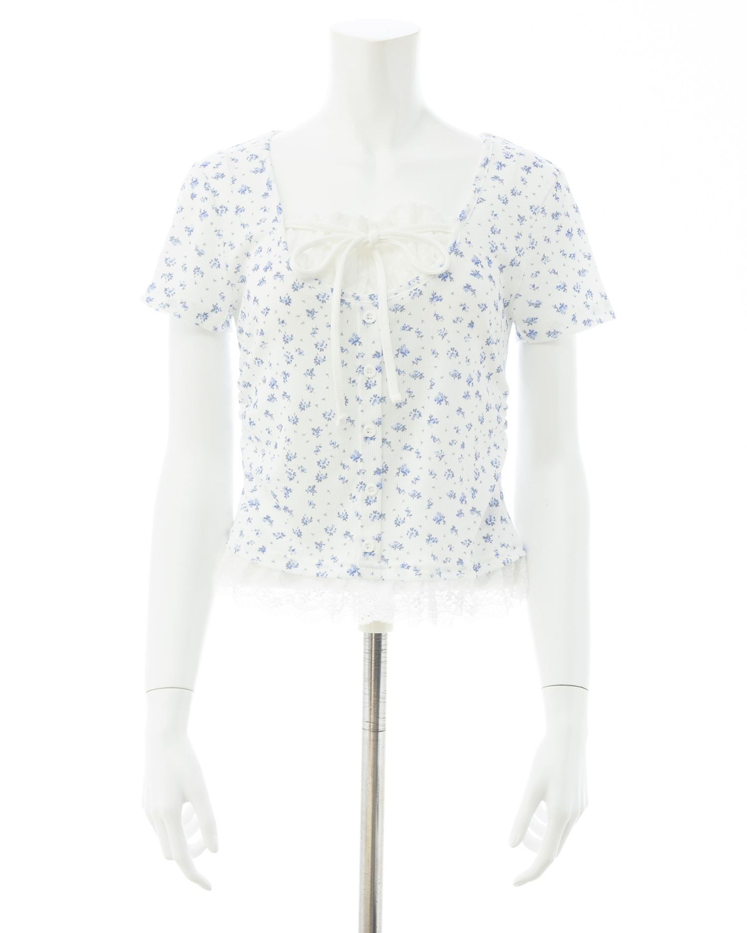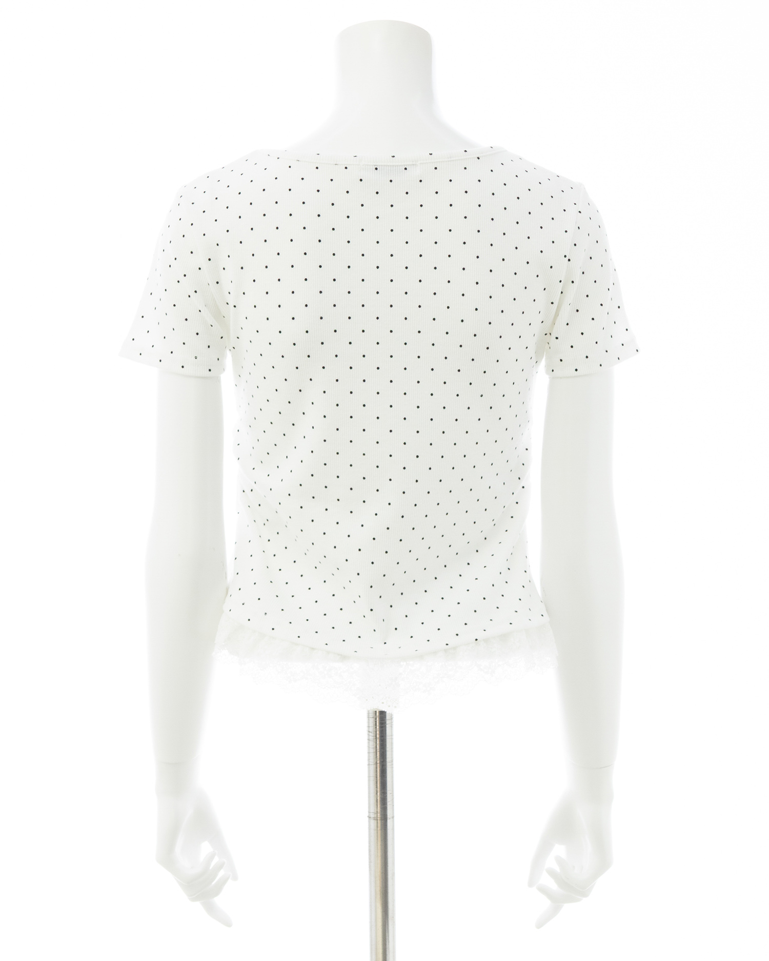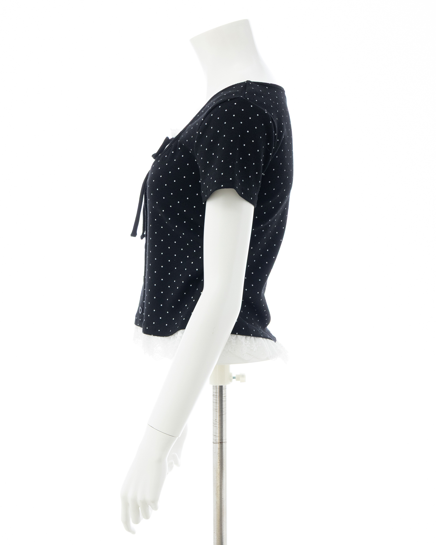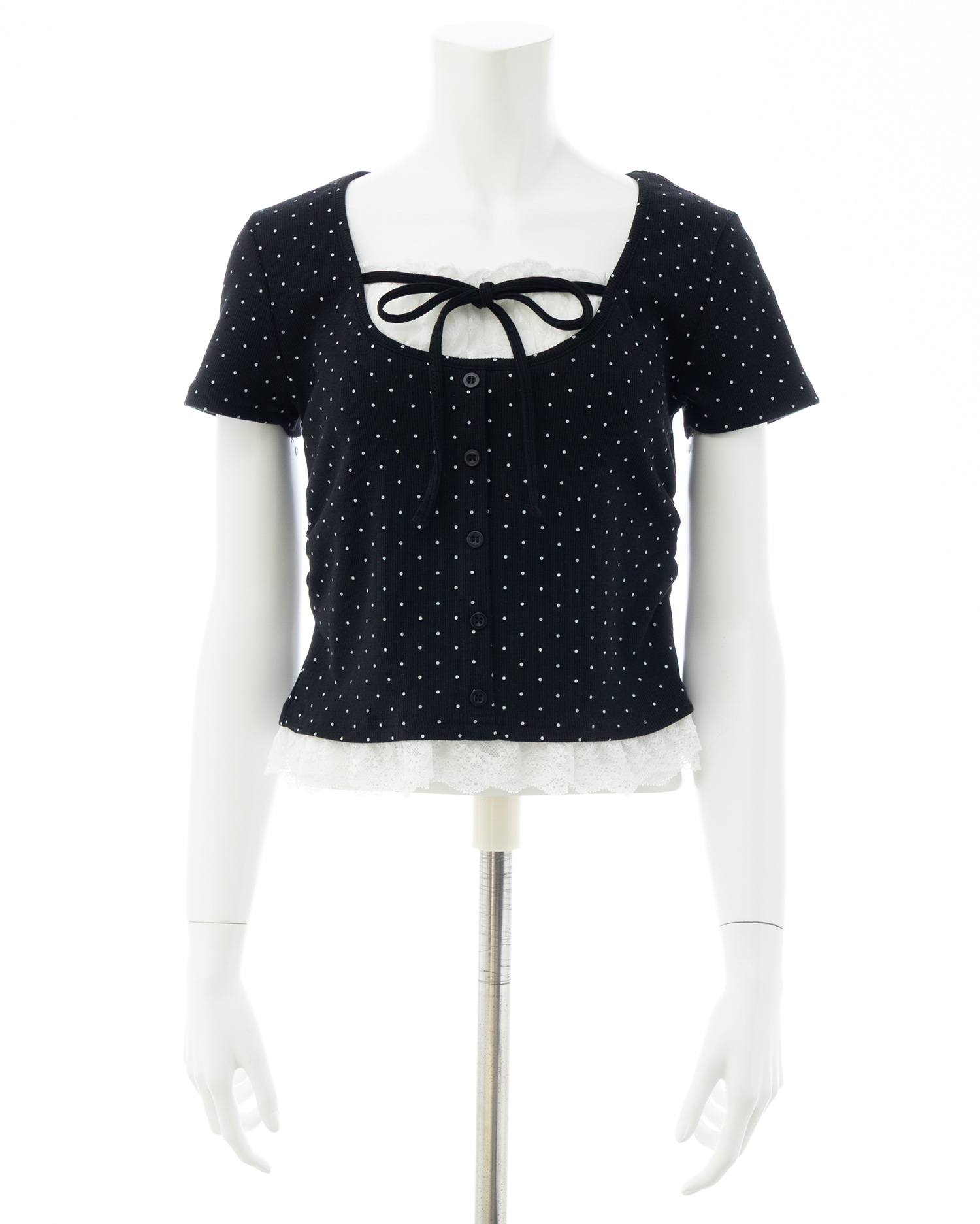 【1261-100120 レースレイヤード風リボン付き長袖リブトップス】