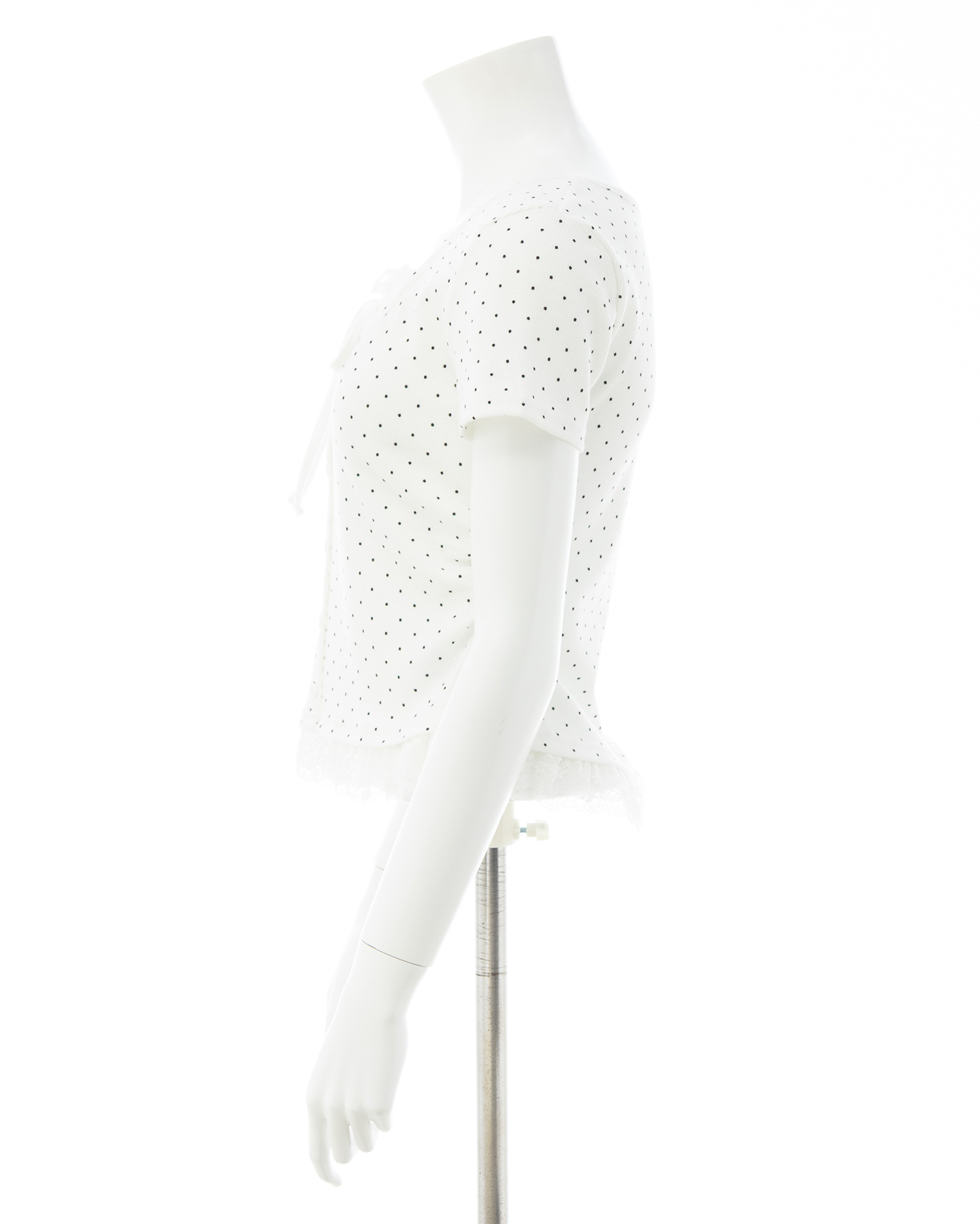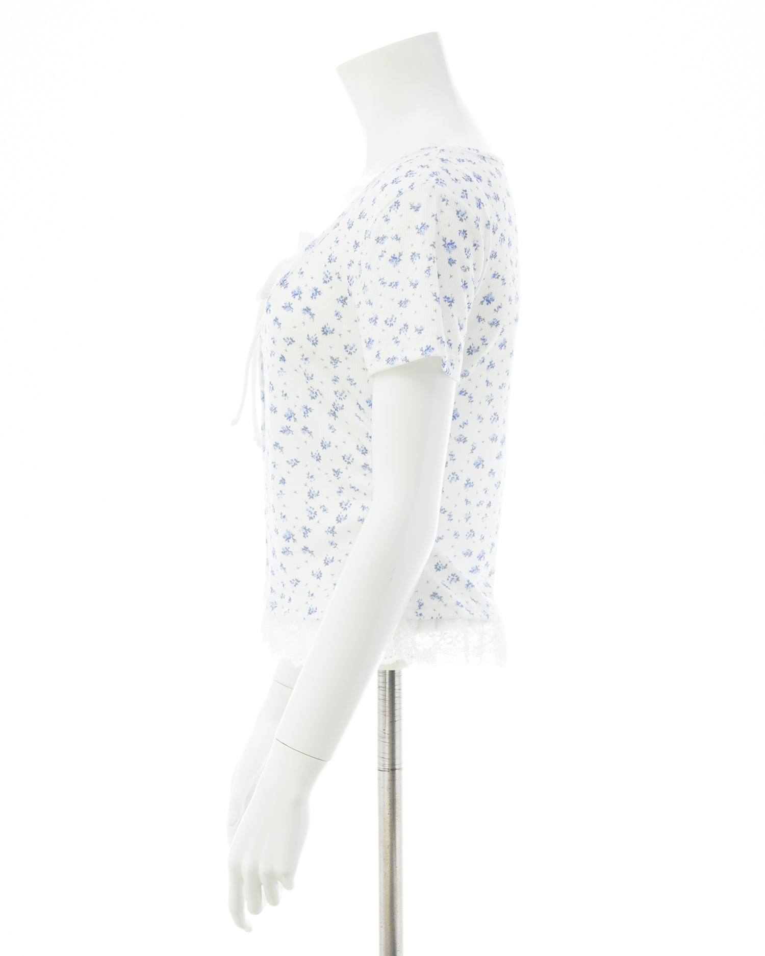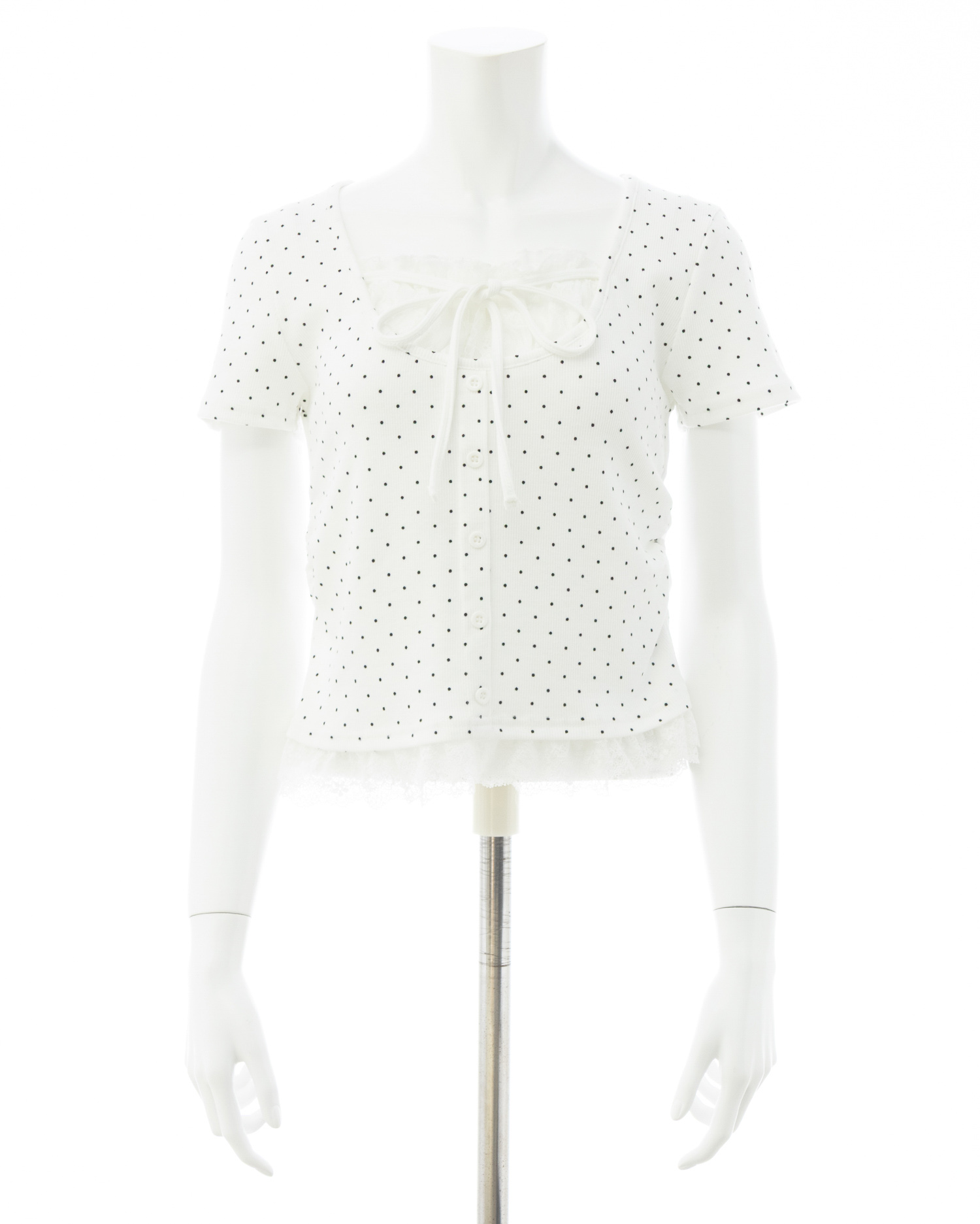 胸元と裾には繊細なレースをあしらってフェミニンなアクセントに。