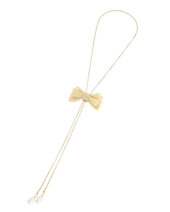 華奢なチェーンで女性らしさを引き出したループタイ♪リアルリボンのモチーフでフェミニンムード溢れるアイテムです。モチーフの位置は調節可能なので、お好みでアレンジしてみて♪いつものスタイリングが一点投入でこなれた印象に。首周りのさりげないアクセントに大活躍間違いナシのアイテムです!