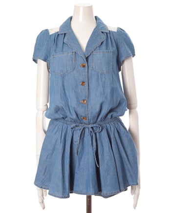 デニムコンビネゾンに衿をつけてシャツワンピのように仕上がったニューフェイスアイテム!衿をスカラップ型にしているところがポイントで、キュートにトップへ視線を集めます。ヨーク部分にレースをドッキングしてフェミニンに肌魅せ!エアリーさもプラスします。ラクチンなコンビネゾン型ですが、スカートのように生地をレイヤードをしているところがポイント!