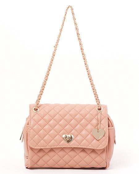 グラマラス派ならこのバッグに決まり!ポイントでハートをモチーフにしたキルティングバッグです。マチなしのころんとしたフォルムが、ぬけ感を演出してくれる他にはないポイント!ジップ口以外にポケットをつくり、収納力にも自信アリ。チェーンは細めにリニューアル!肩かけにも、ショルダーにもなる使いまわせるアイテムです。