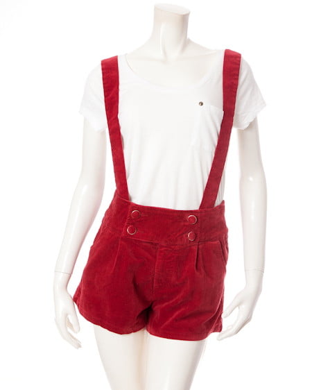 ハイウエスト×Wボタンでヒッピー風スタイルの完成!サスペンダー付きのチドリ柄ショートパンツです。ブラウスなどをインして主役使いしたいアイテム。ほんのり起毛であたたかですが、ひらっと軽めの素材なのでもちろんニット合わせなどにもぴったり。サスペンダーも同布のチドリ柄なので存在感はバツグンですね!ボタンホールによって様々に長さ調節が可能です。裏地付きです。