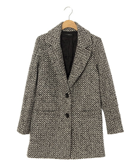さらっと羽織ってマニッシュでクールレディなコーデ完成!今季必須のチェスターコートです。縦長を強調する大きめ衿がポイント、すとんとしたシンプルなデザインでヒップまで隠れるロング丈です。パンツスタイルに合わせたいですね。1ボタンなので前をあけたスタイルも◎。内側に中綿をあしらいあったか仕上げ。裏地サテンはドット柄をほどこしました。ふんわり軽めのウール素材とツイードとの展開です。