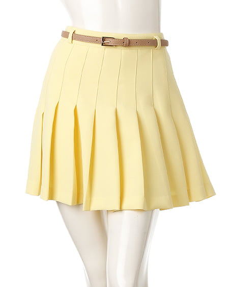 【8141-361187 ベルト付L46プリーツフレア/スカート】